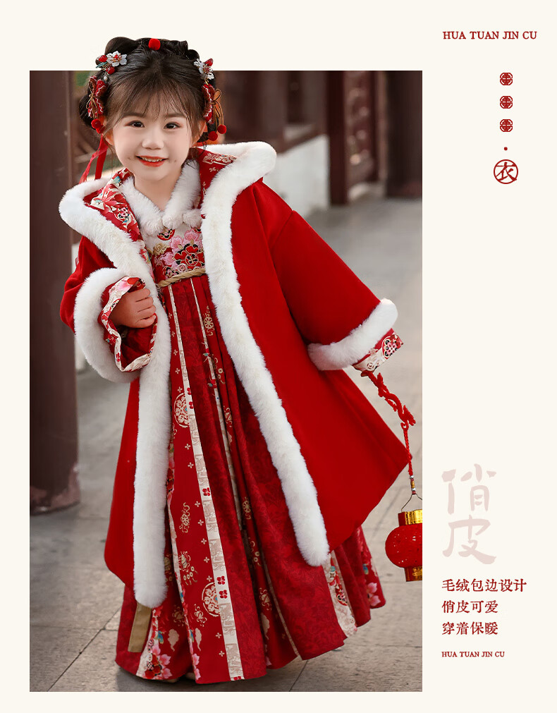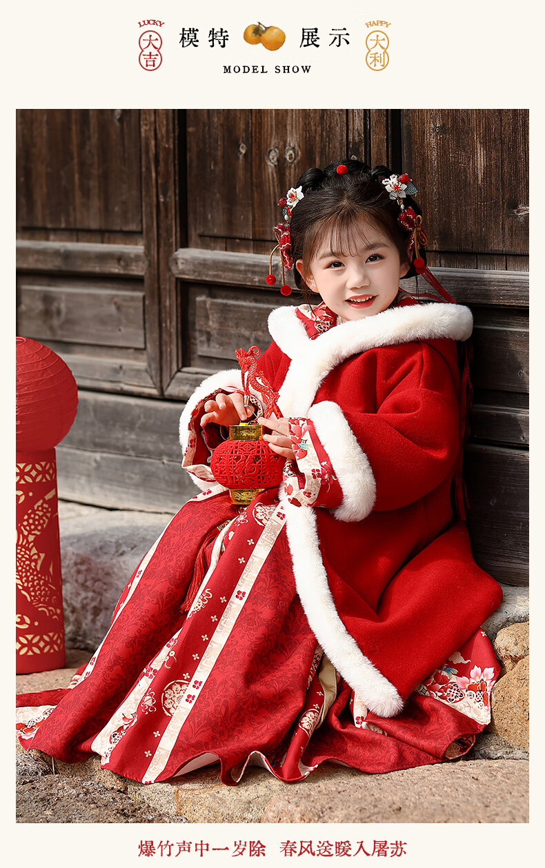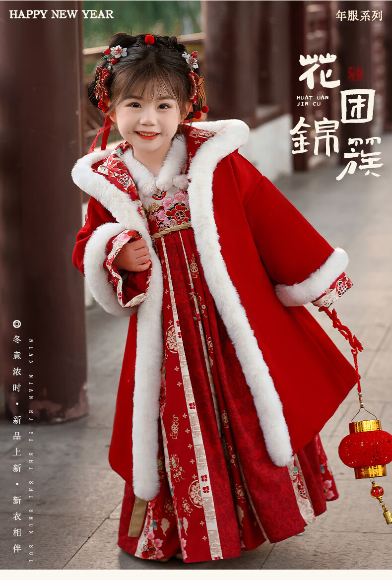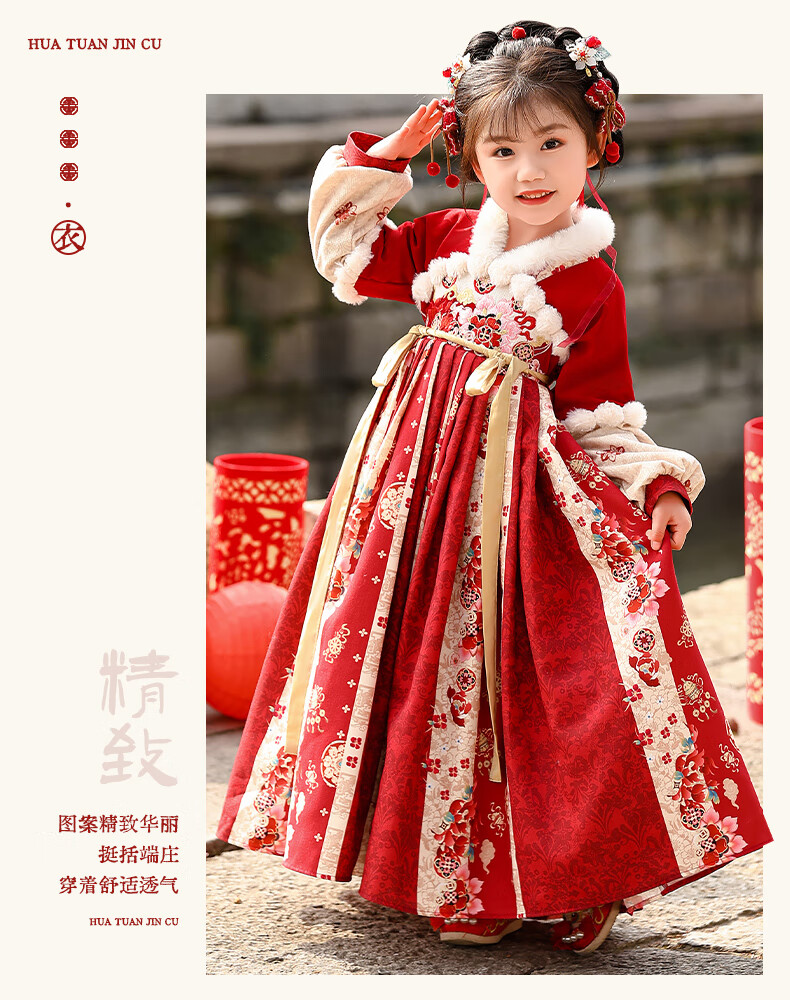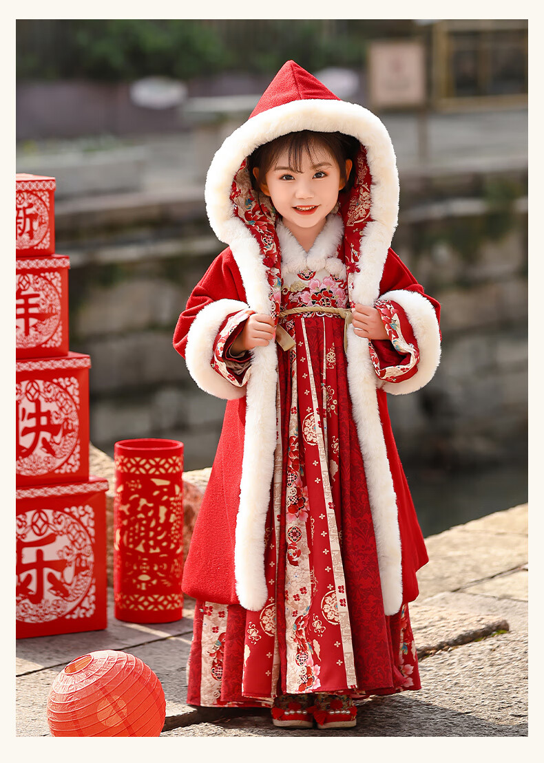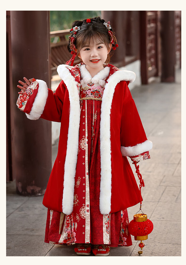 Pamino Hanfu Girls Winter Chinese Style Tang Suit Girls New Year Skirt Winter Clothes Children New Year Clothes Skirt 120