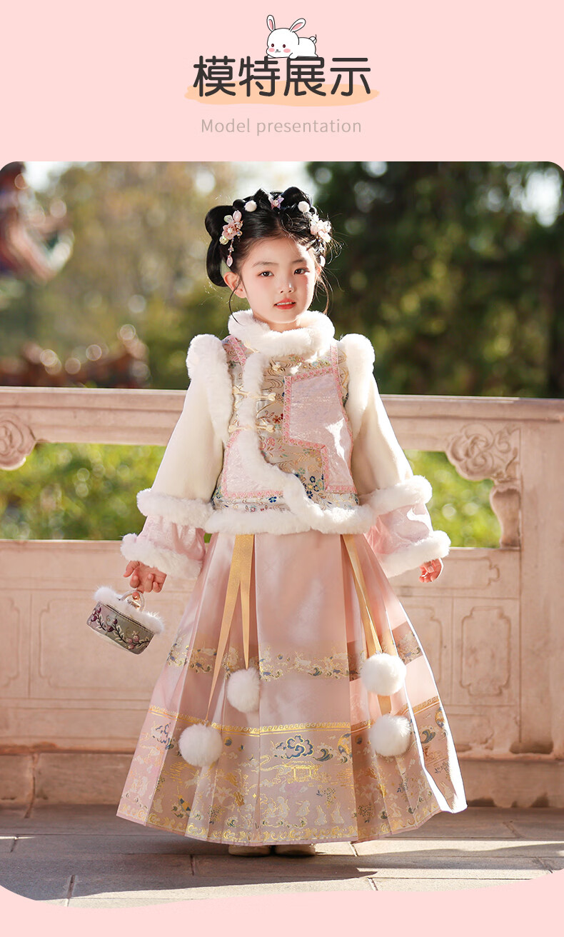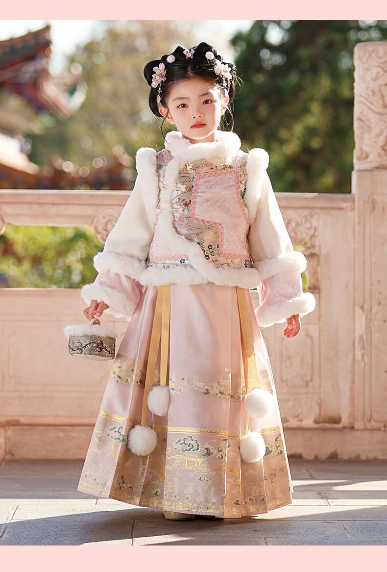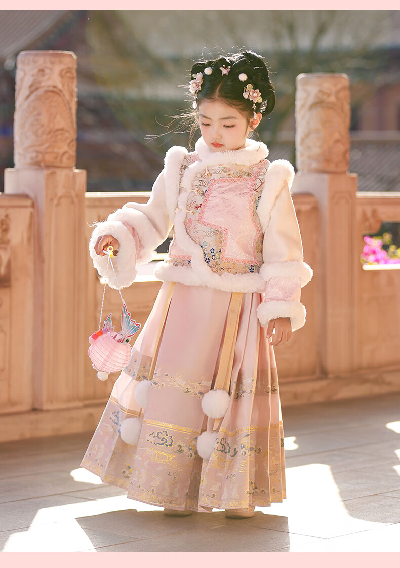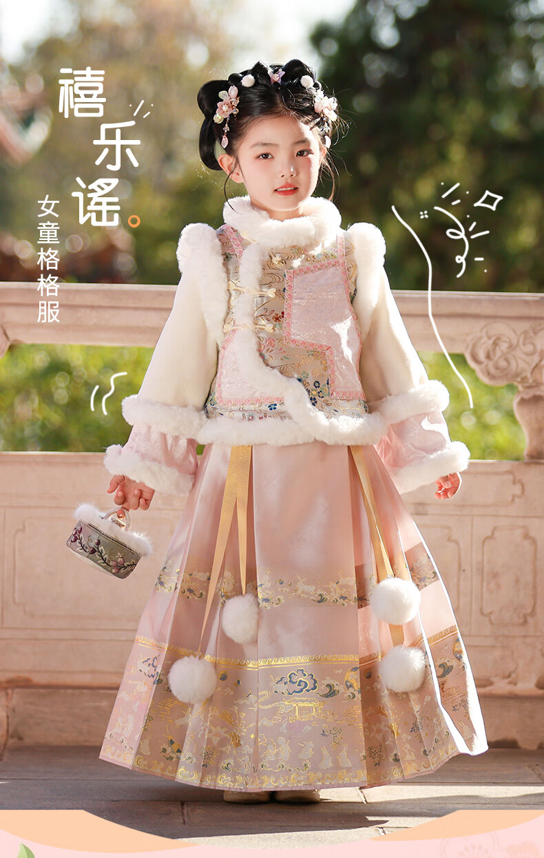 Anneyol Girls' Hanfu Winter Costume Children's Winter Clothes National Style Thickened Cheongsam Skirt New Year's Eve Clothes Pink 120