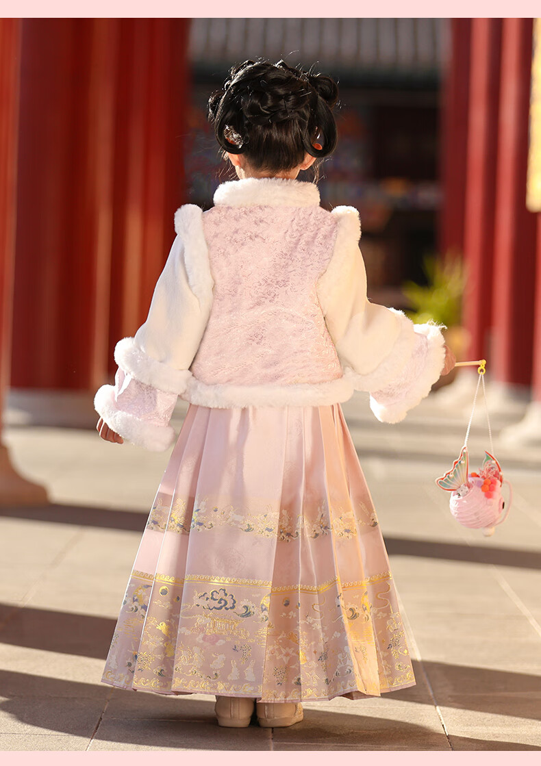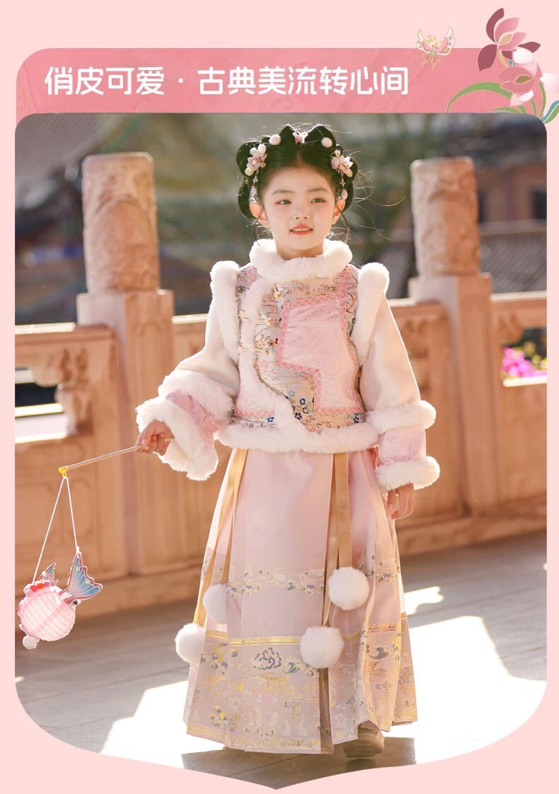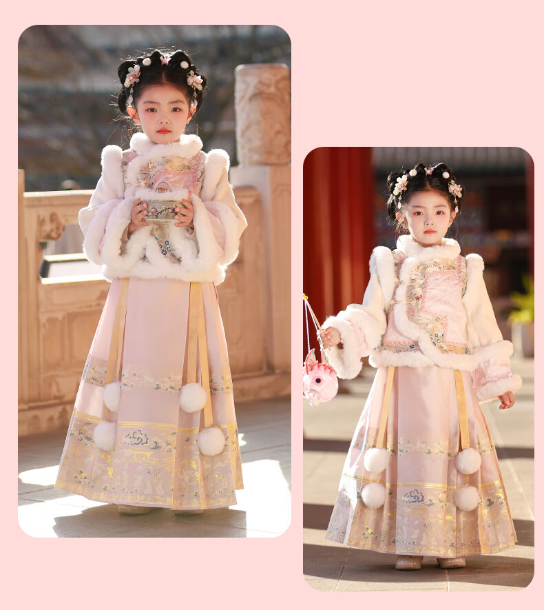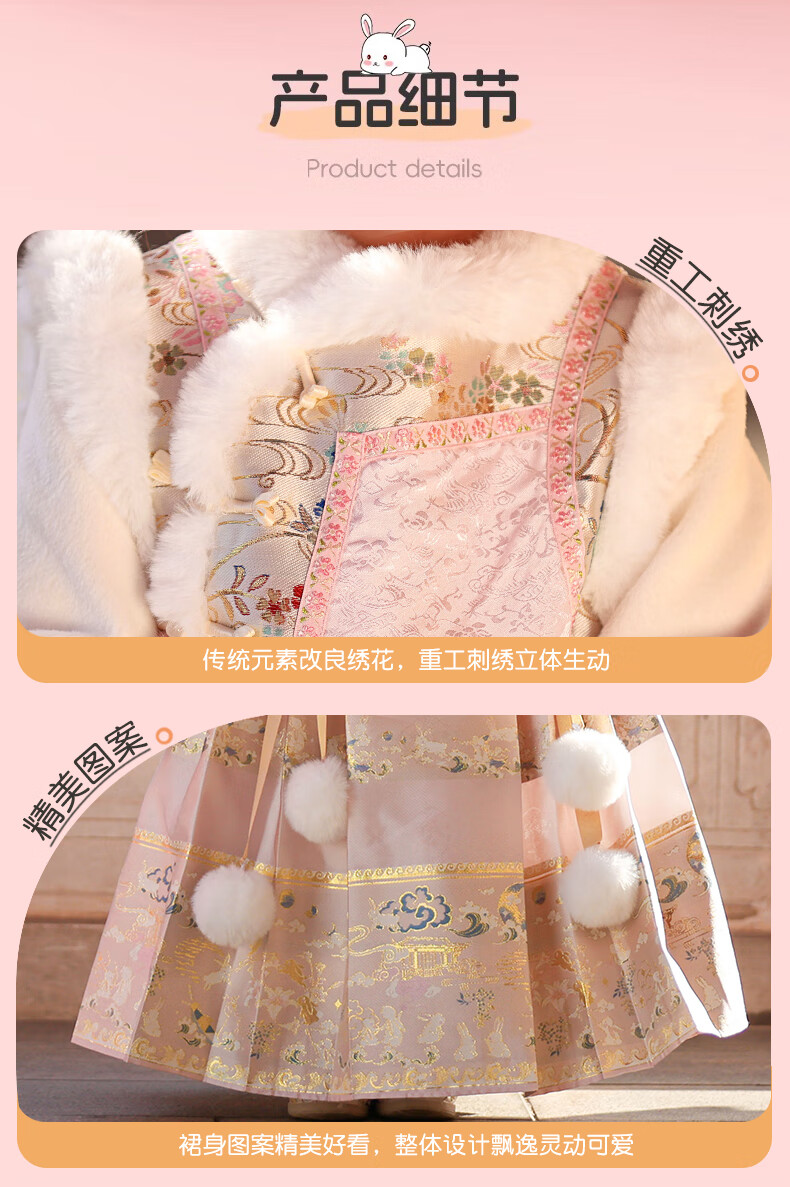 Anneyol Girls' Hanfu Winter Costume Children's Winter Clothes National Style Thickened Cheongsam Skirt New Year's Eve Clothes Pink 120