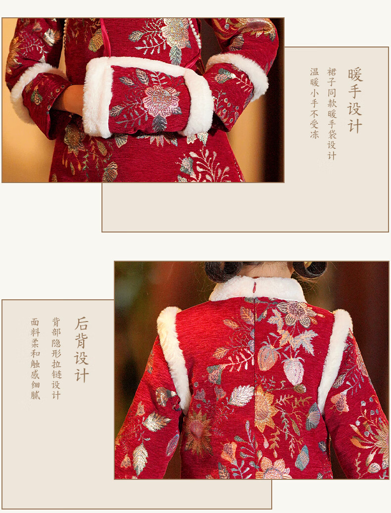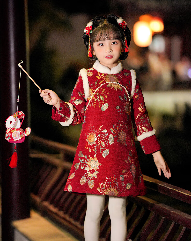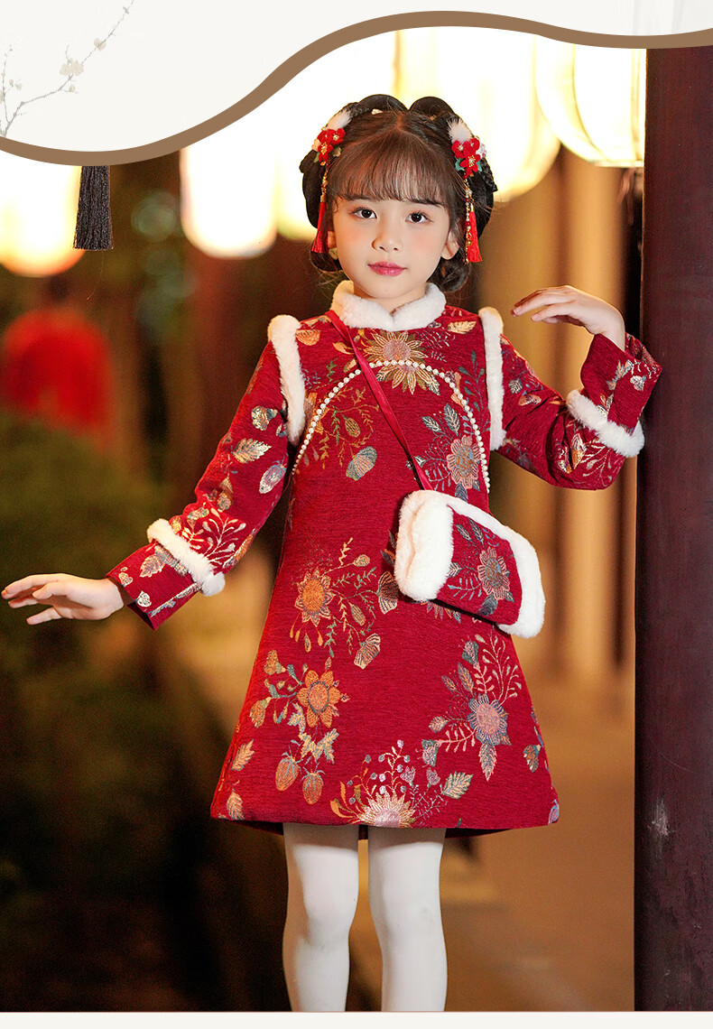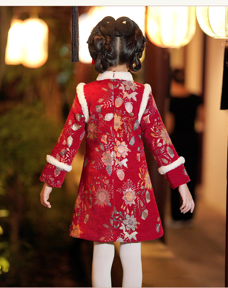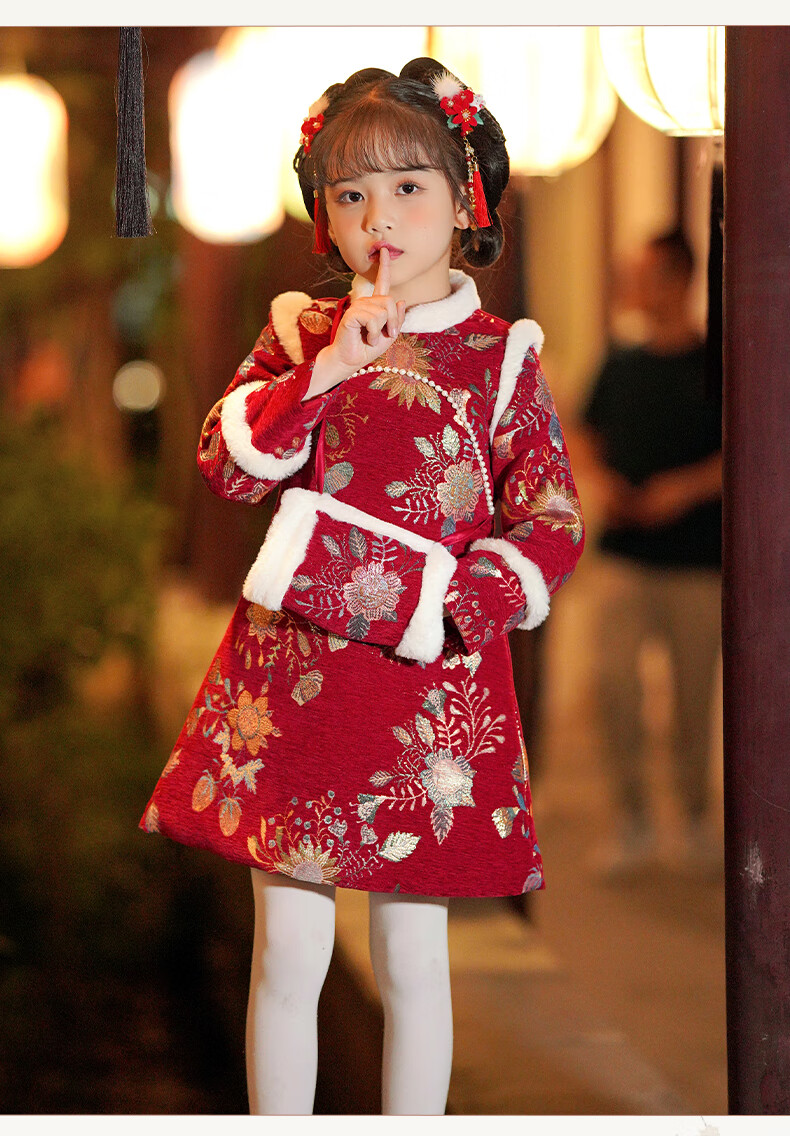Pamino Hanfu Girls New Year Clothes Children New Year Clothes Winter Clothes Cheongsam Winter New Year Clothes Chinese Style Red 130