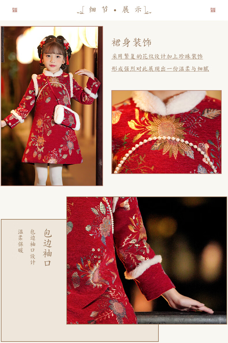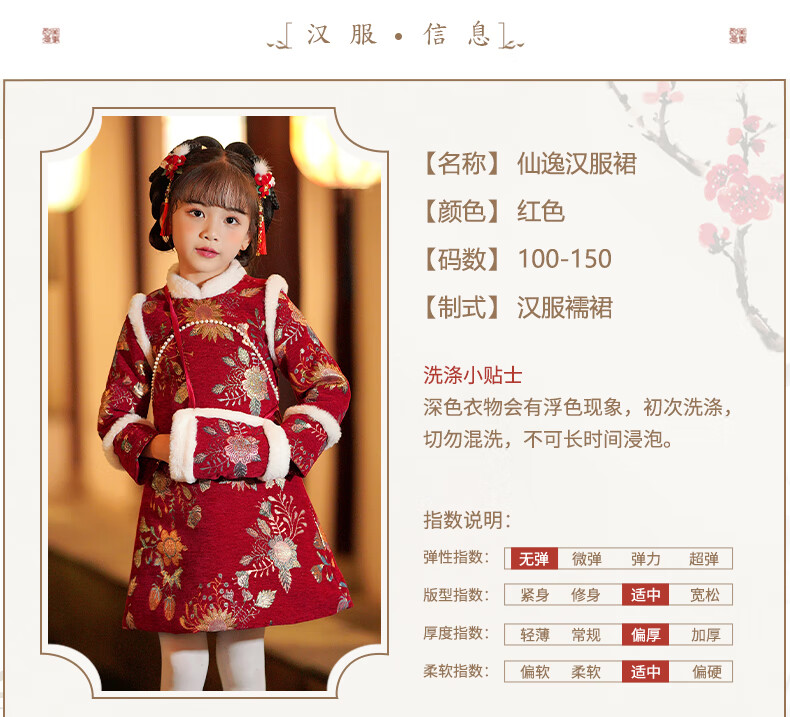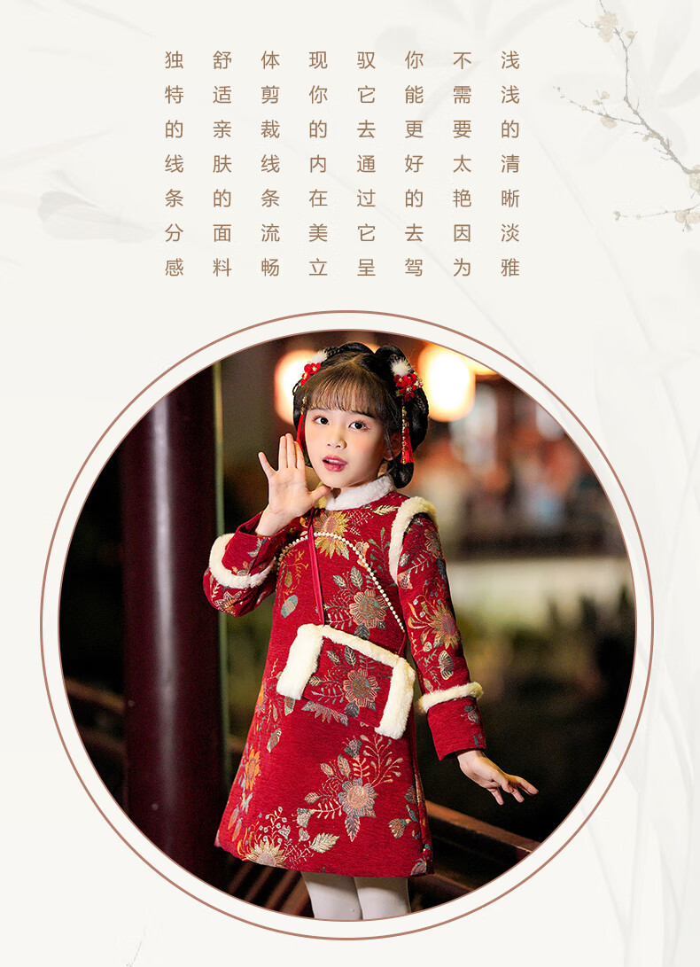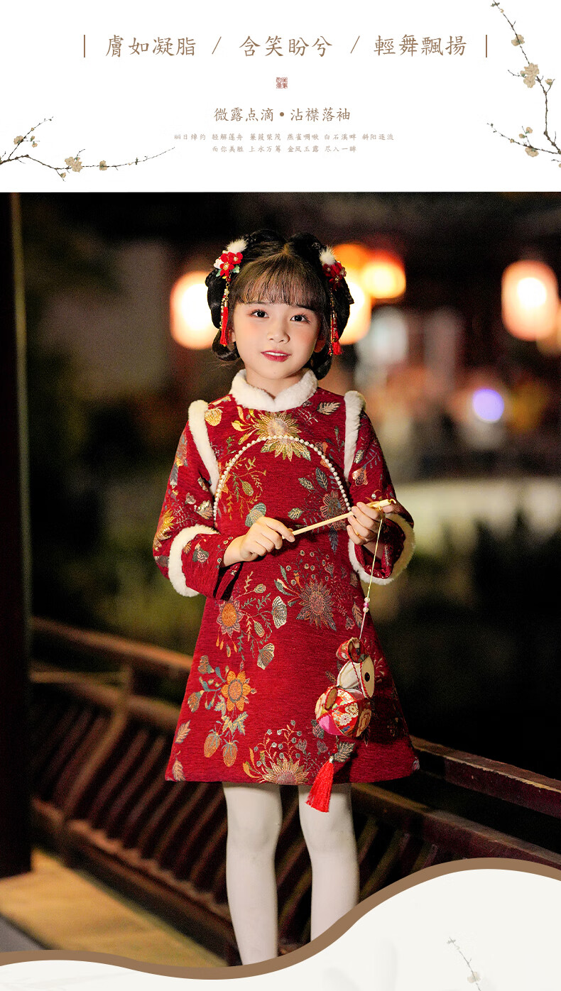Pamino Hanfu Girls New Year Clothes Children New Year Clothes Winter Clothes Cheongsam Winter New Year Clothes Chinese Style Red 130