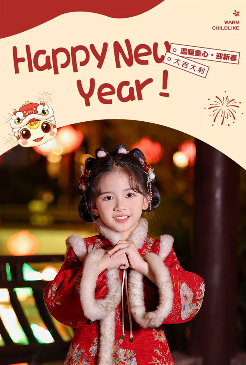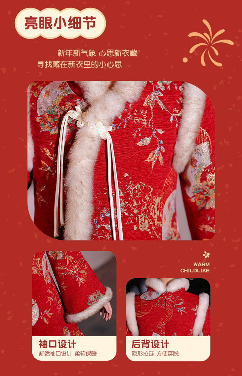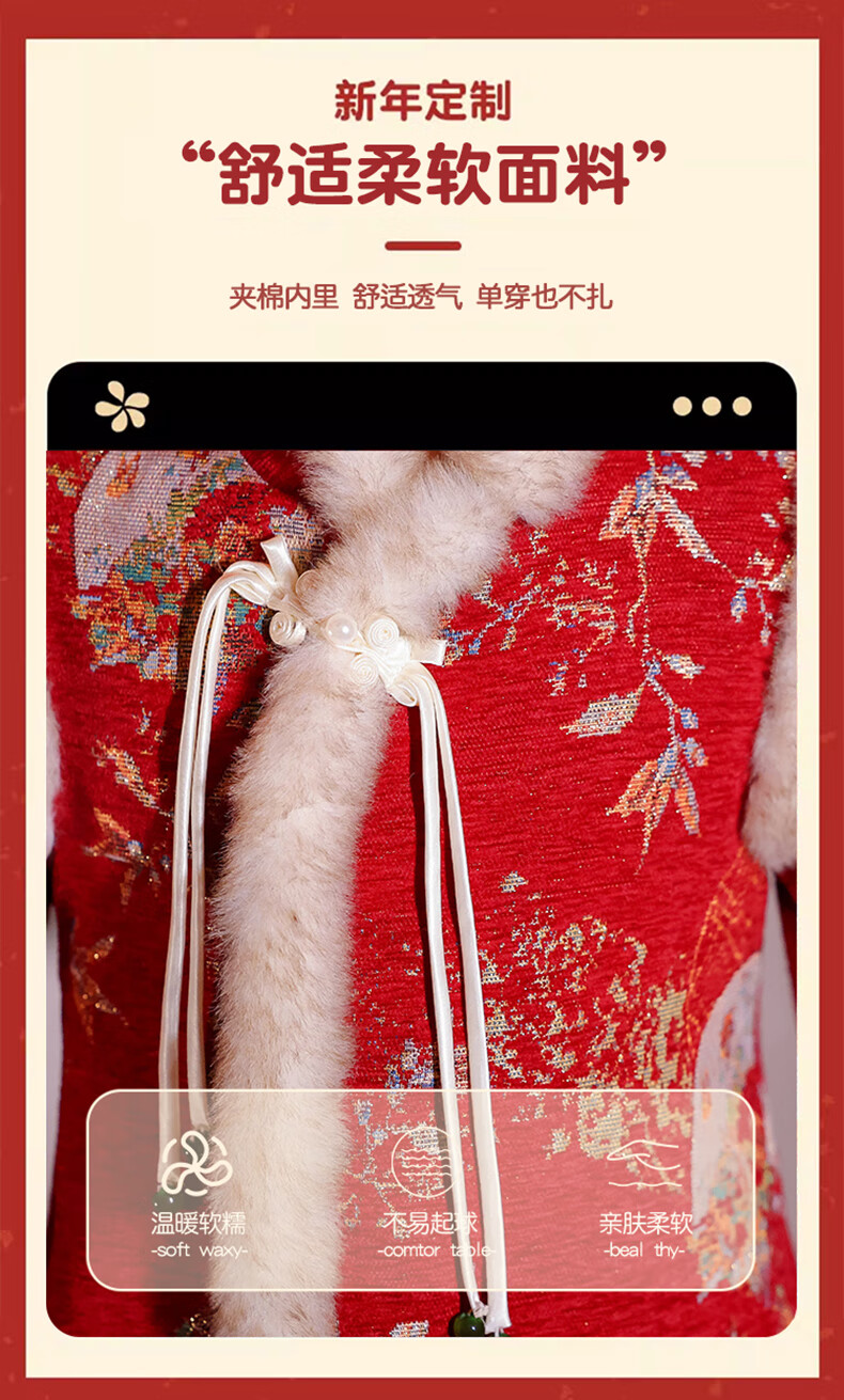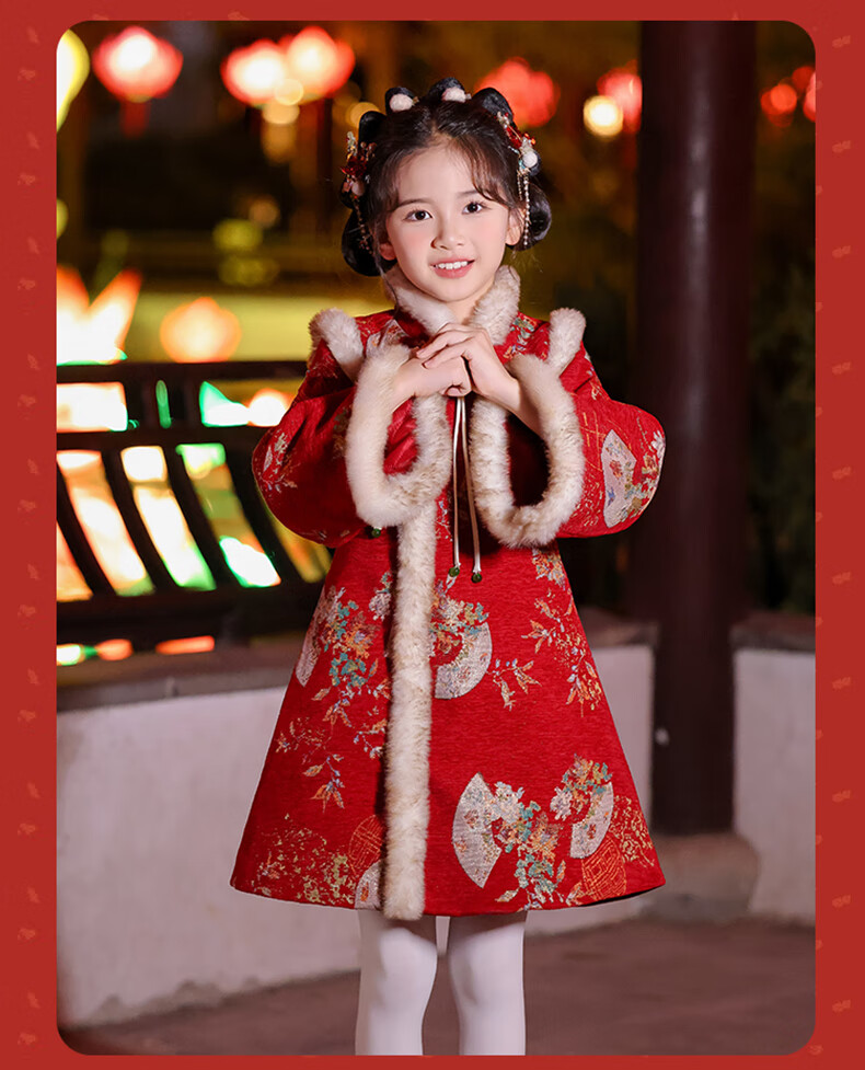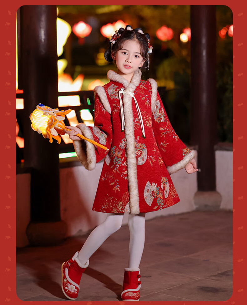 Anneyol Girls' Cheongsam New Year's Eve Costume Winter Chinese Style Children's New Year Hanfu Skirt Thickened Winter Style Red 130