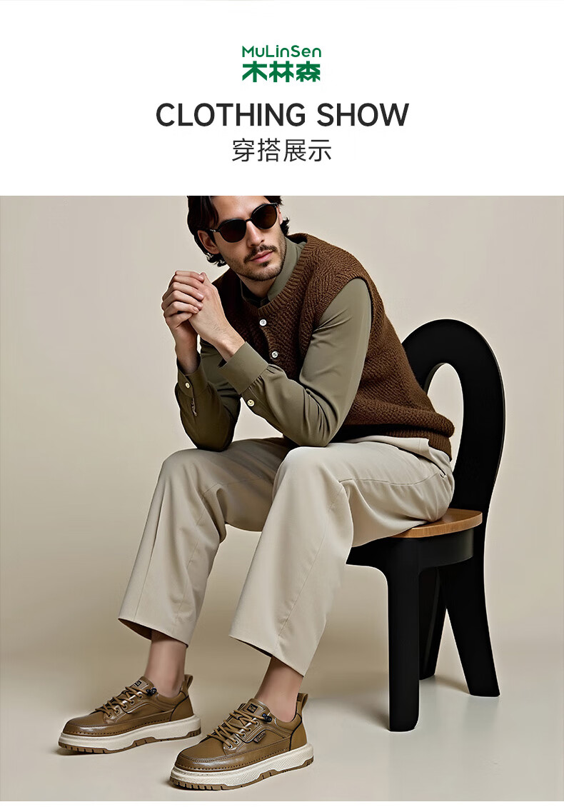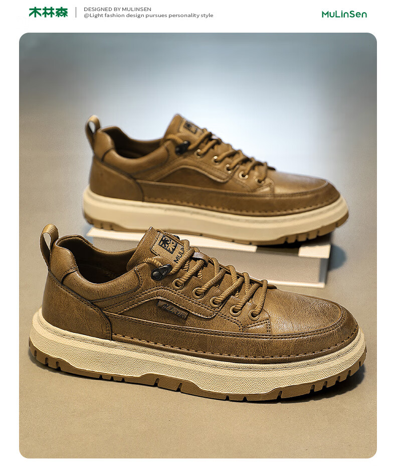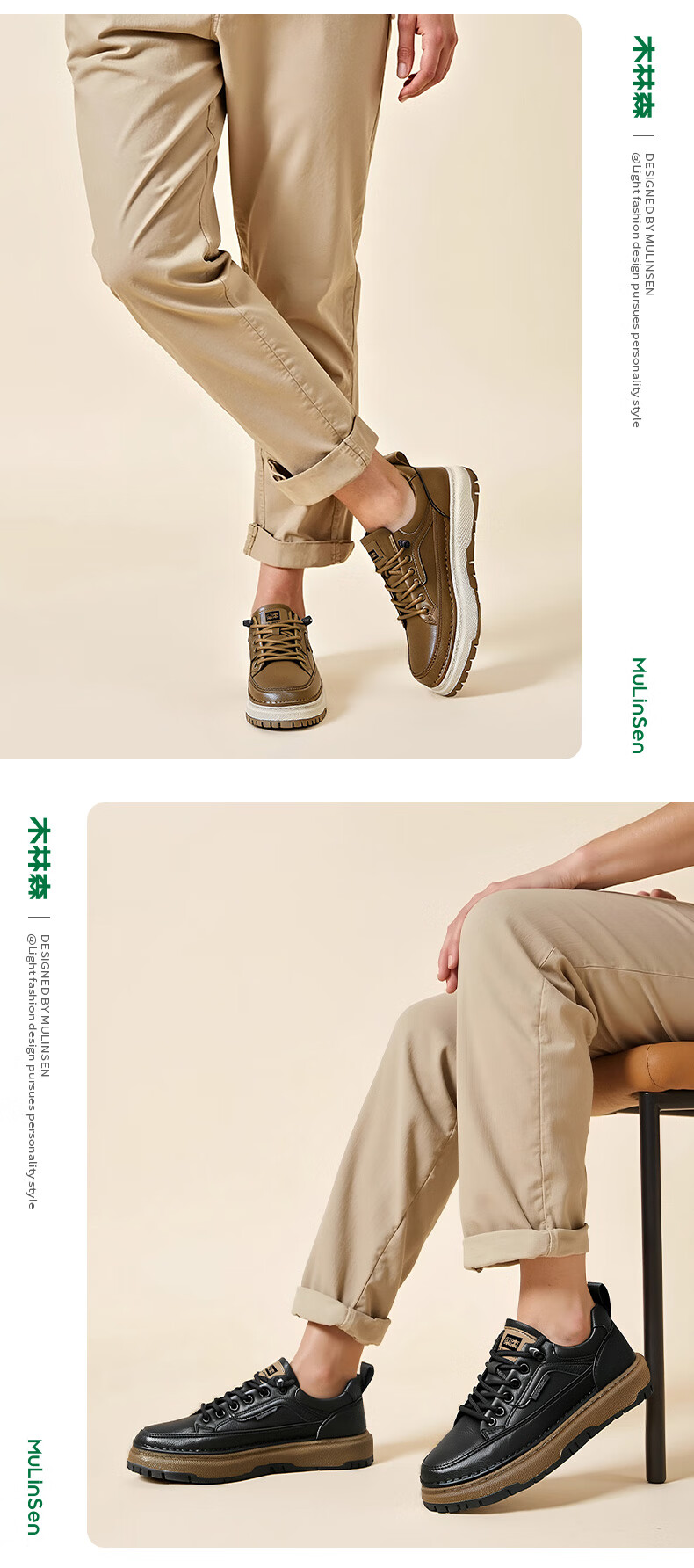 Mulinsen Men's Shoes Autumn and Winter New Business Casual Shoes Men's Commuting Work Shoes Outdoor Work Shoes Brown 42