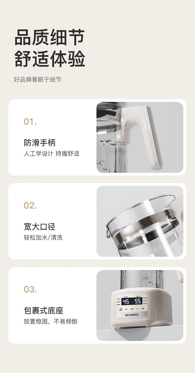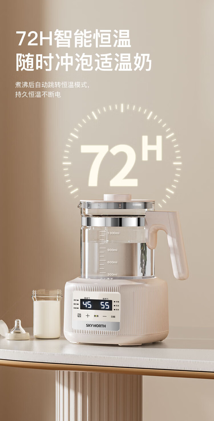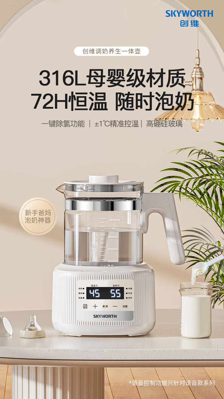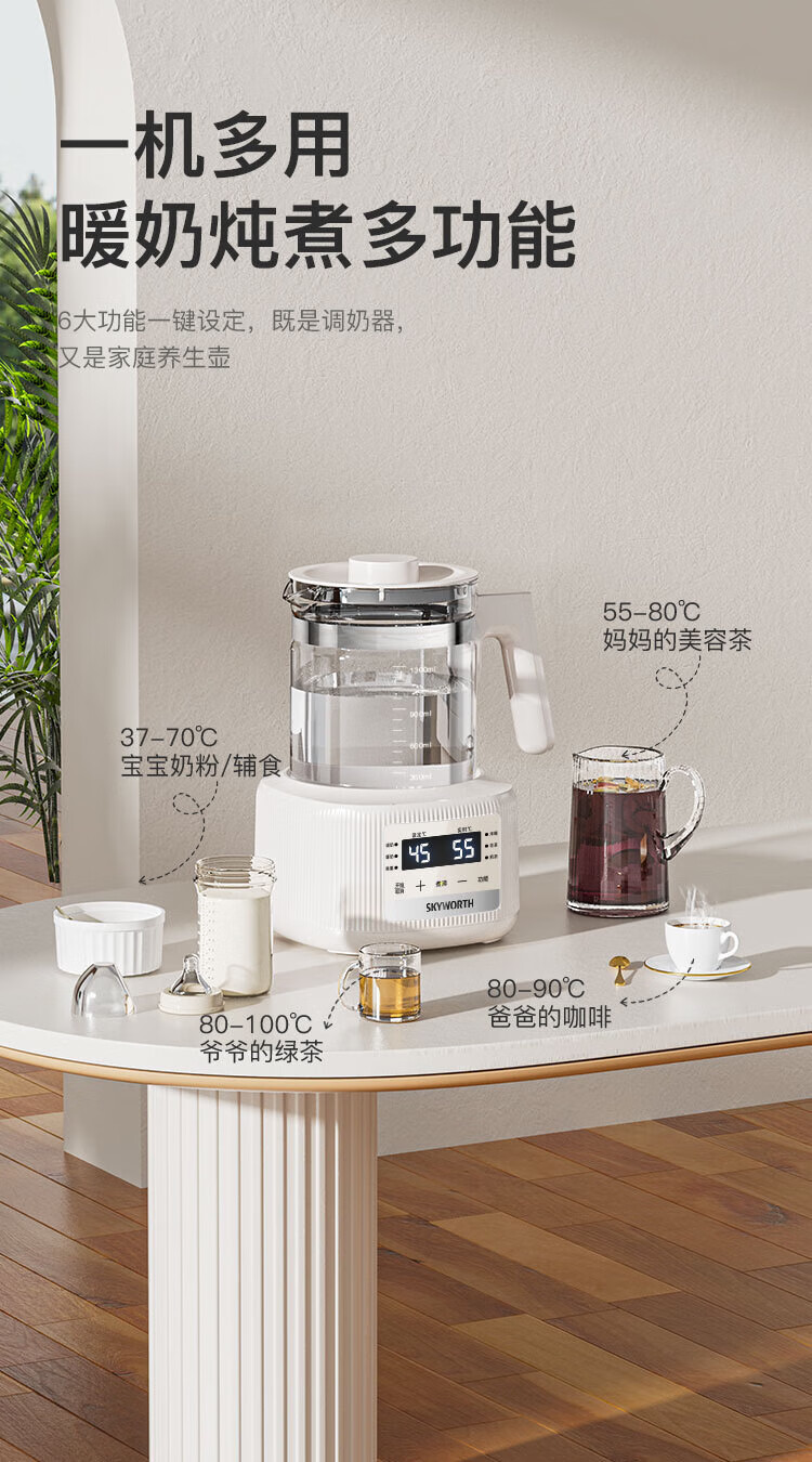 Skyworth government subsidy health kettle glass kettle body automatic milk regulator 316 stainless steel office multi-functional floral tea kettle thermostatic kettle electric kettle tea kettle S258