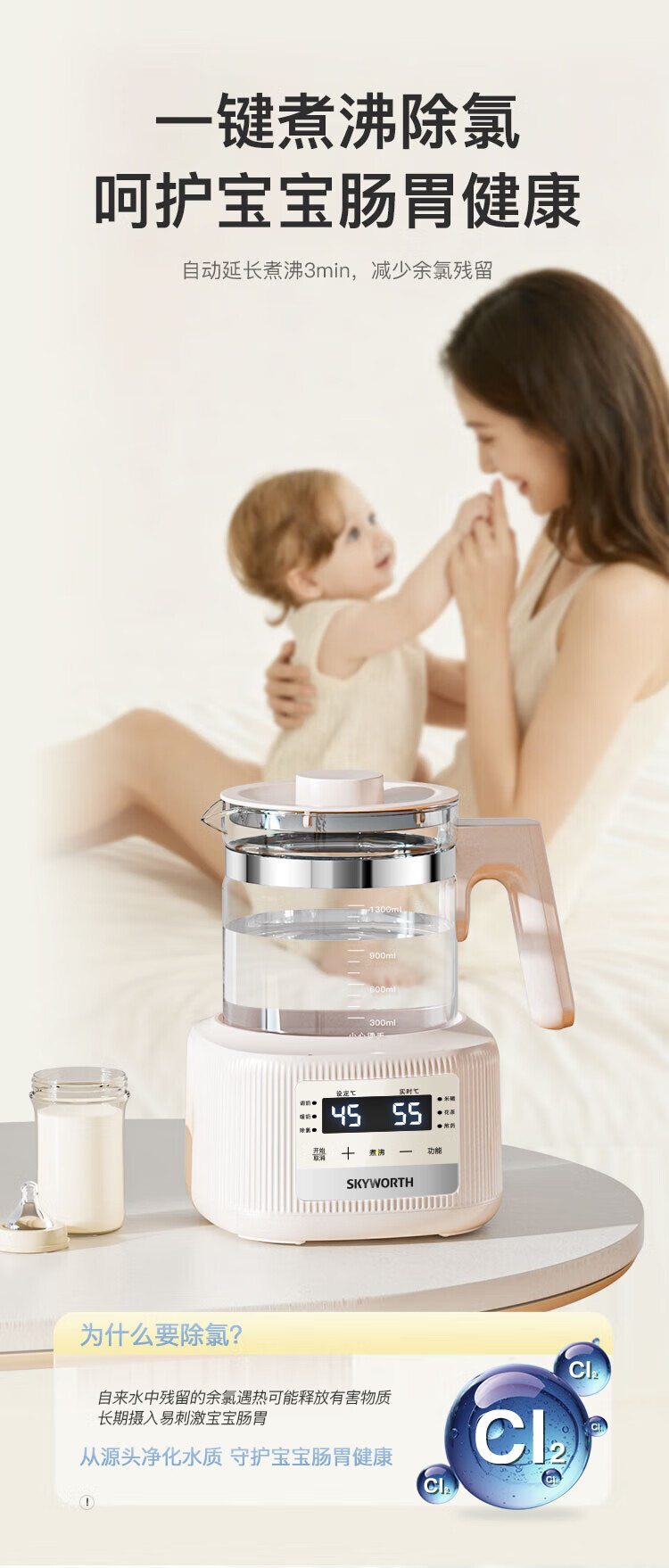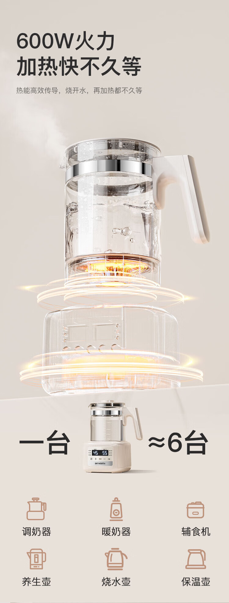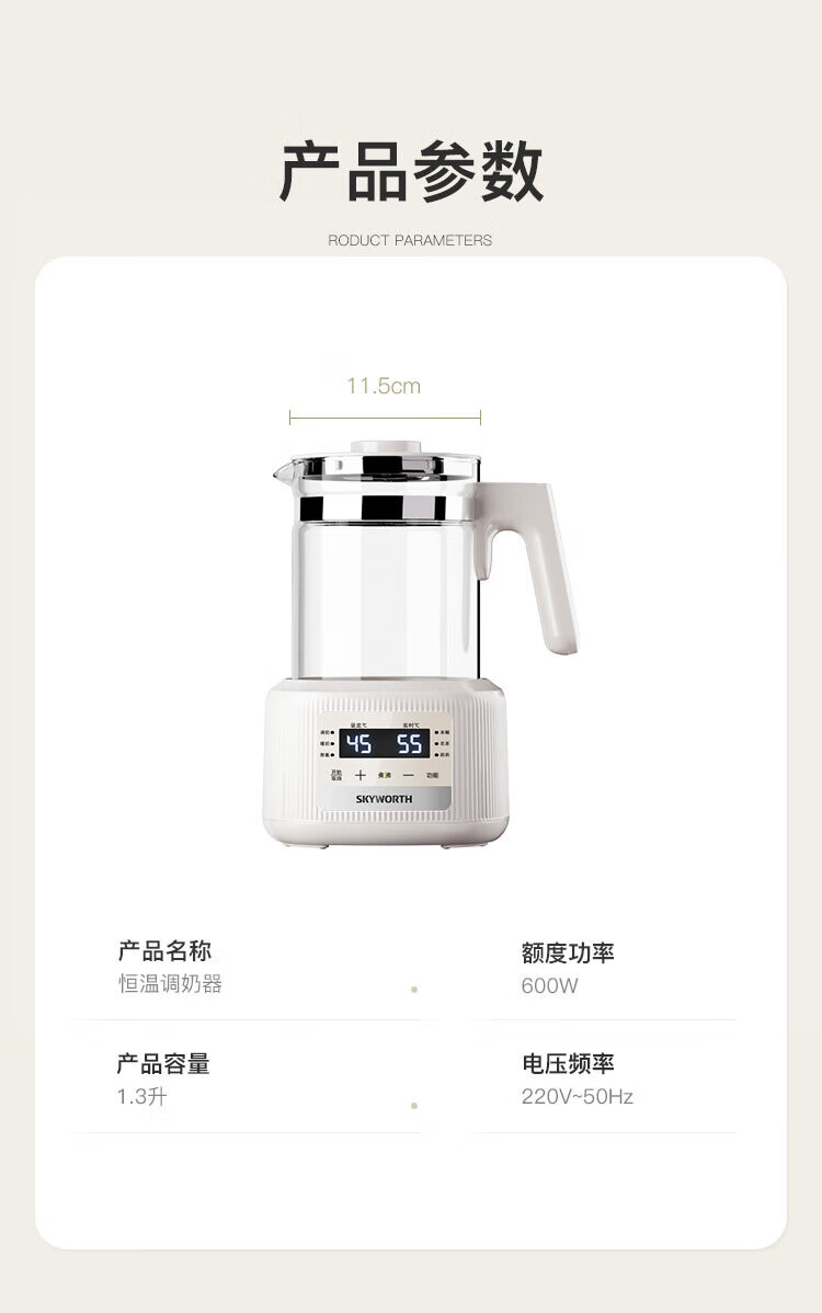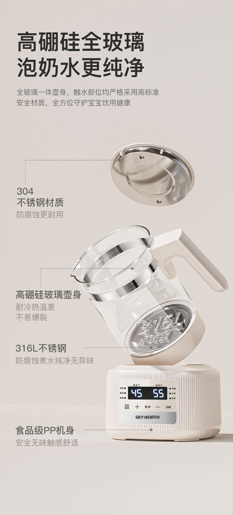 Skyworth government subsidy health kettle glass kettle body automatic milk regulator 316 stainless steel office multi-functional floral tea kettle thermostatic kettle electric kettle tea kettle S258