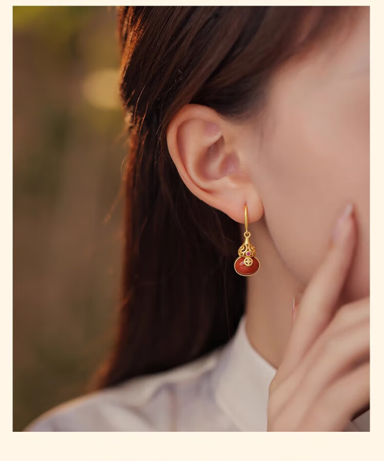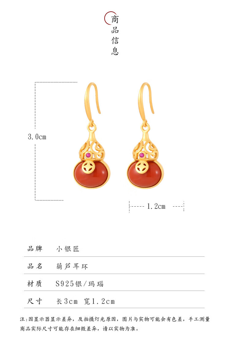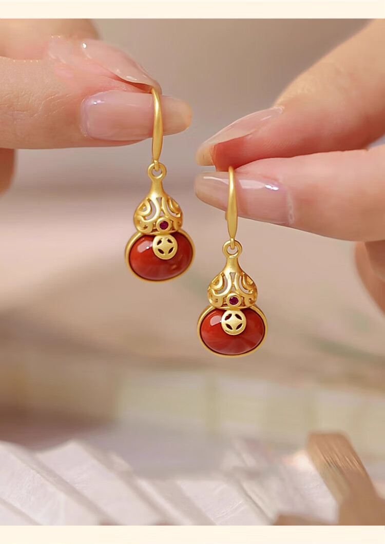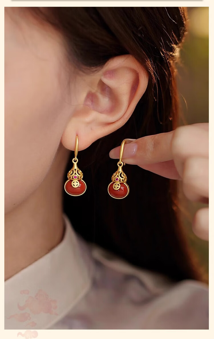 Little Silversmith S925 silver gourd earrings for women agate small gourd copper coin earrings new Chinese style hollow tassel earrings girlfriend gift