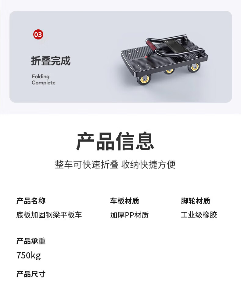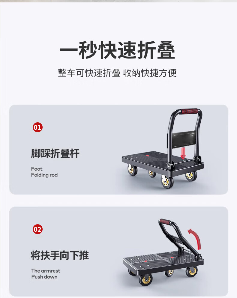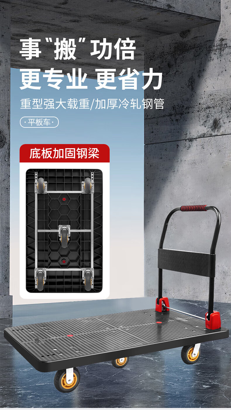 Leyou Baiyi small cart flatbed cargo trolley 110*65 large cargo heavy cargo light sound small trolley tow warehouse handling five-tube truck