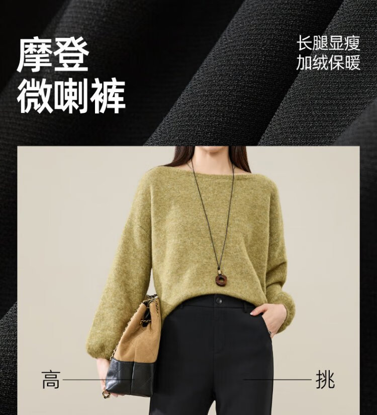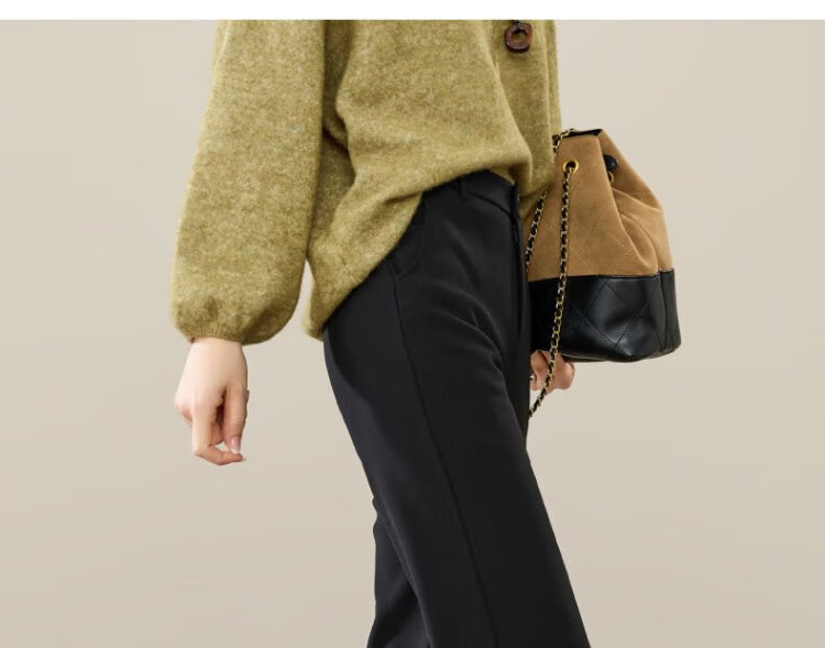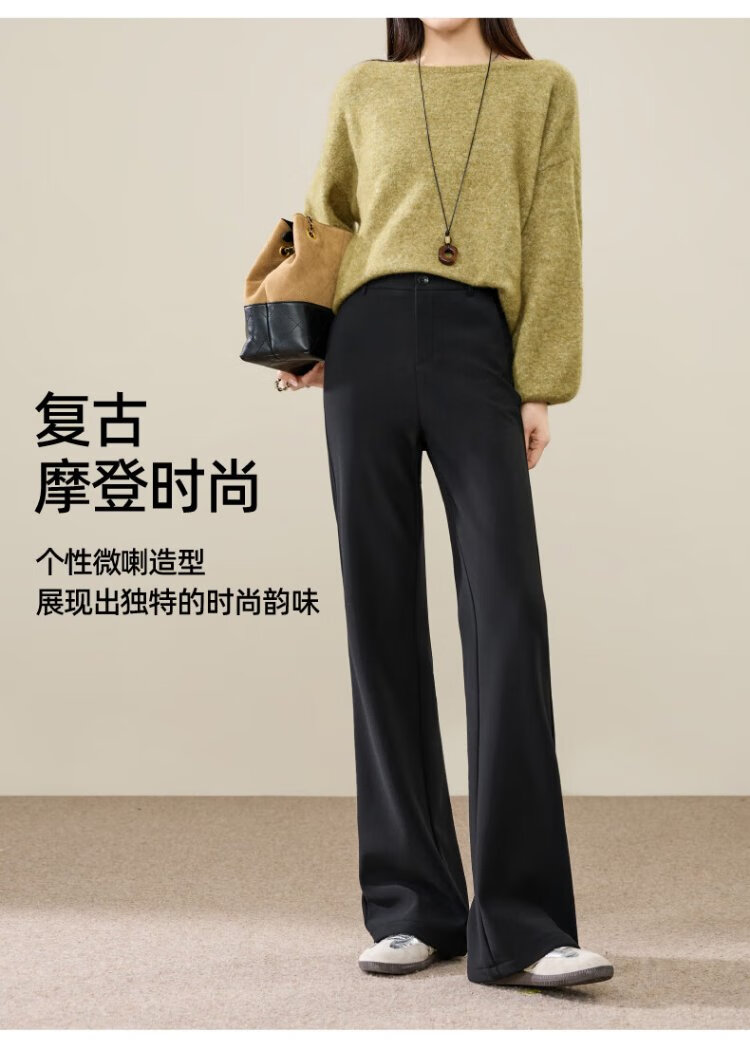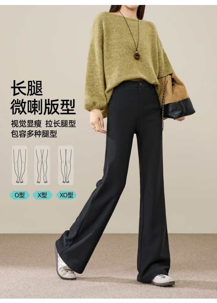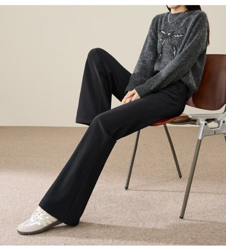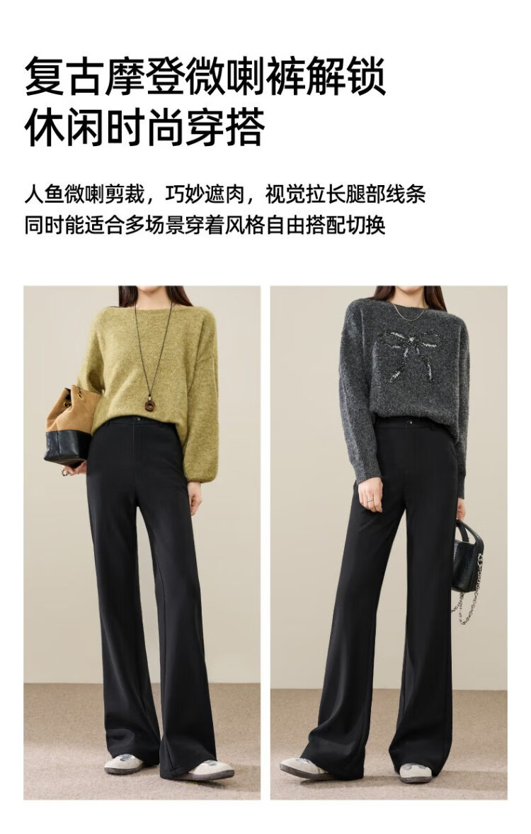 Yiyang (ESE-Y) Austrian velvet boot-cut pants for women 2025 winter new high-waisted flared velvet pants black petite 28