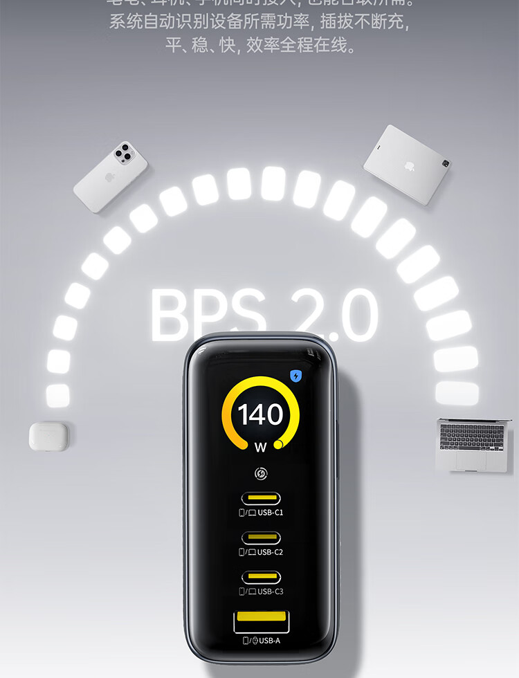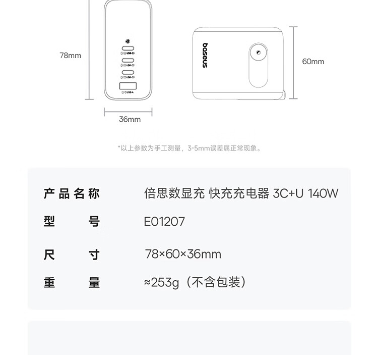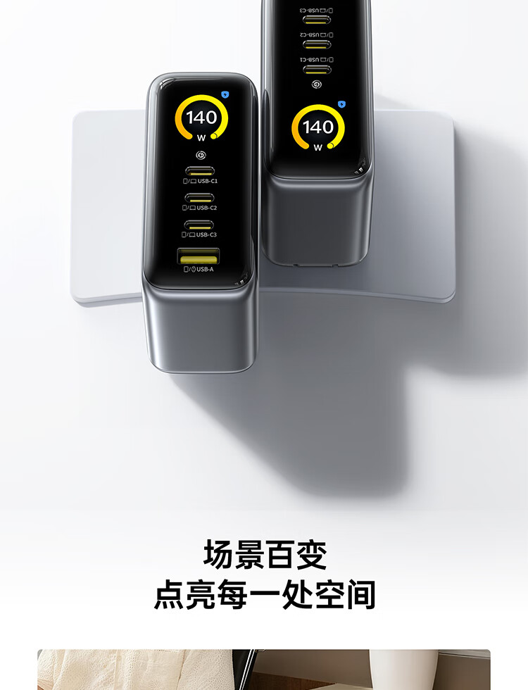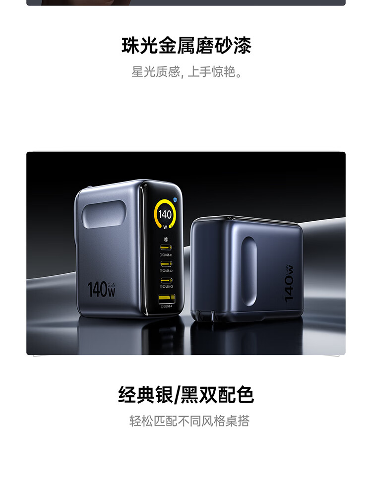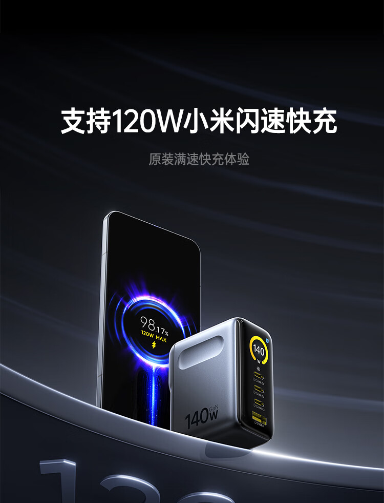 Baseus 140W conjunto de cargador de nitruro de galio pantalla tipo-c multipuerto PD carga rápida 100w cabezal de carga de teléfono móvil adecuado para computadora portátil iphone17 Xiaomi 120W plata