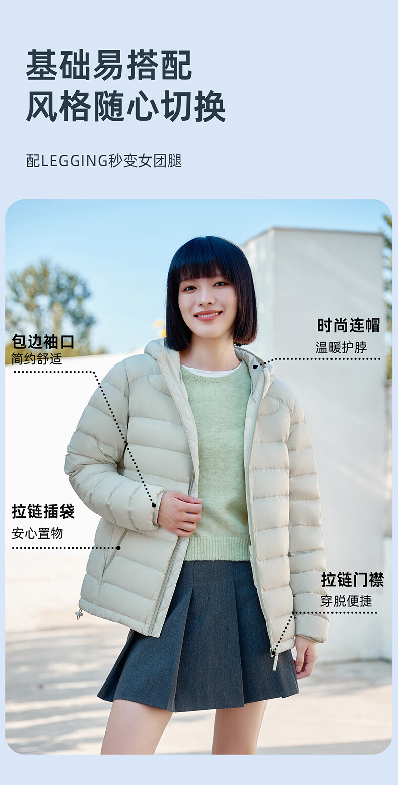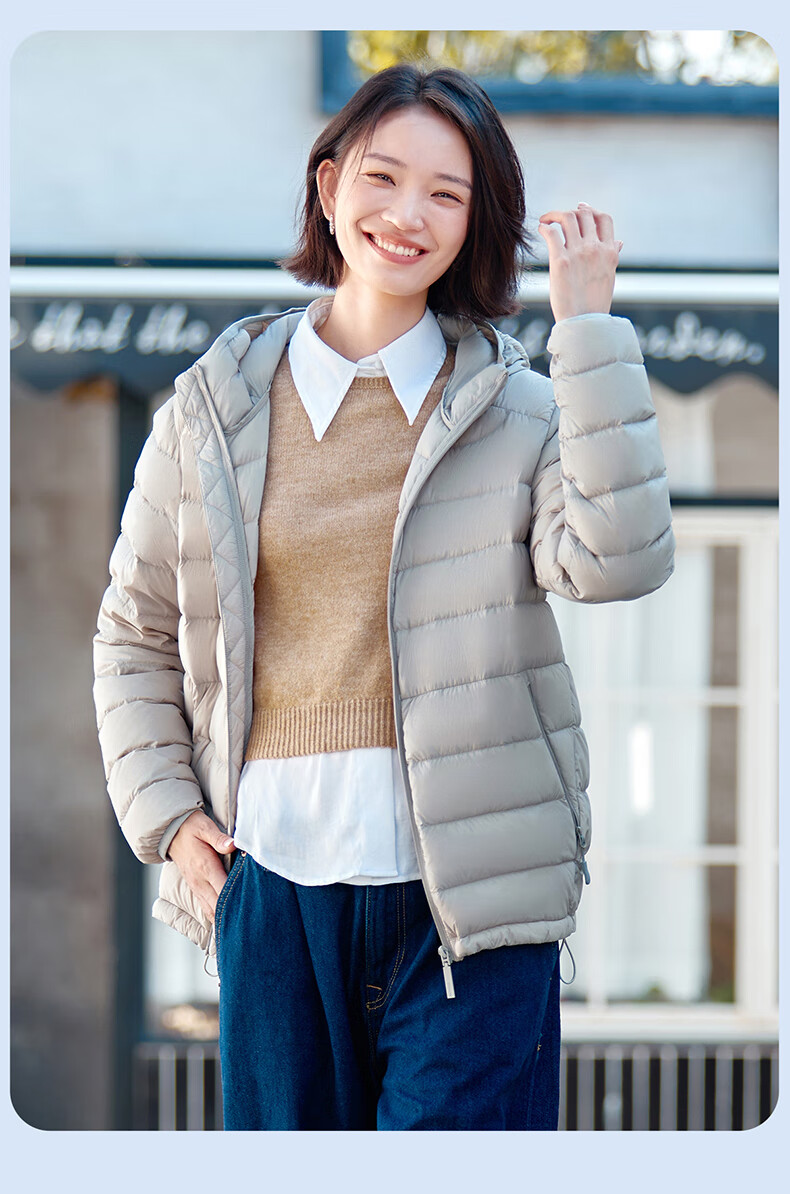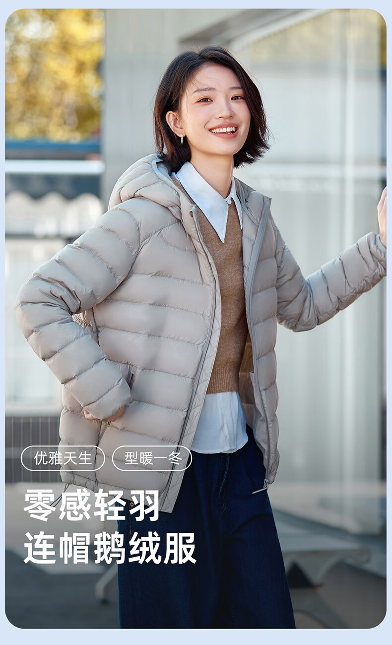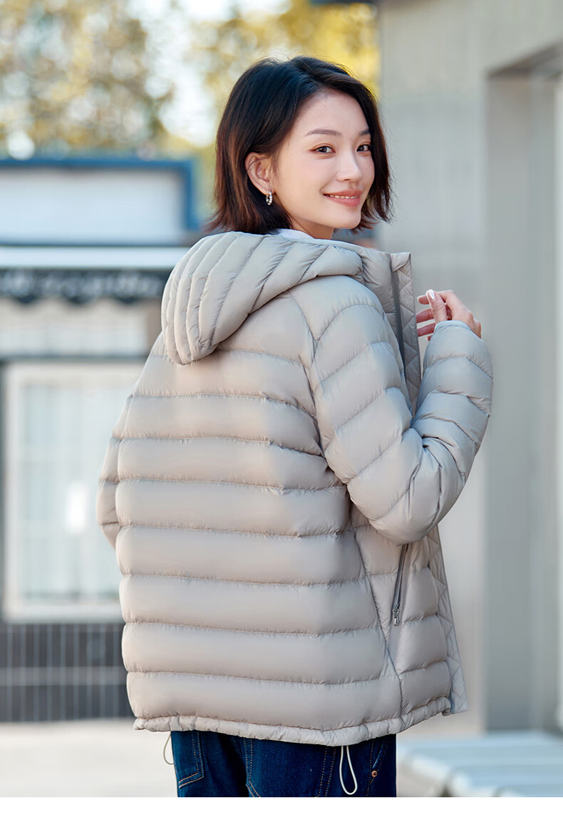 Yalu goose down ribs light down jacket 2025 new autumn and winter short hooded fashionable casual jacket