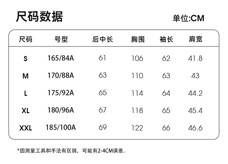 China (cm) 165 / 88-90 170 / 96-98 175 / 108-110 180 / 118-122 185 / 126-130