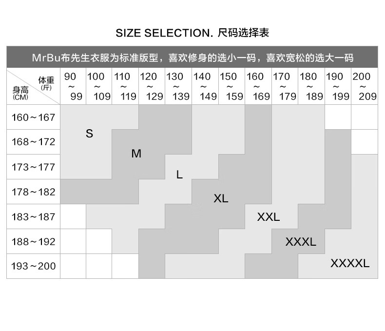 China (cm) 160-165/84-86 165-170 / 88-90 167-172 / 92-96 168-173 / 98-102 170-176 / 106-110