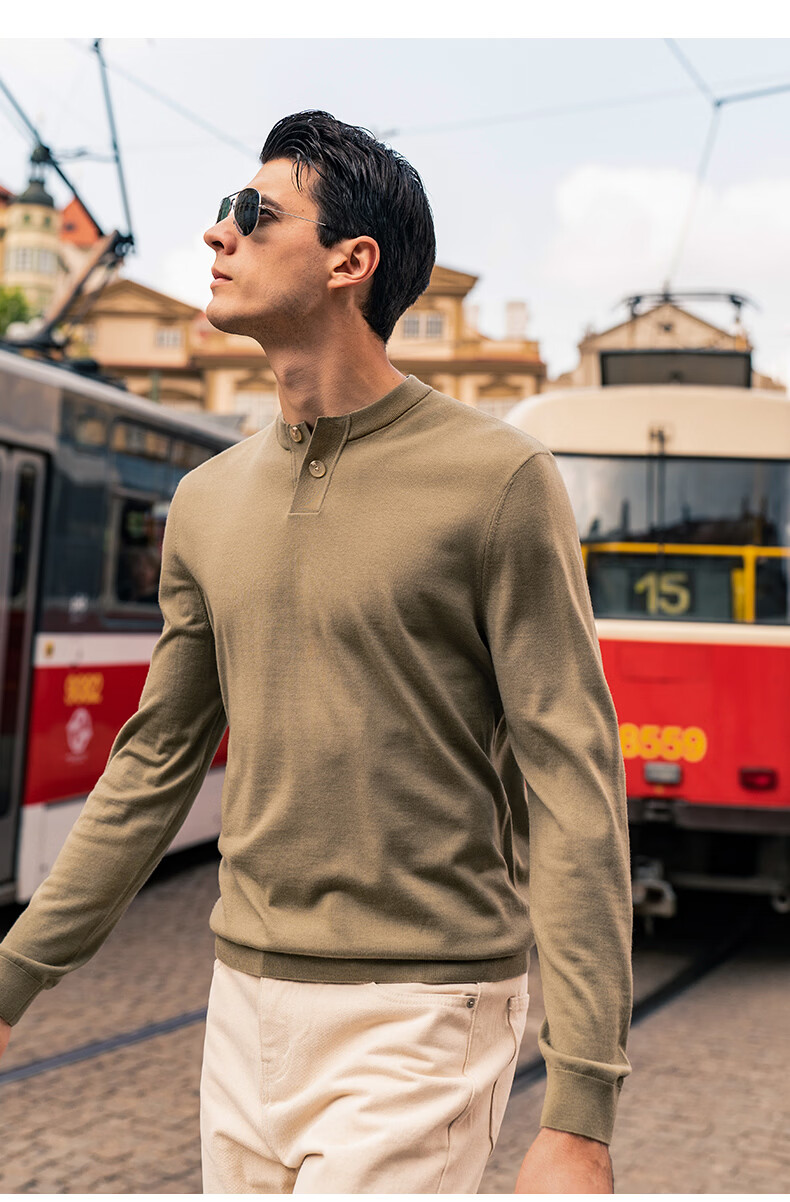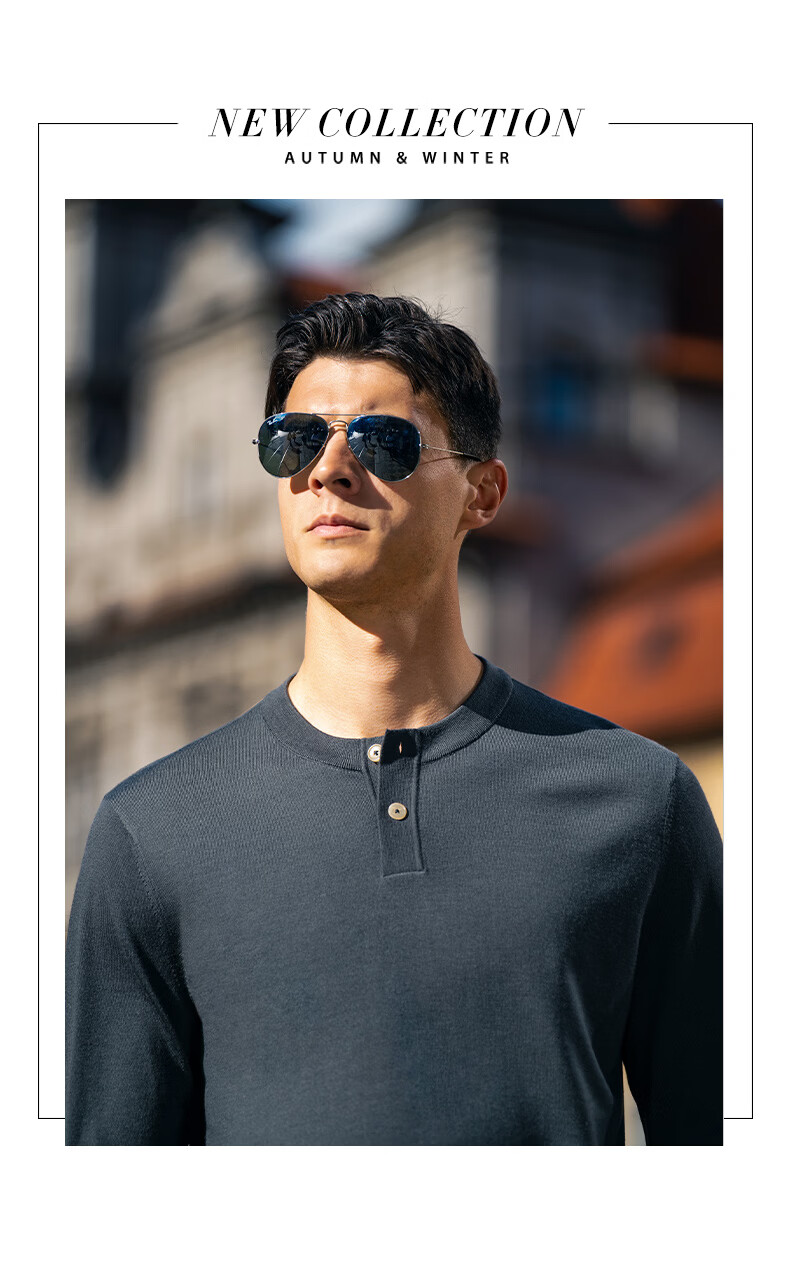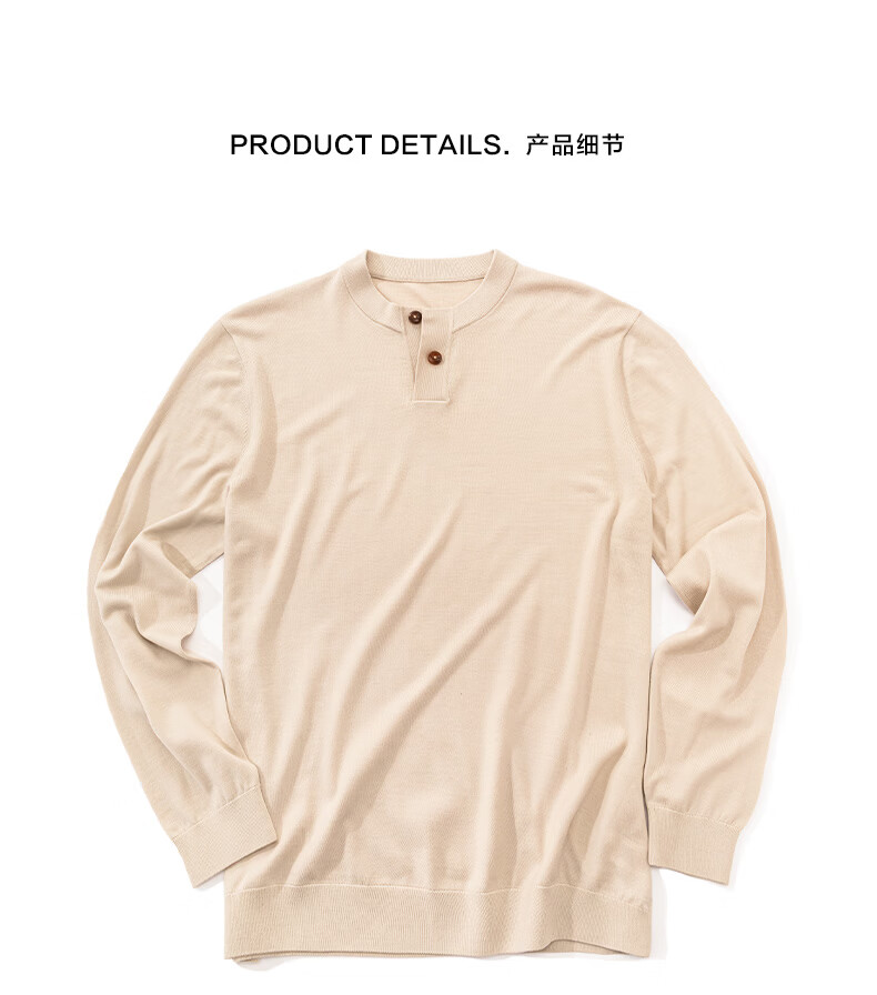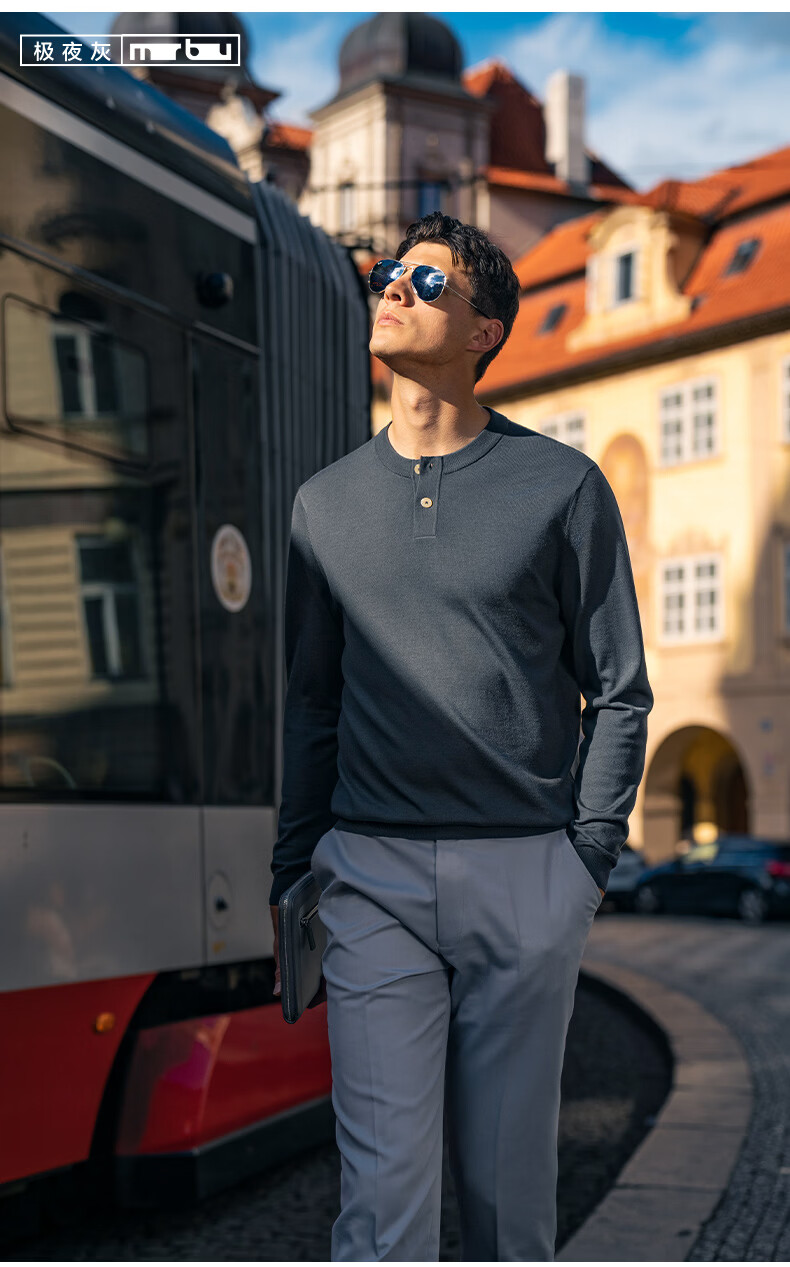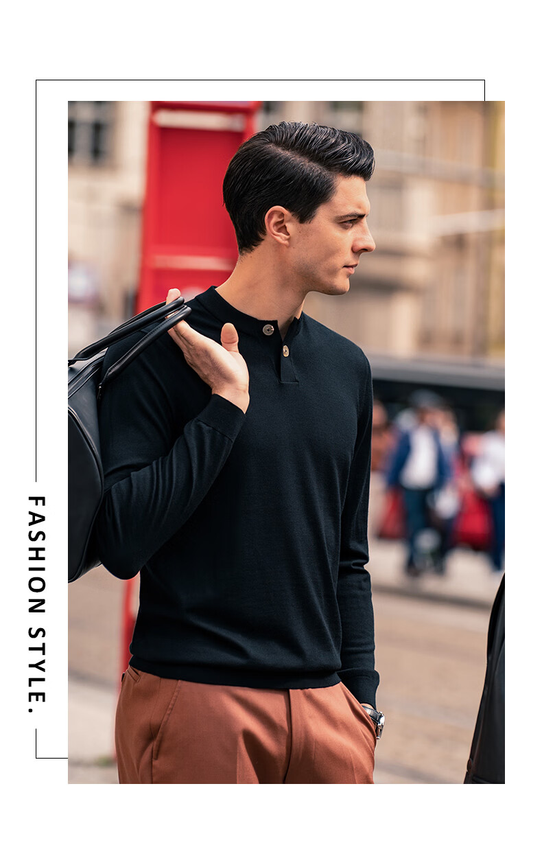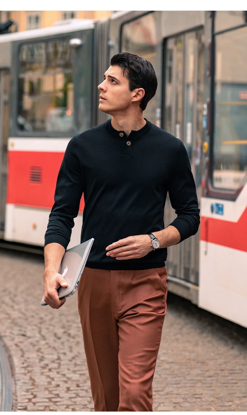 Mr. Bu Henry collar thin wool T-shirt spring and autumn long-sleeved wool sweater for men piano black L (175)
