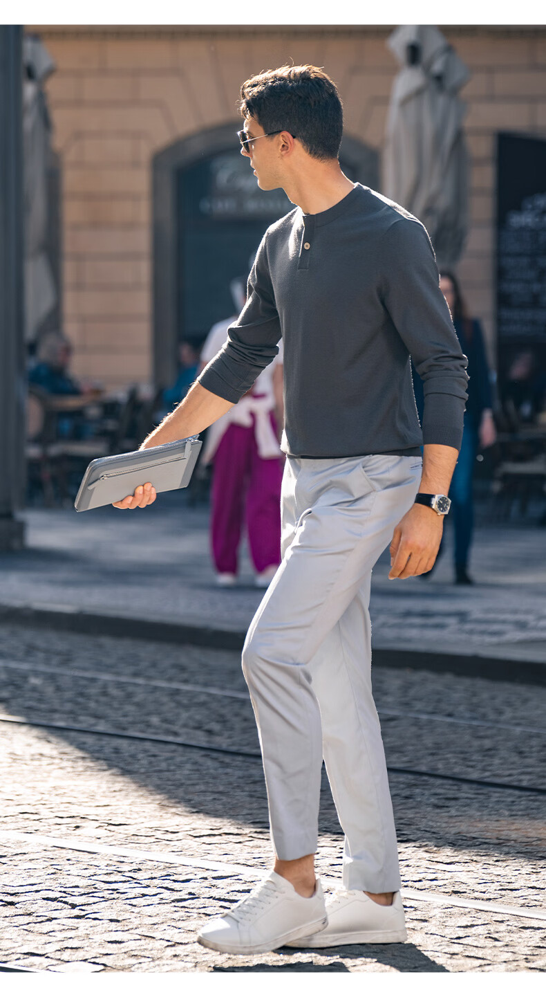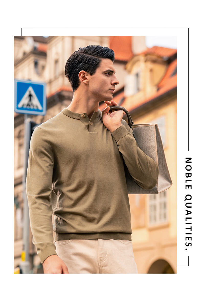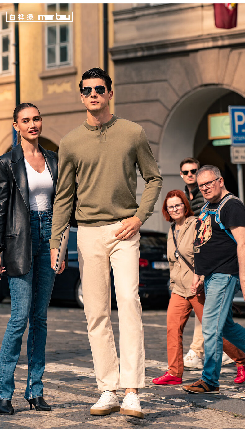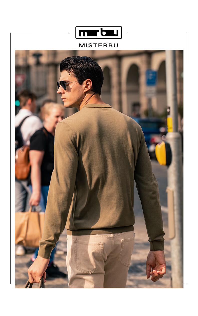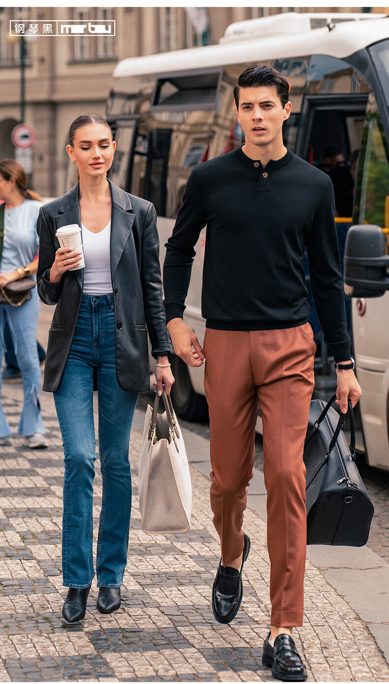 Mr. Bu Henry collar thin wool T-shirt spring and autumn long-sleeved wool sweater for men piano black L (175)