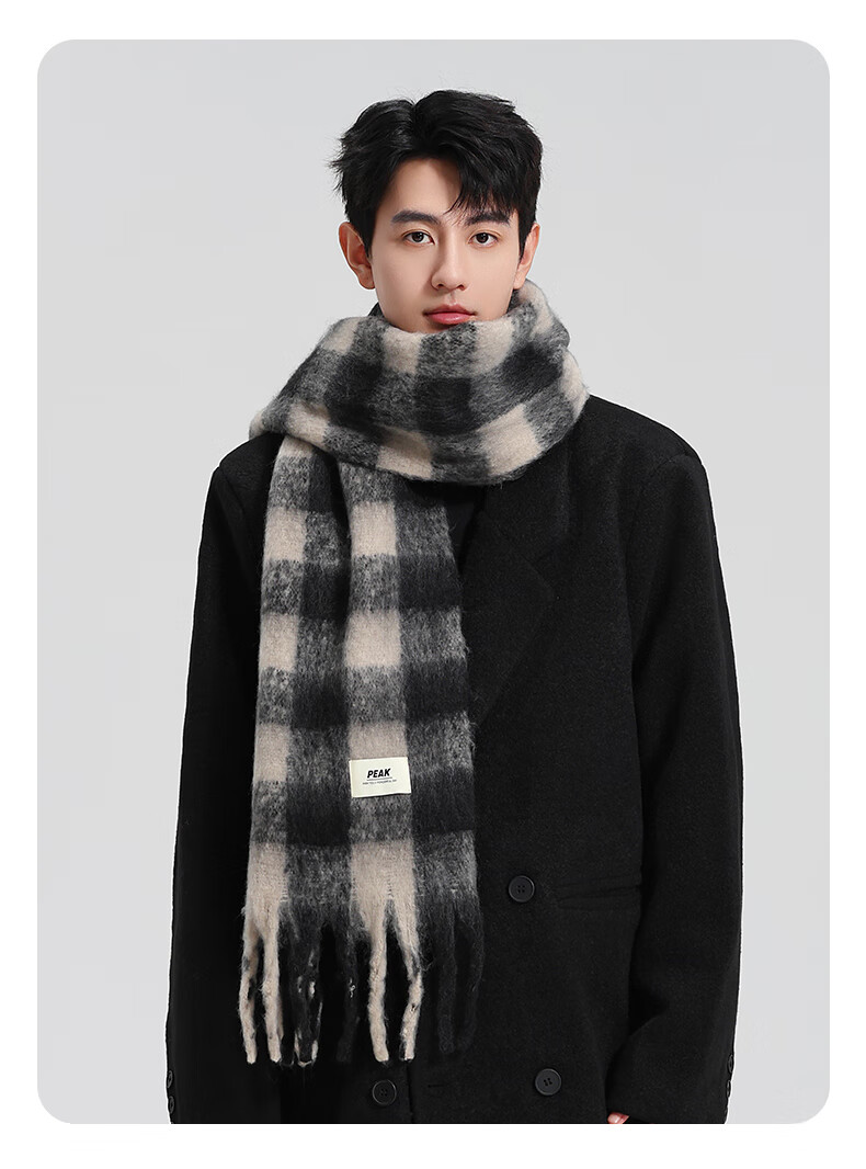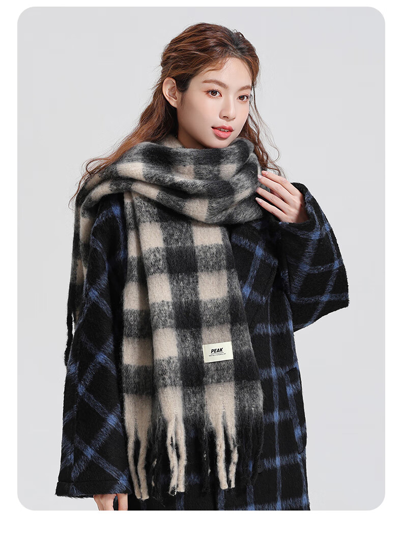 Peak winter large scarf warm and thickened Korean version versatile ins shawl plush scarf black