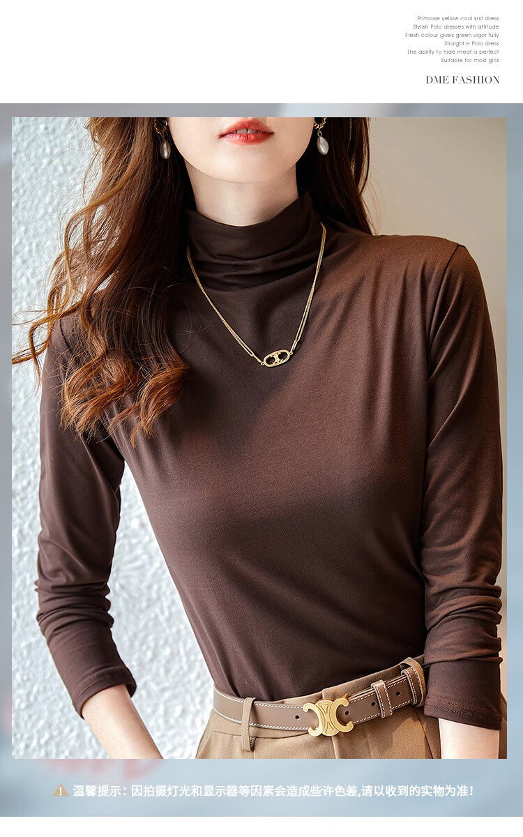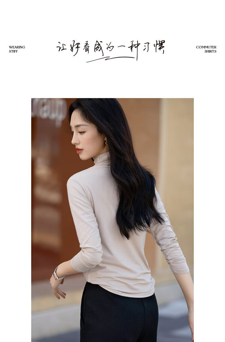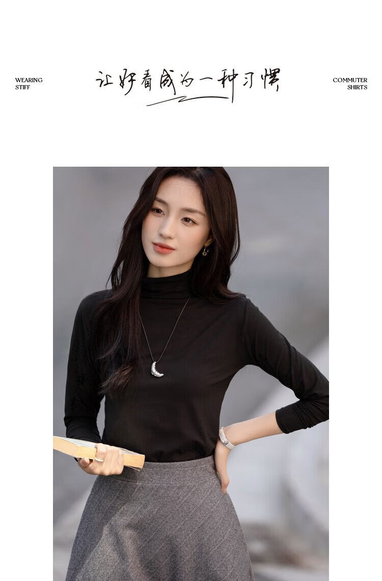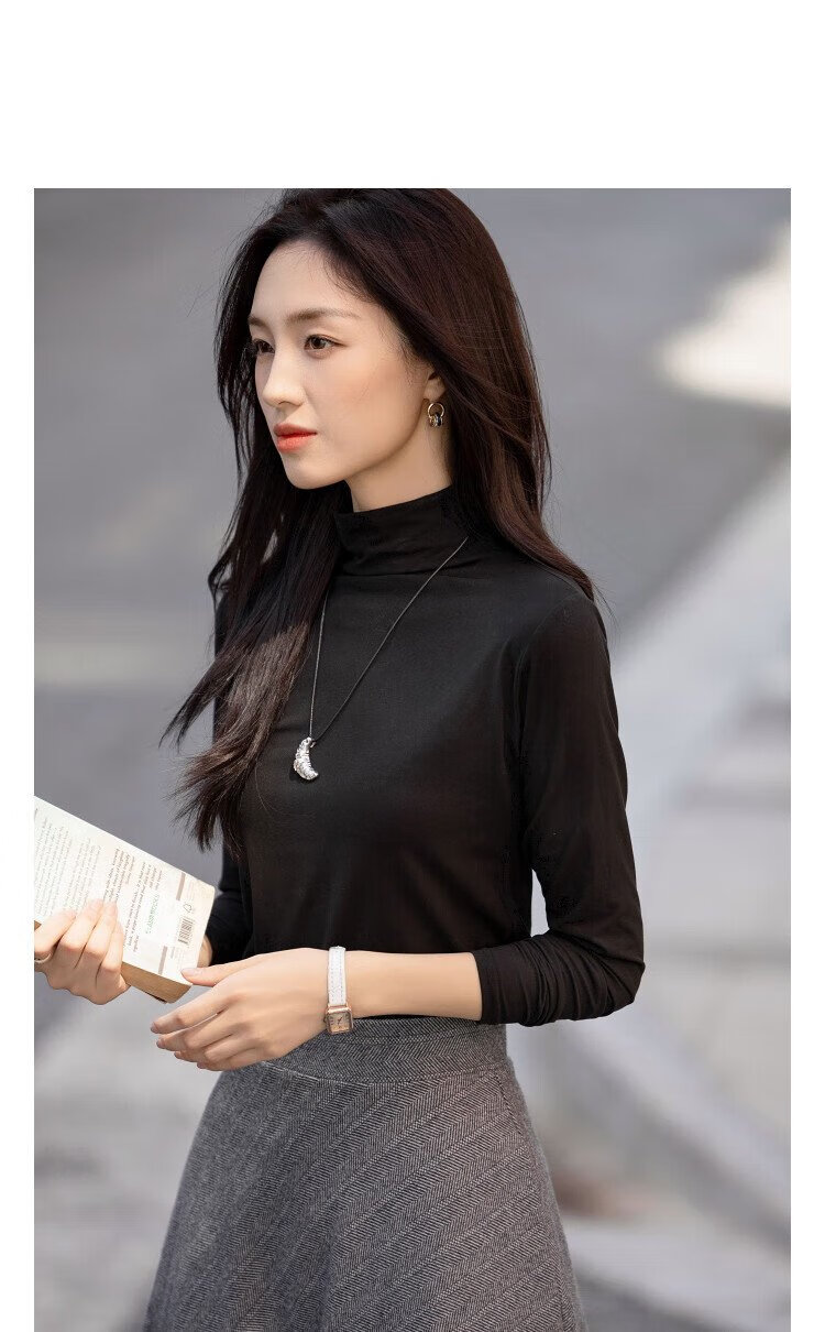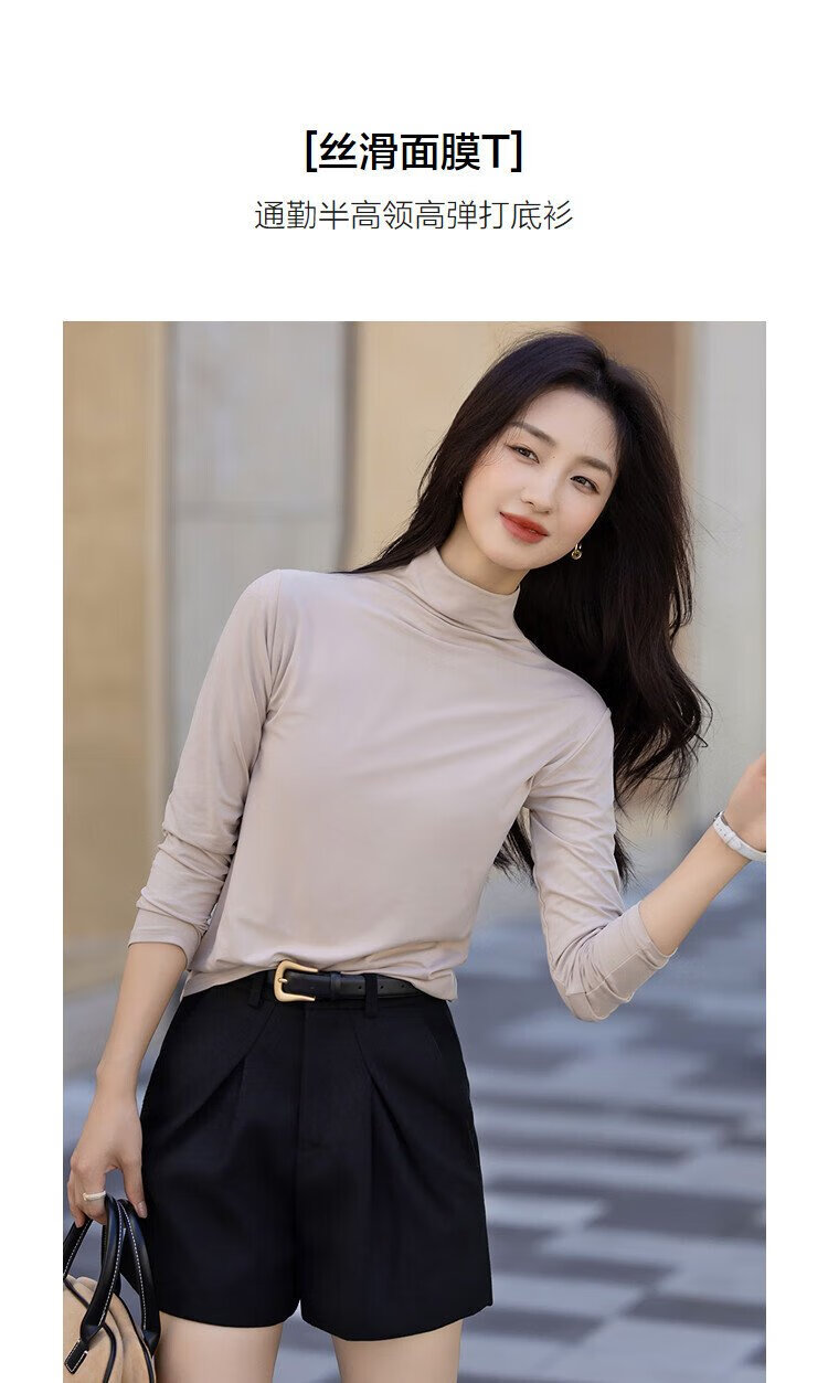 Demana Gentle Mask T Winter Commuting Half Turtle Collar Right Shoulder Bottoming Shirt Highly Elastic Fat-Inclusive Women's T-Shirt