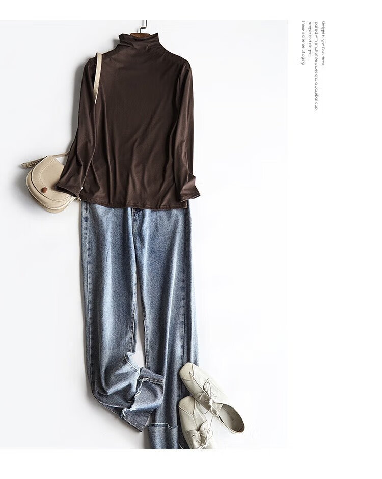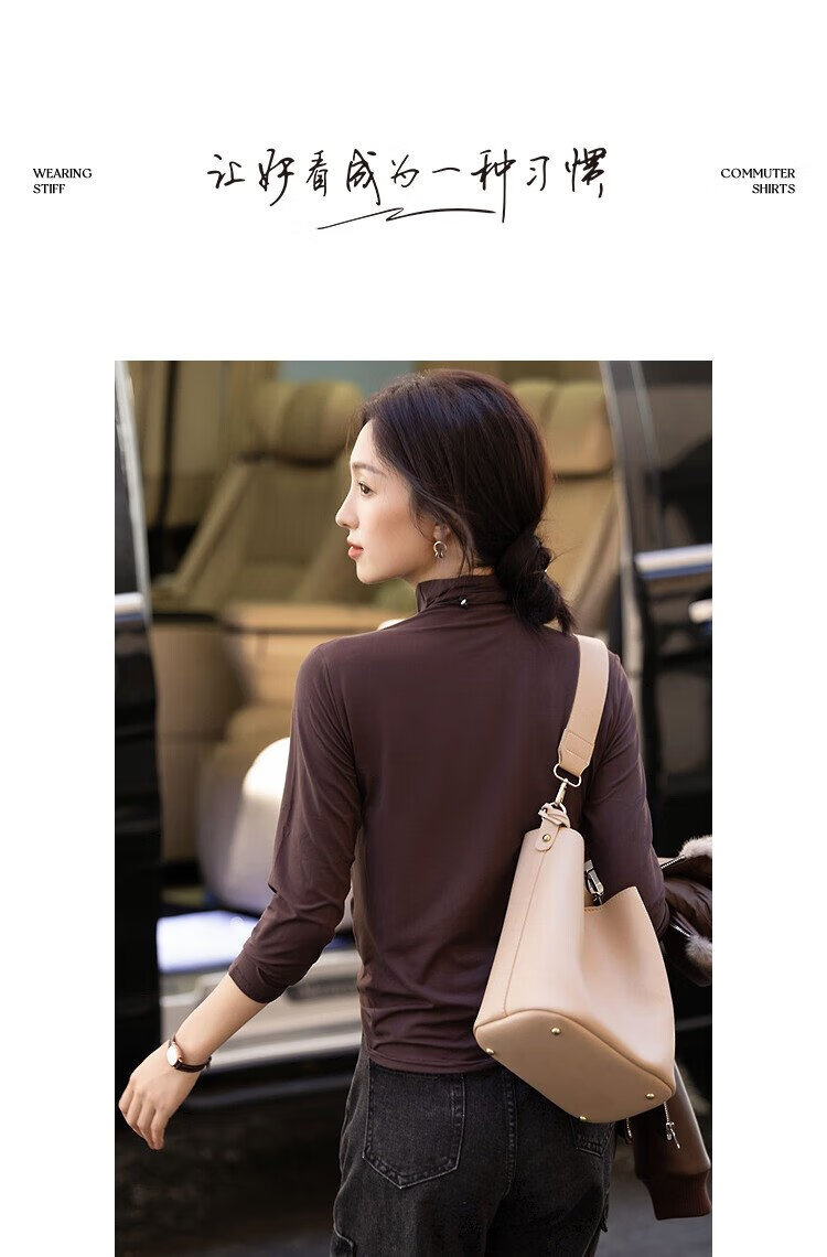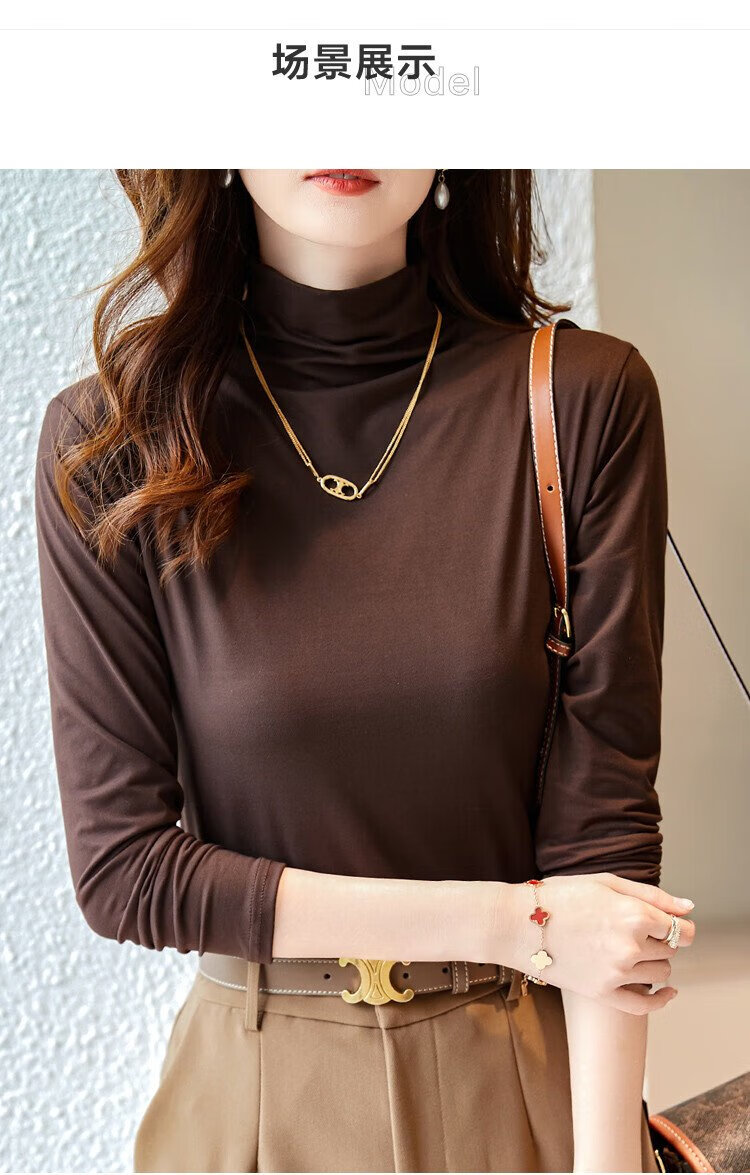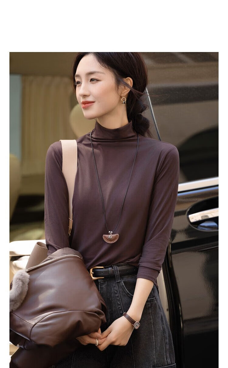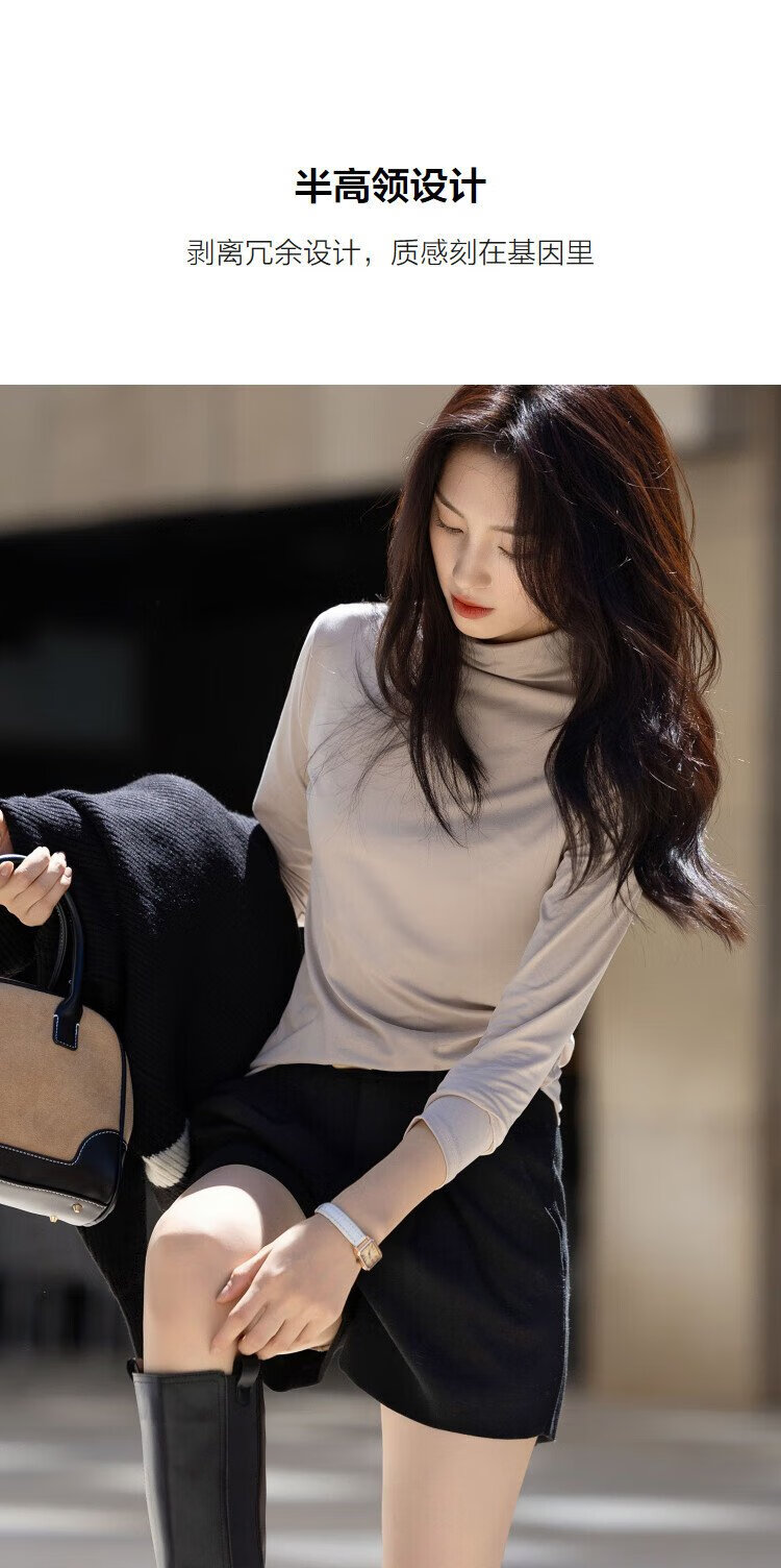 Demana Gentle Mask T Winter Commuting Half Turtle Collar Right Shoulder Bottoming Shirt Highly Elastic Fat-Inclusive Women's T-Shirt