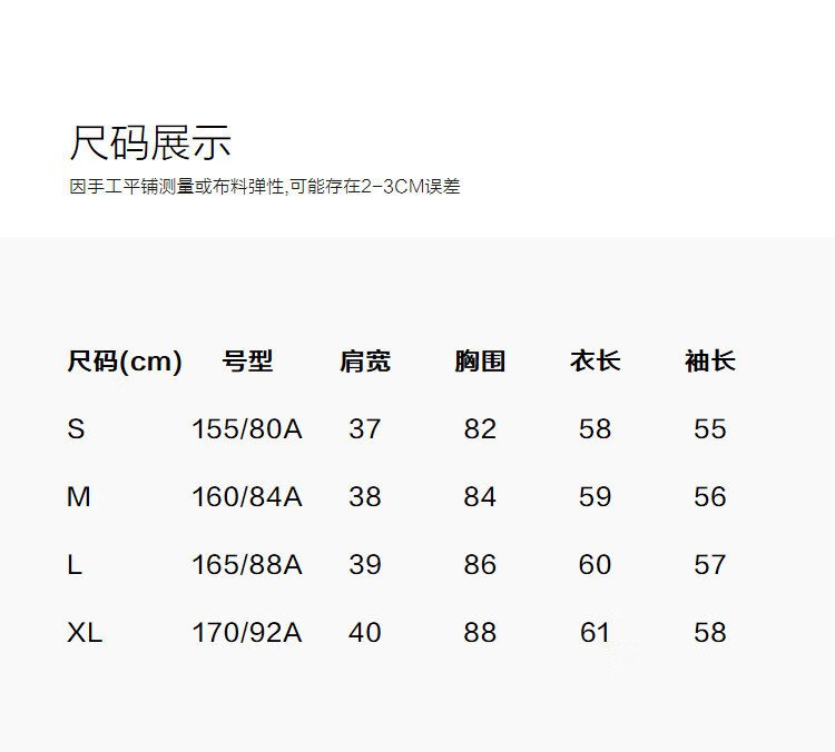 China (cm) 160-165/84-86 165-170 / 88-90 167-172 / 92-96 168-173 / 98-102 170-176 / 106-110