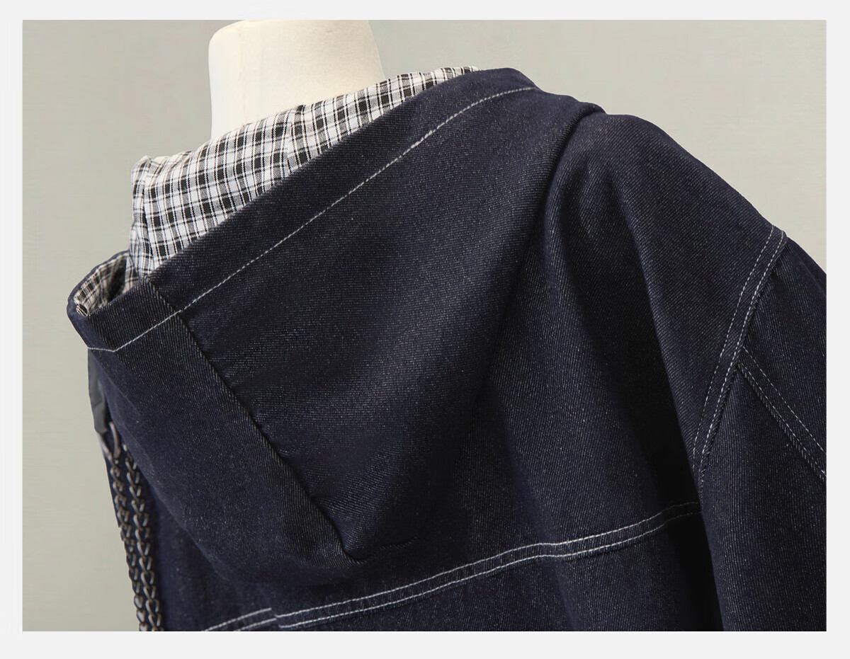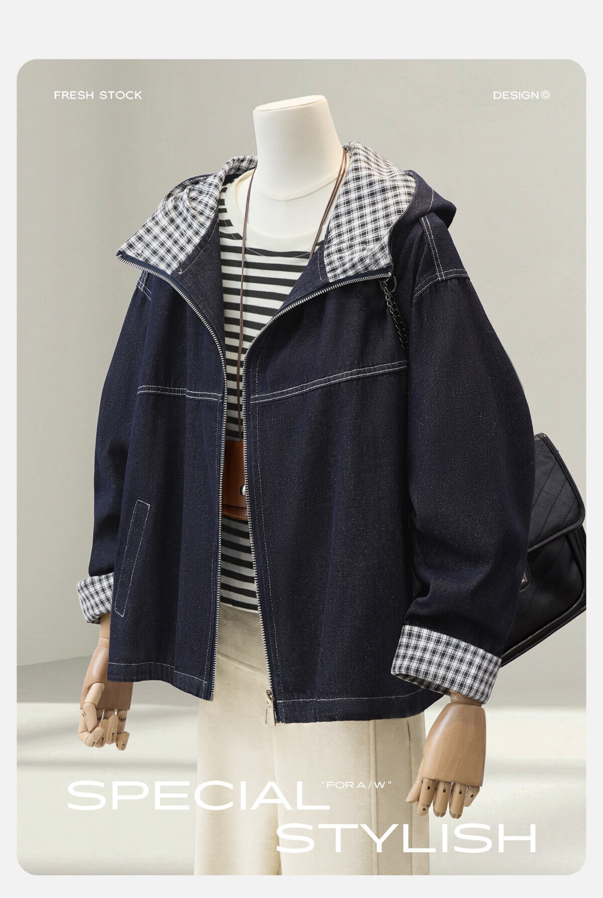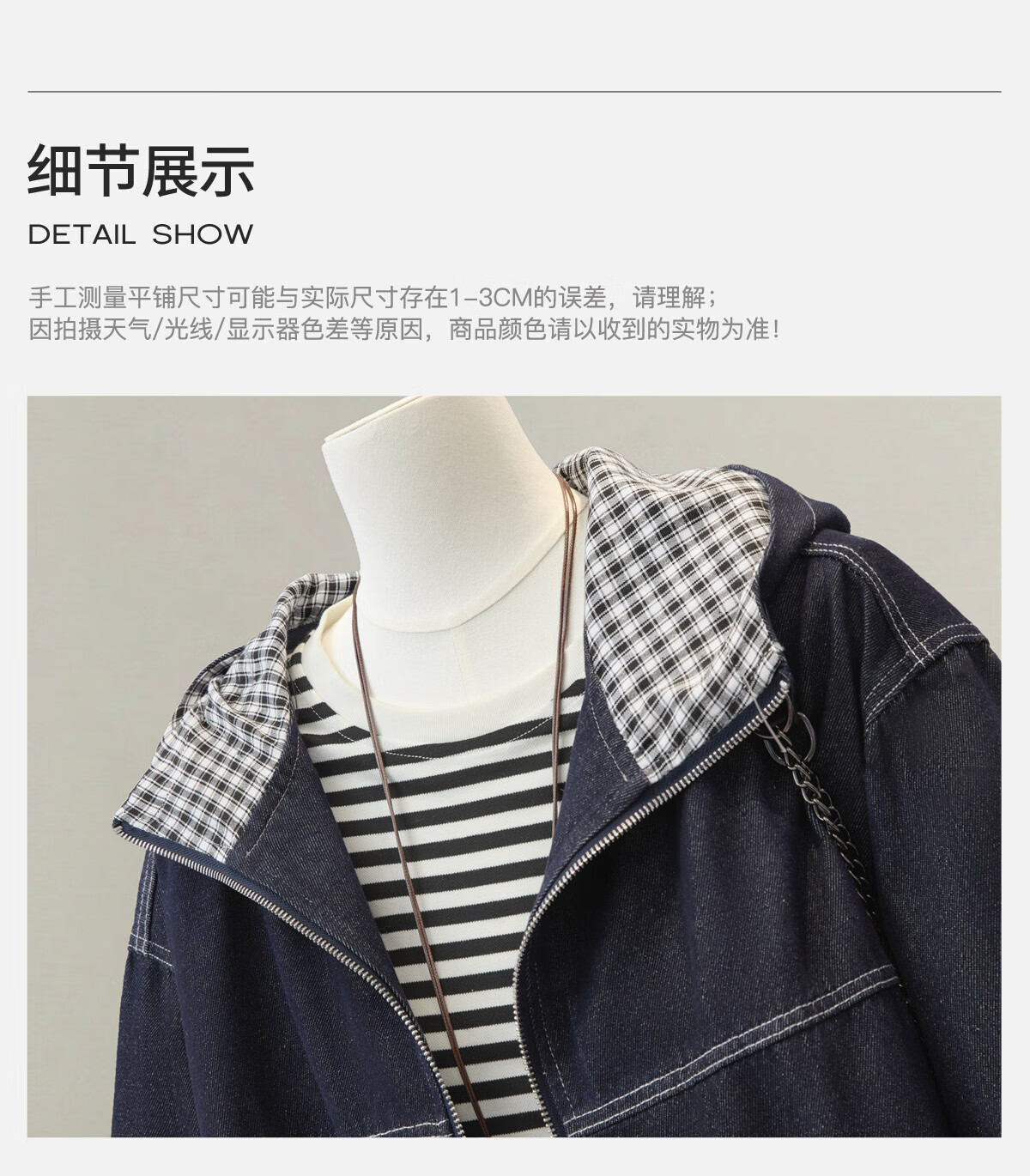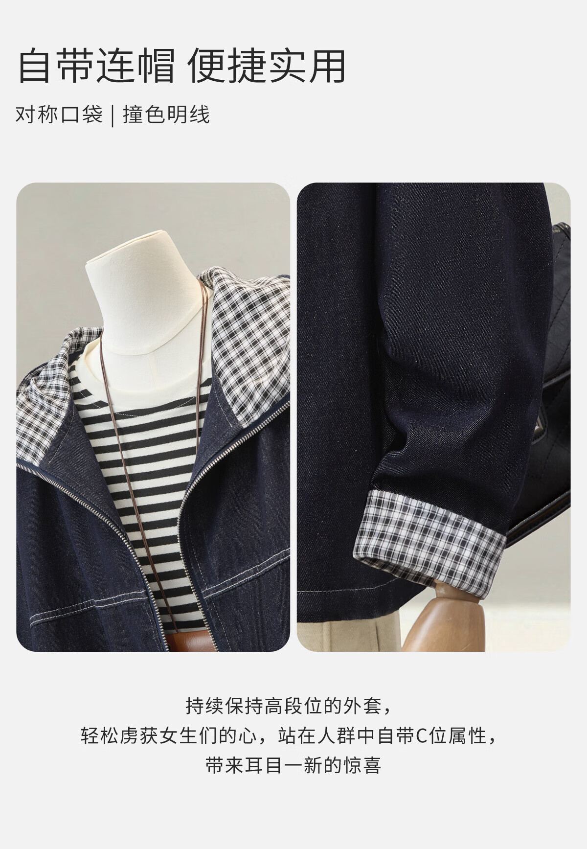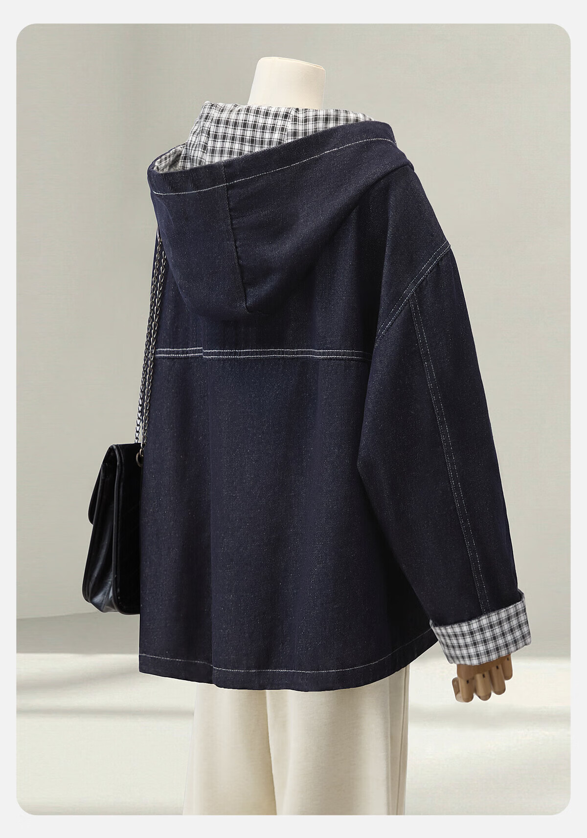 Sibaishe hooded long-sleeved denim jacket for women 2025 autumn new style fashionable simple washed loose top
