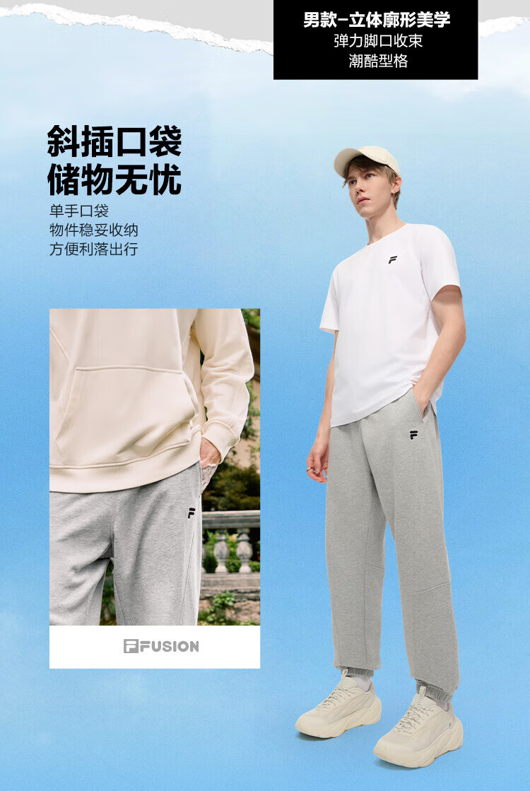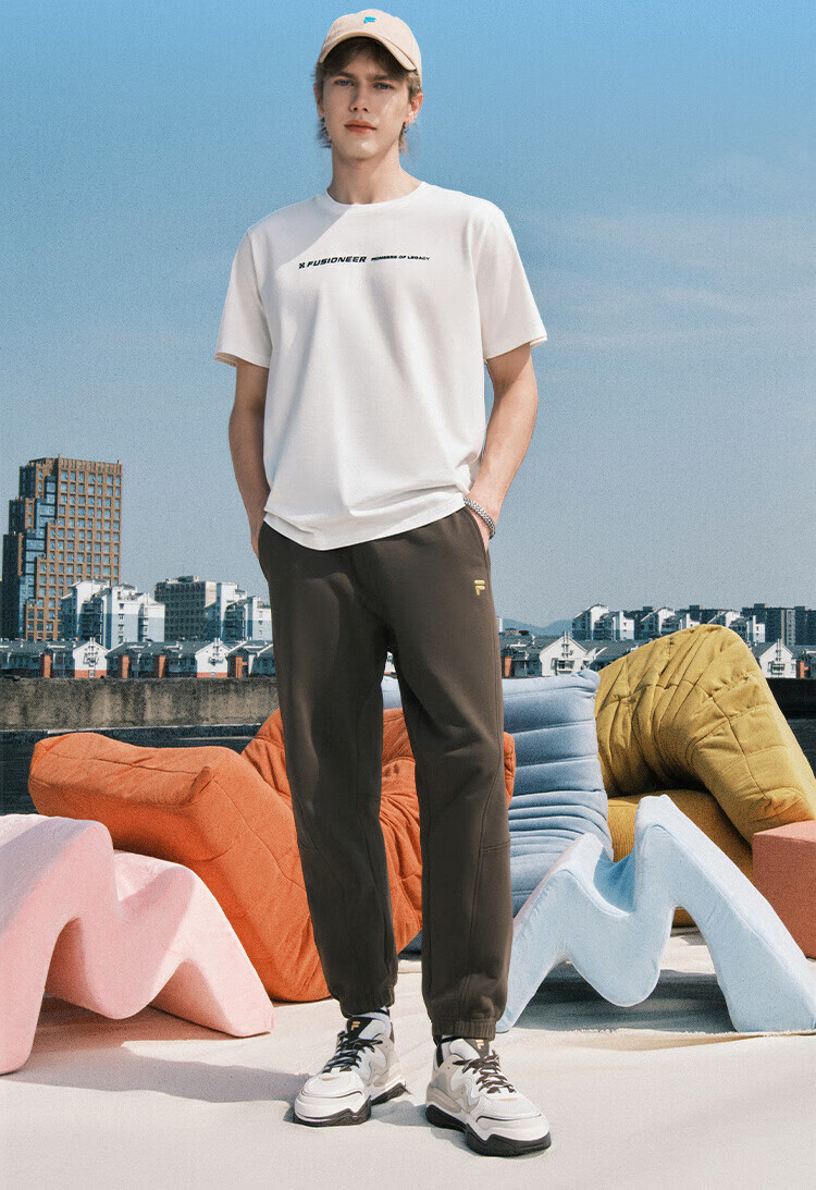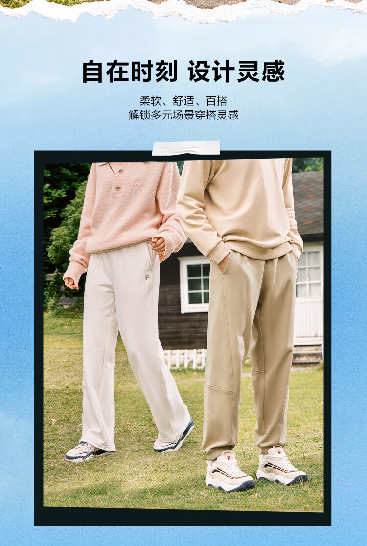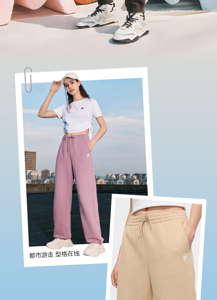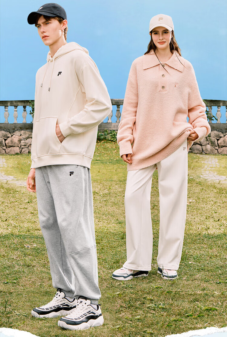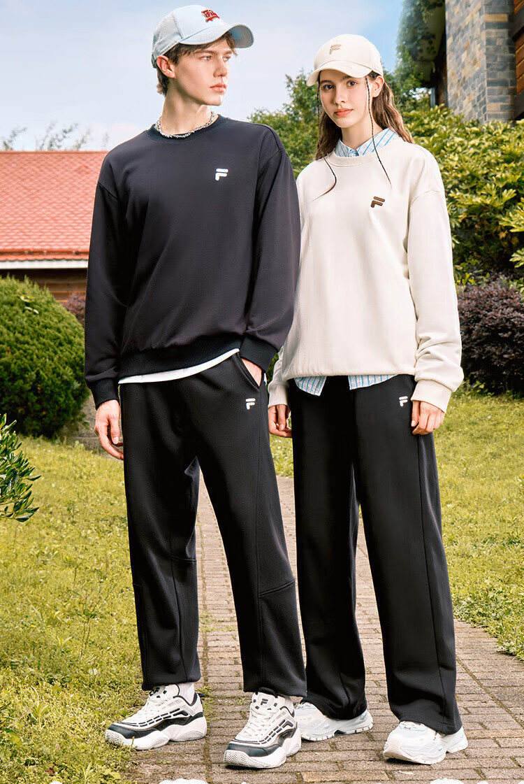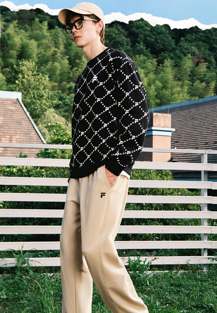 FILA FUSION official trendy brand knitted velvet trousers for men 2025 winter casual loose cuffed trousers