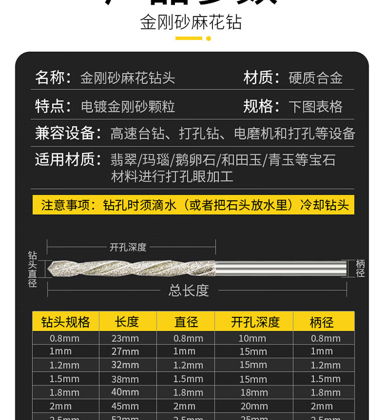 Hasdick emery twist drill bit jade jade glass beeswax punching needle grinding ceramic drill bit 1.5mm 10 pieces