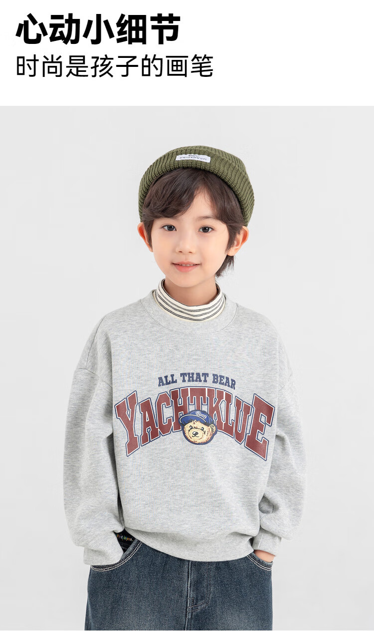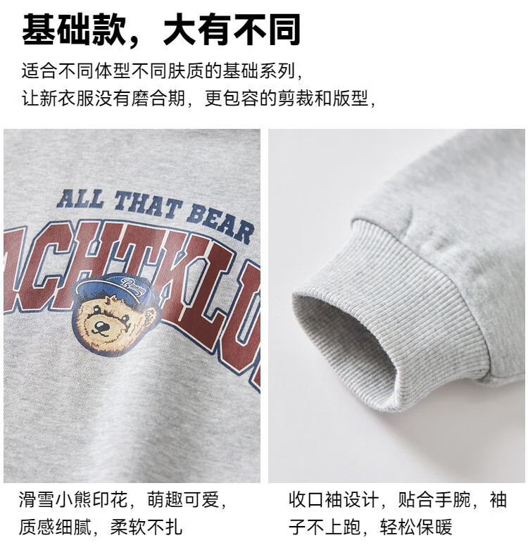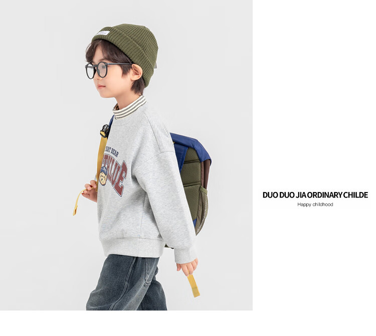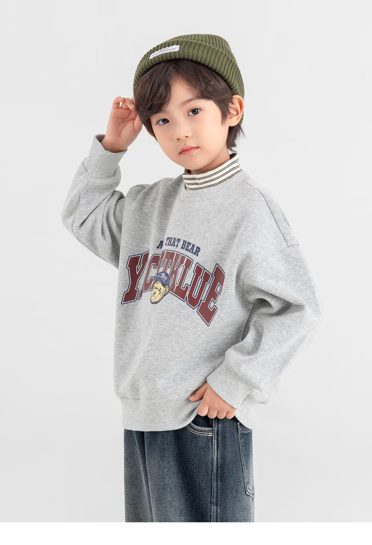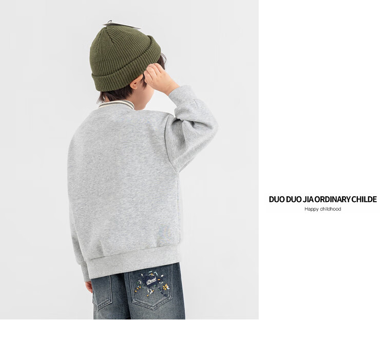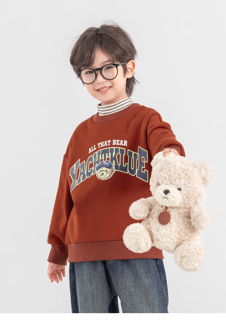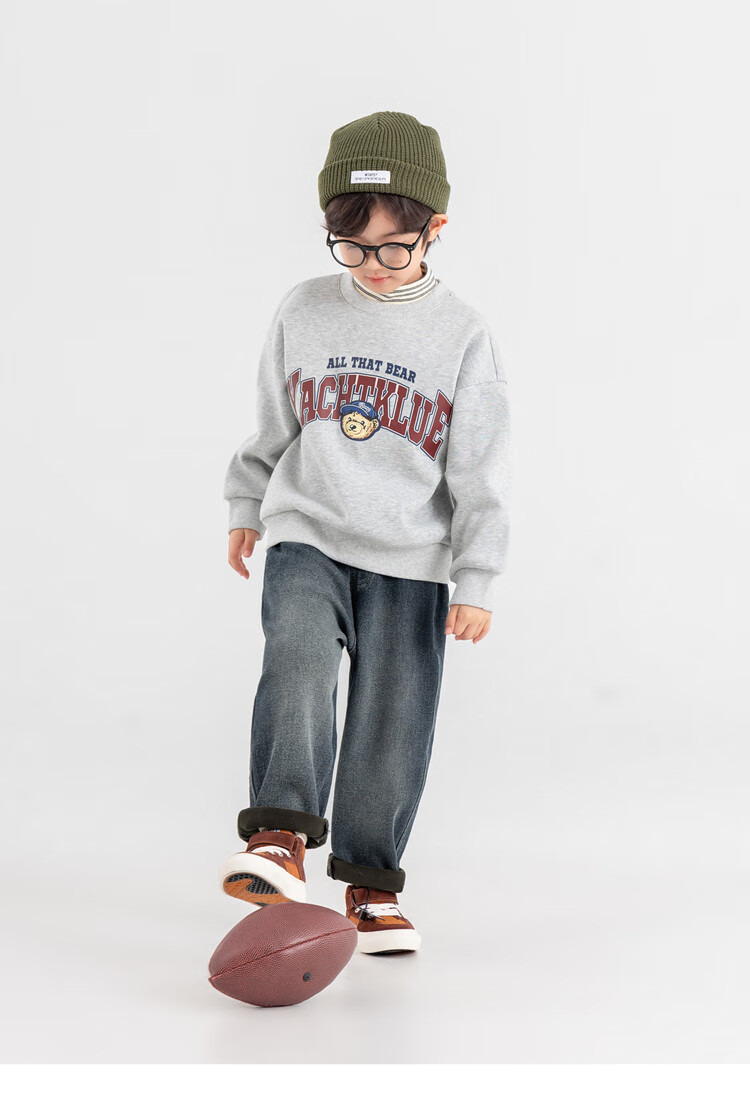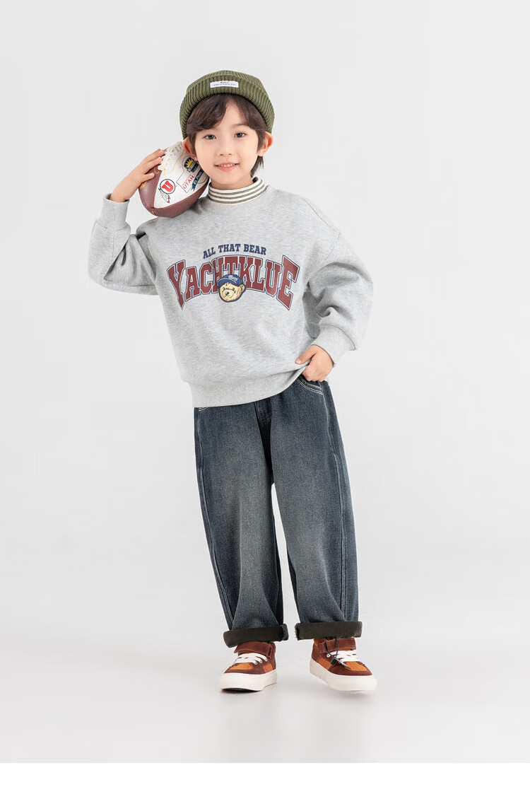 Duojia Bear Print Fake Two-piece Boys' Sweaters Winter Warm and Velvet Bottoming Children's Casual Sports Tops Trendy