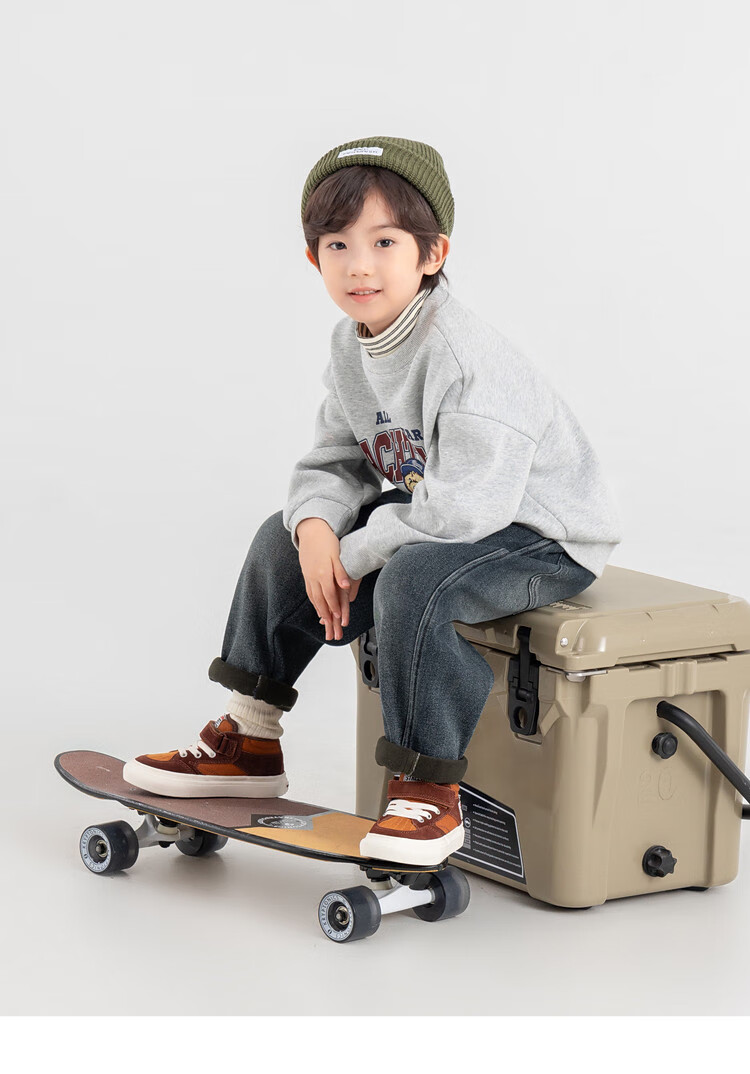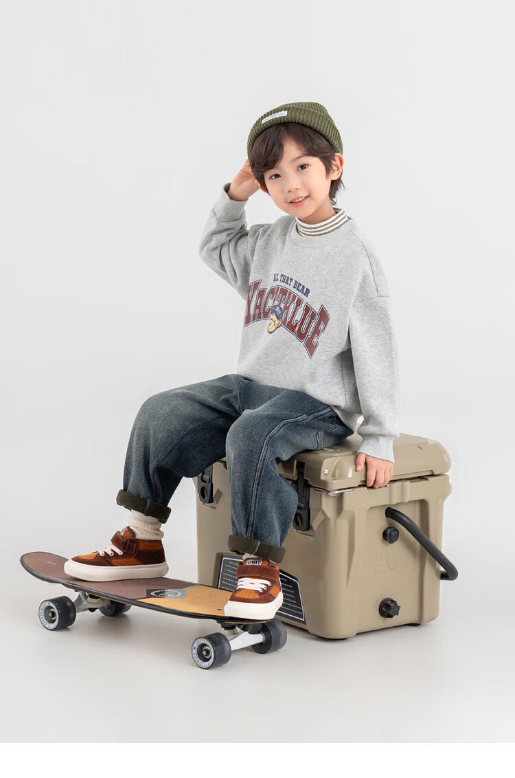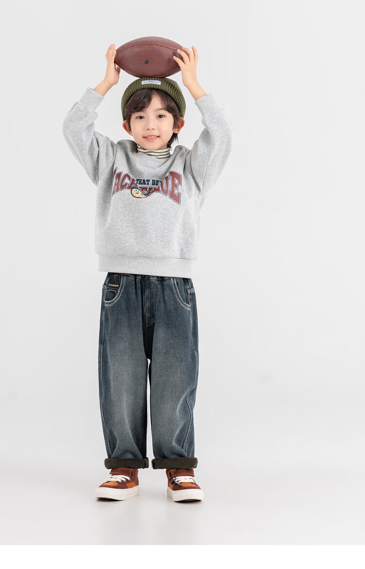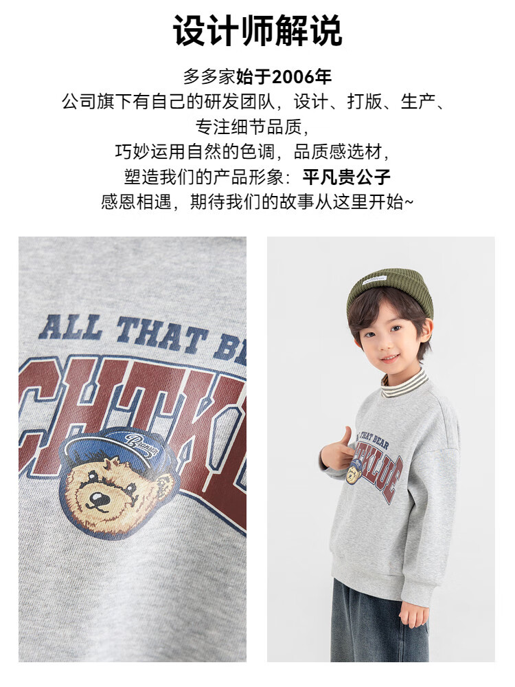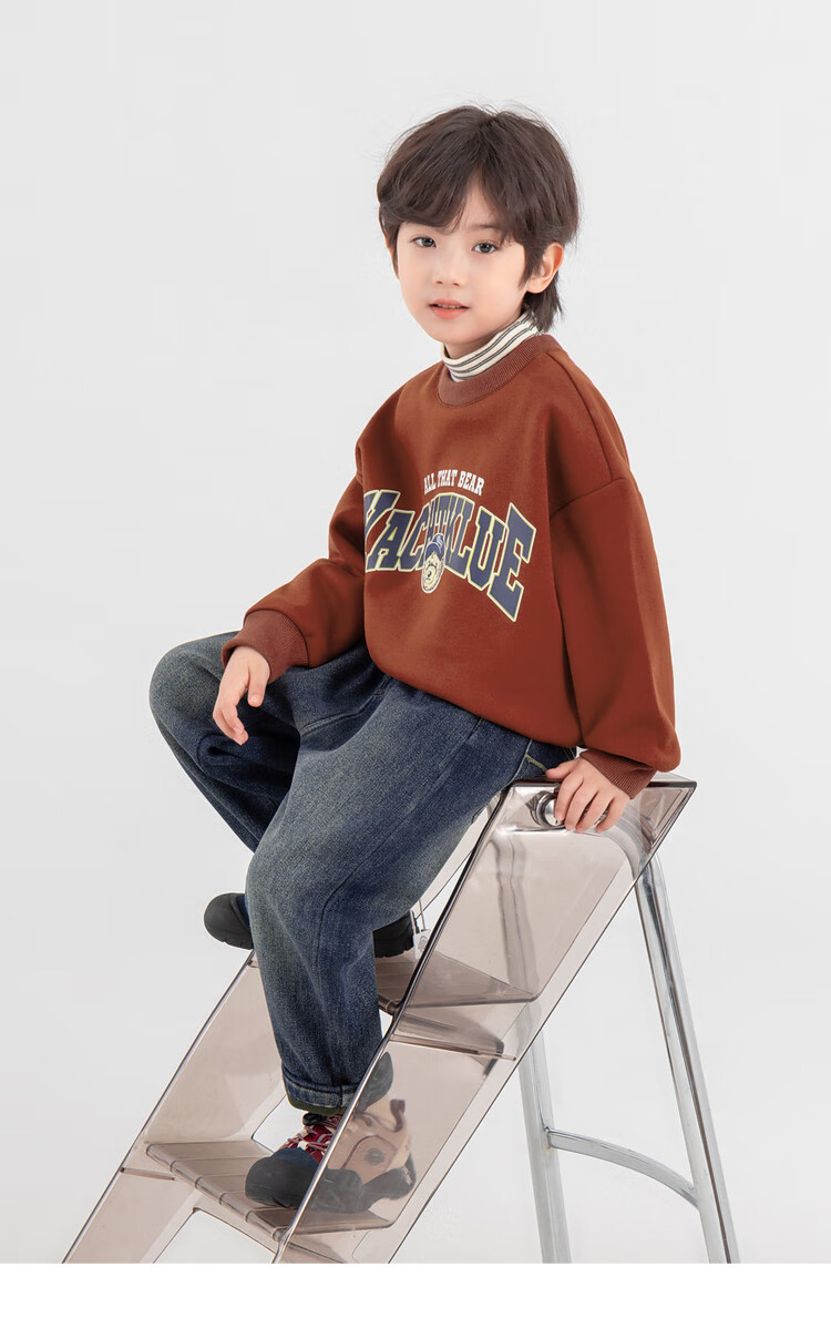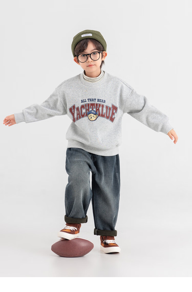 Duojia Bear Print Fake Two-piece Boys' Sweaters Winter Warm and Velvet Bottoming Children's Casual Sports Tops Trendy