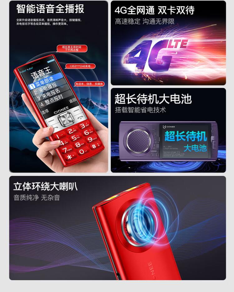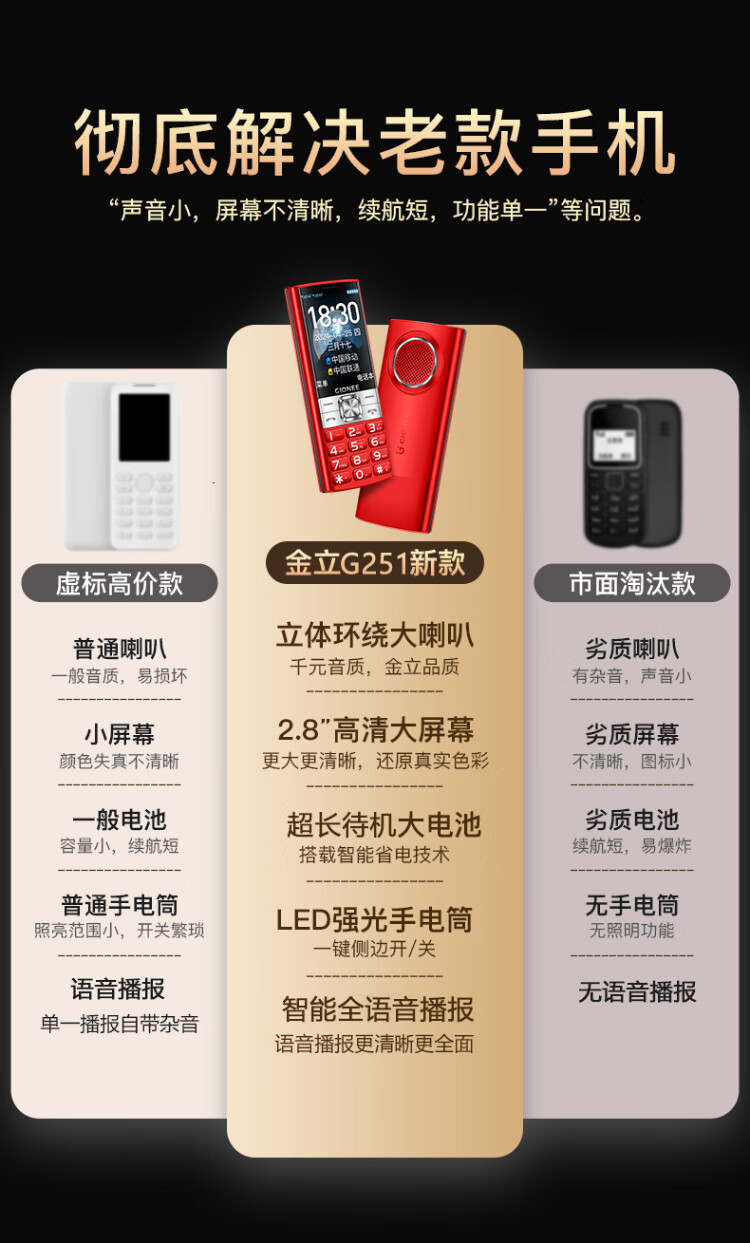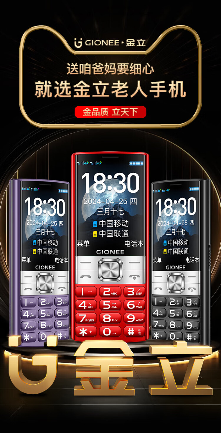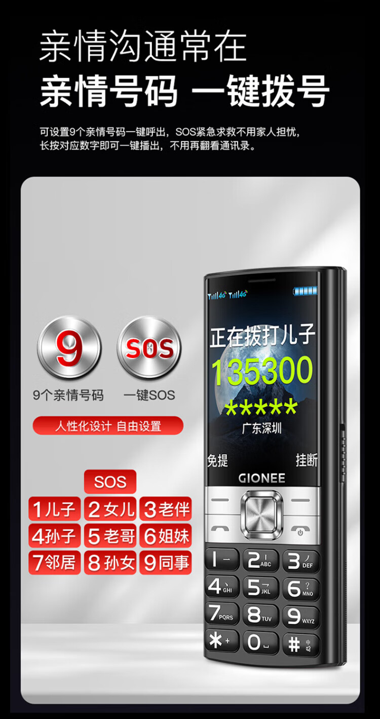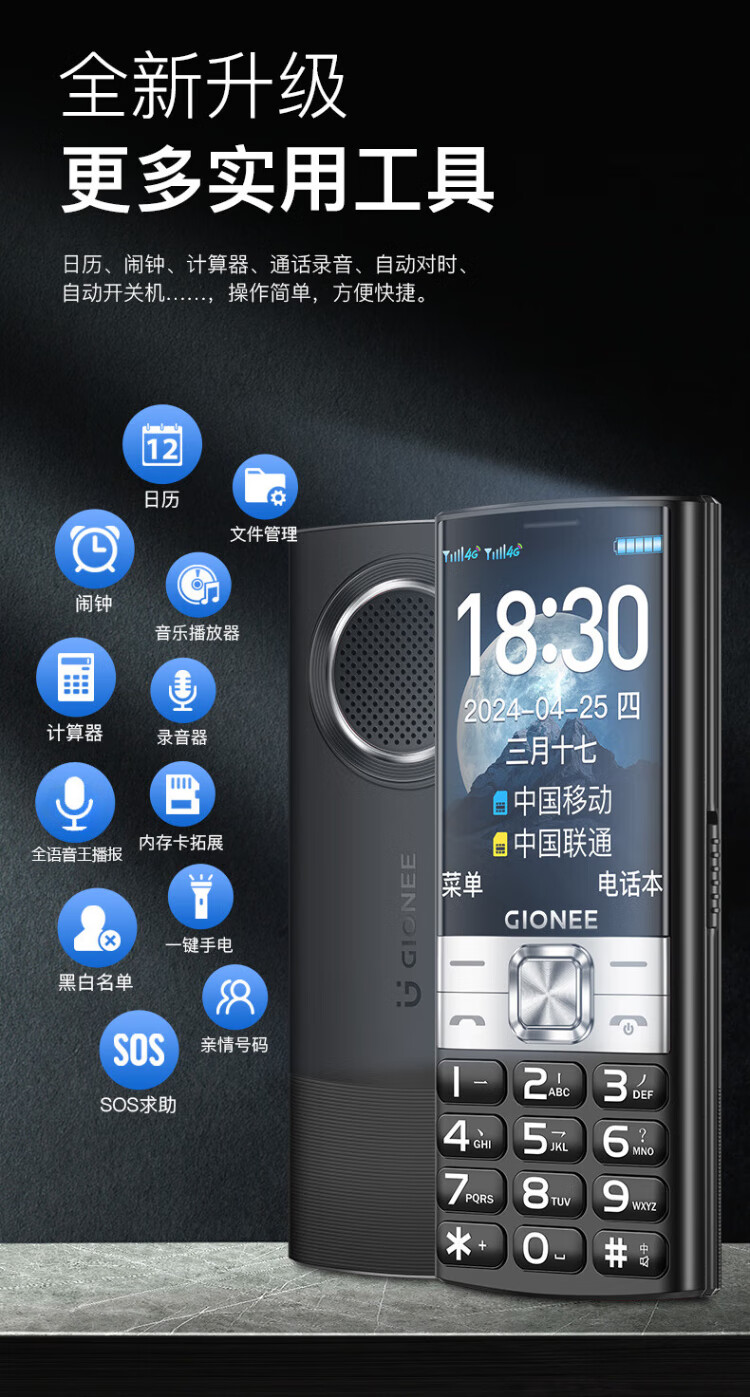 Gionee mobile phone for the elderly with super long standby 4G full network communication for the elderly with large characters and loud sounds special button function machine for students and the elderly G251 black