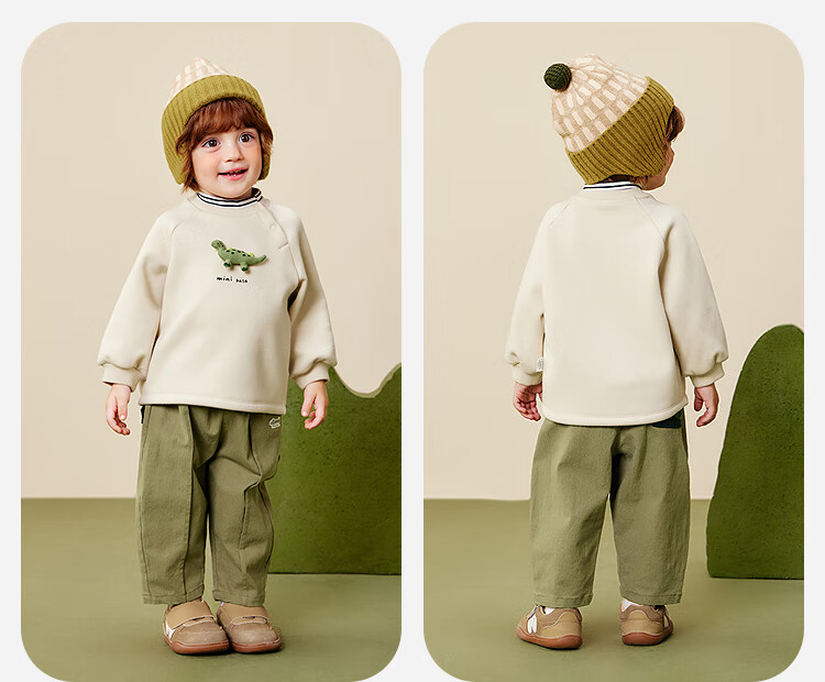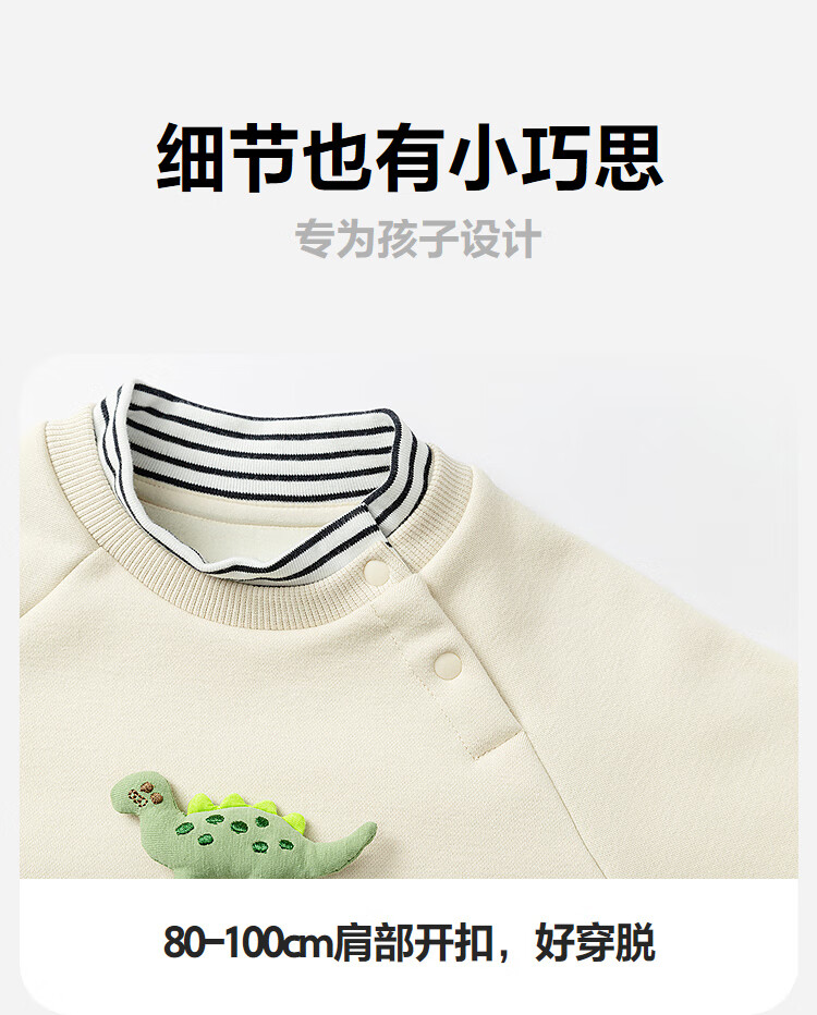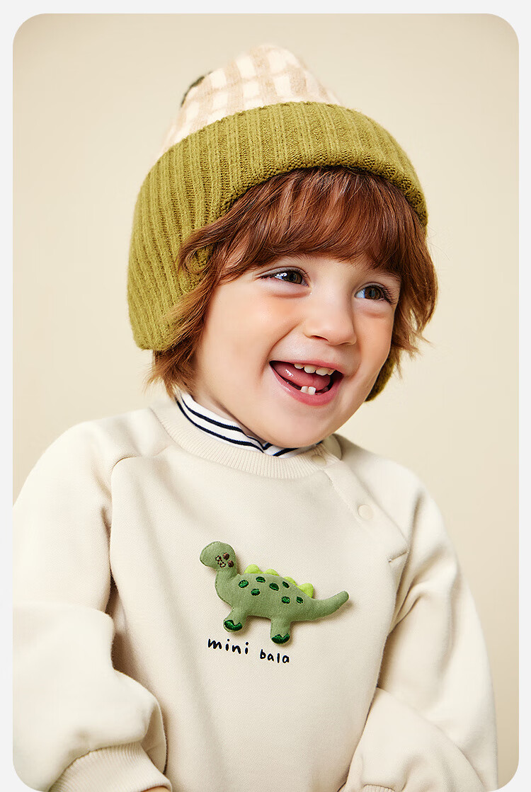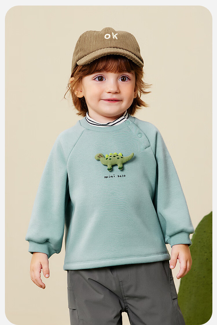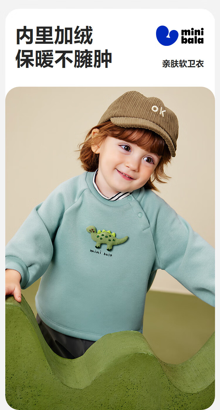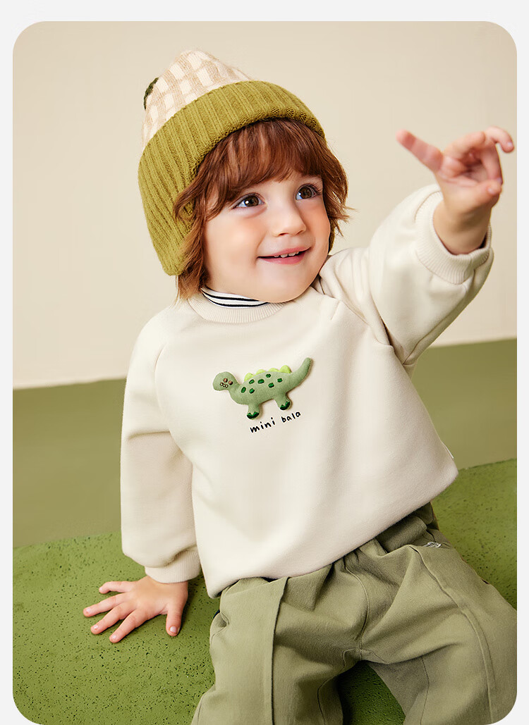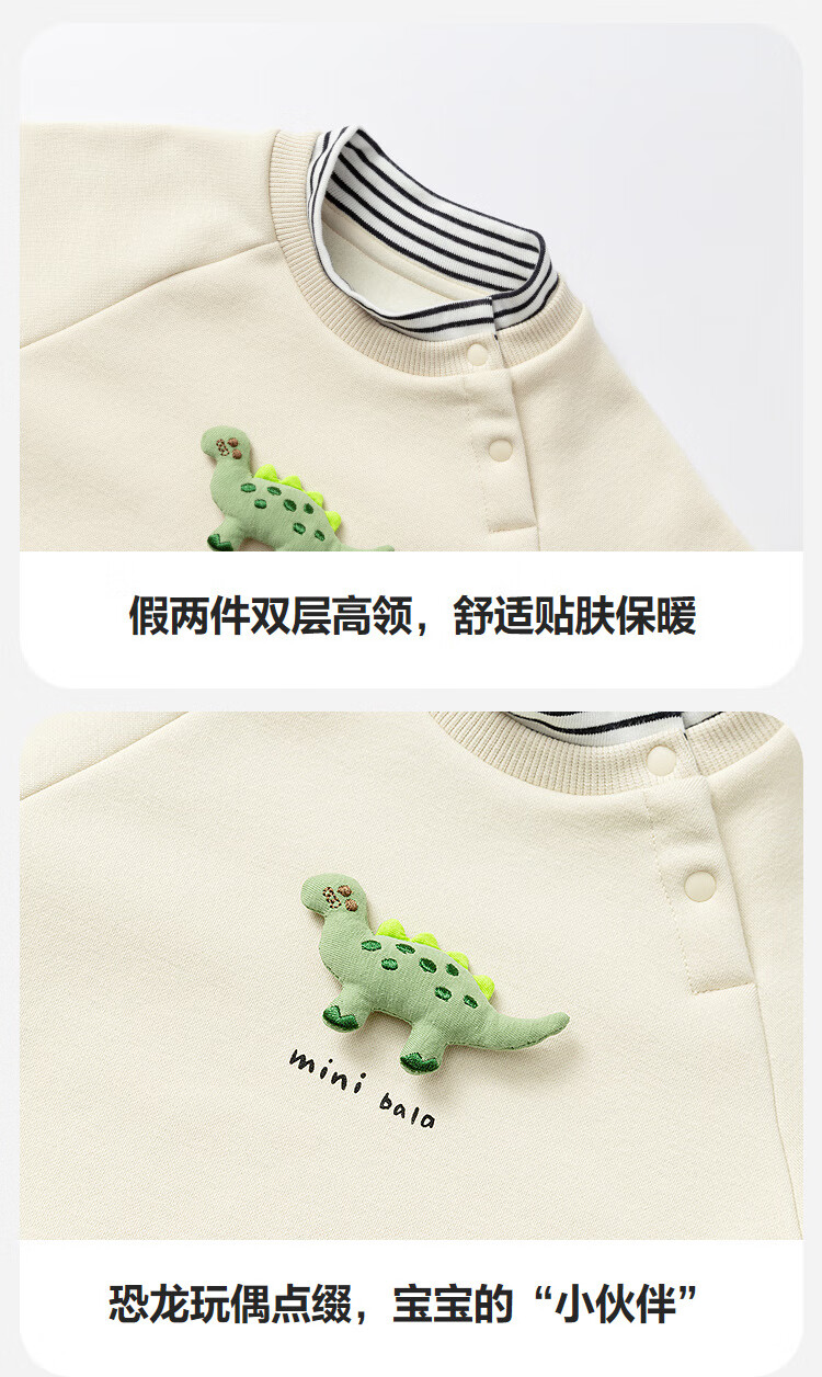 Minibala baby boy sweatshirt 2025 winter dinosaur outdoor fake two-piece turtleneck warm top