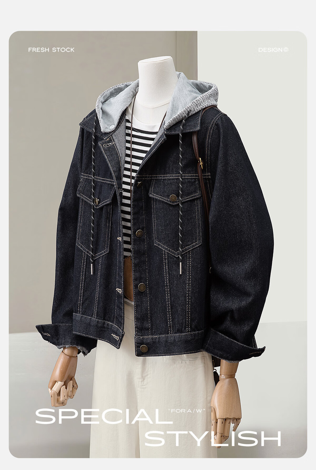 Sibaishe fashionable long-sleeved washed denim jacket for women 2025 autumn new style simple short casual top