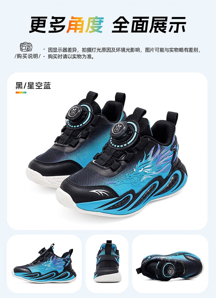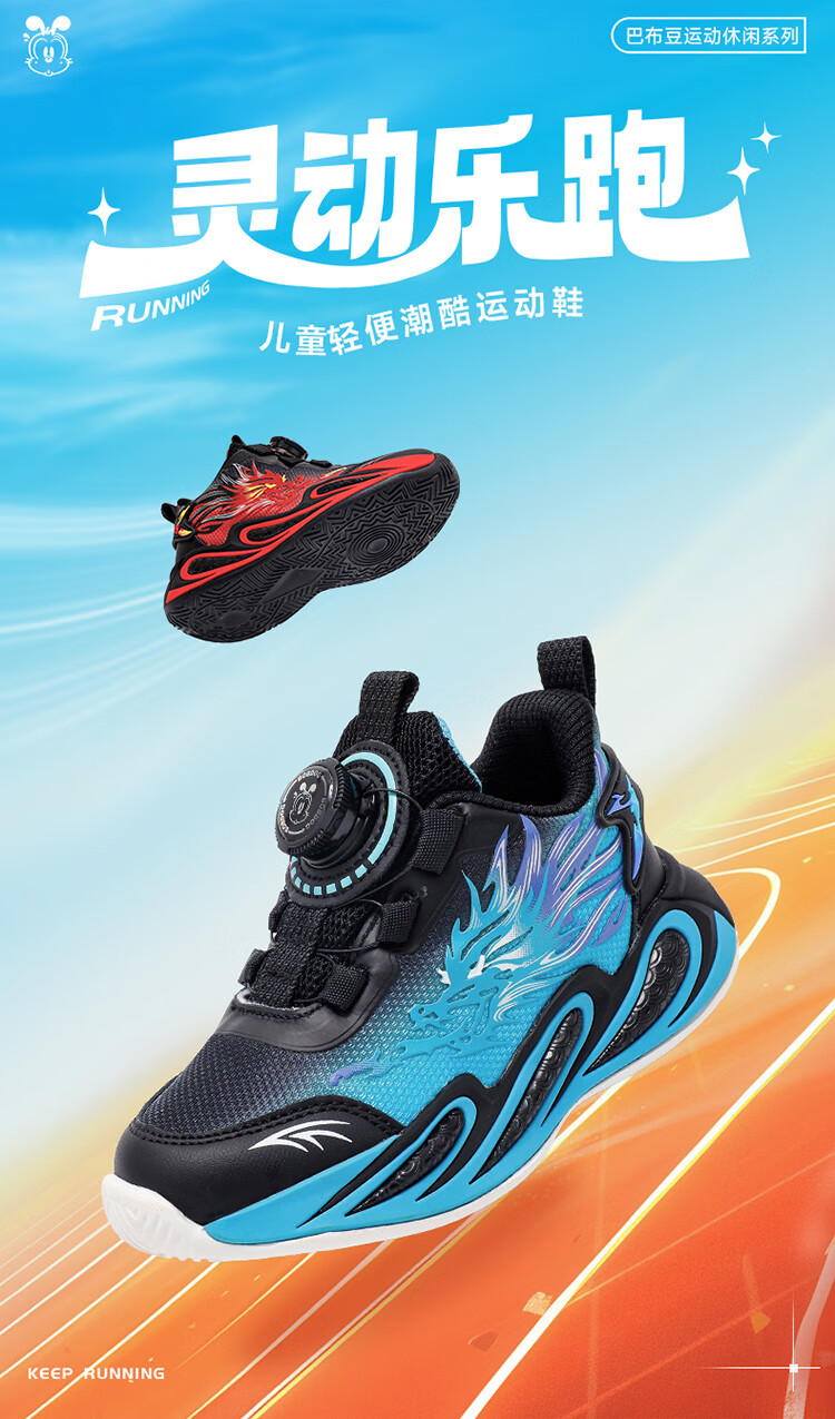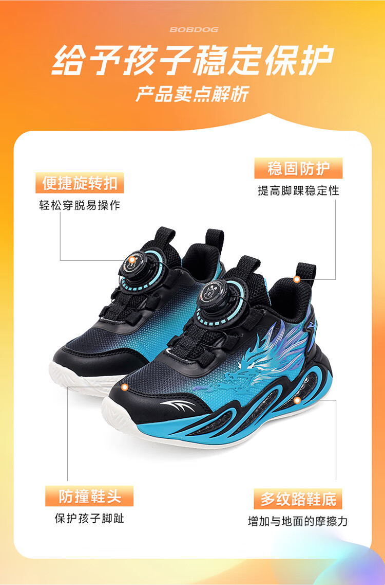 Babudou children's shoes boys' comfortable and warm running shoes winter velvet children's sports shoes 106555095 black/starry sky blue 32
