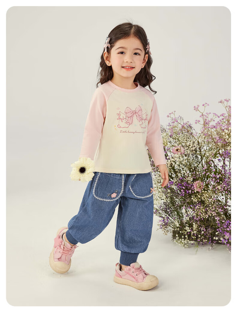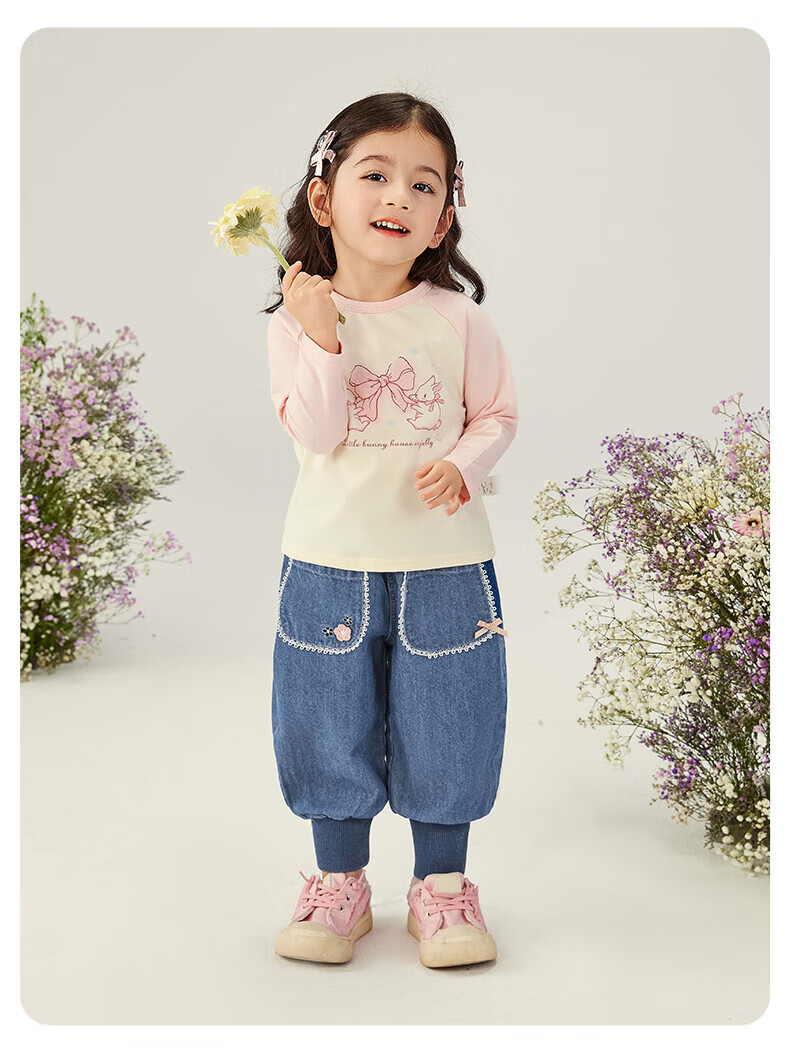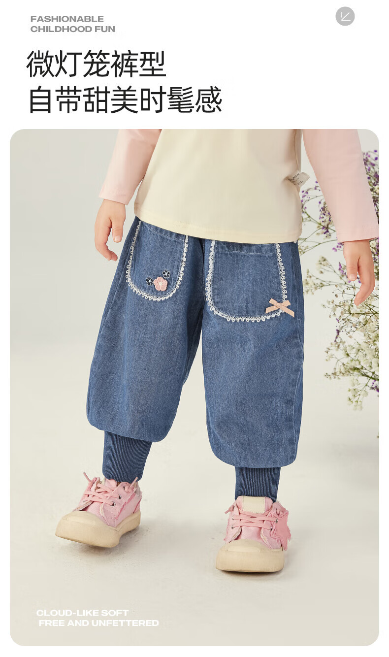 JELLYBABY girls sweet lantern soft jeans children's pants autumn trousers children's leggings spring and autumn