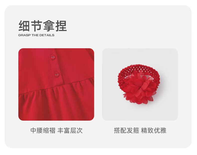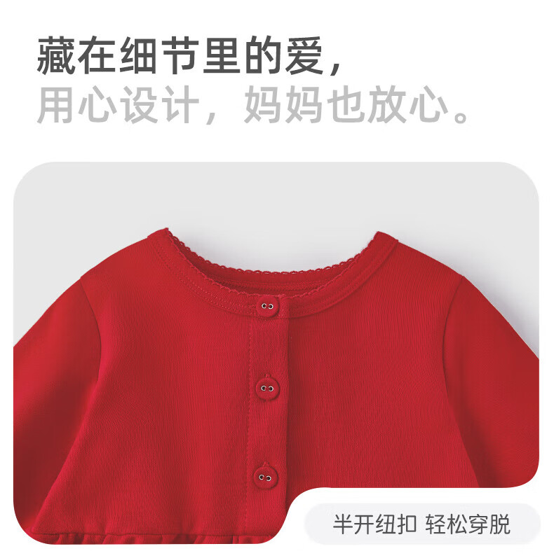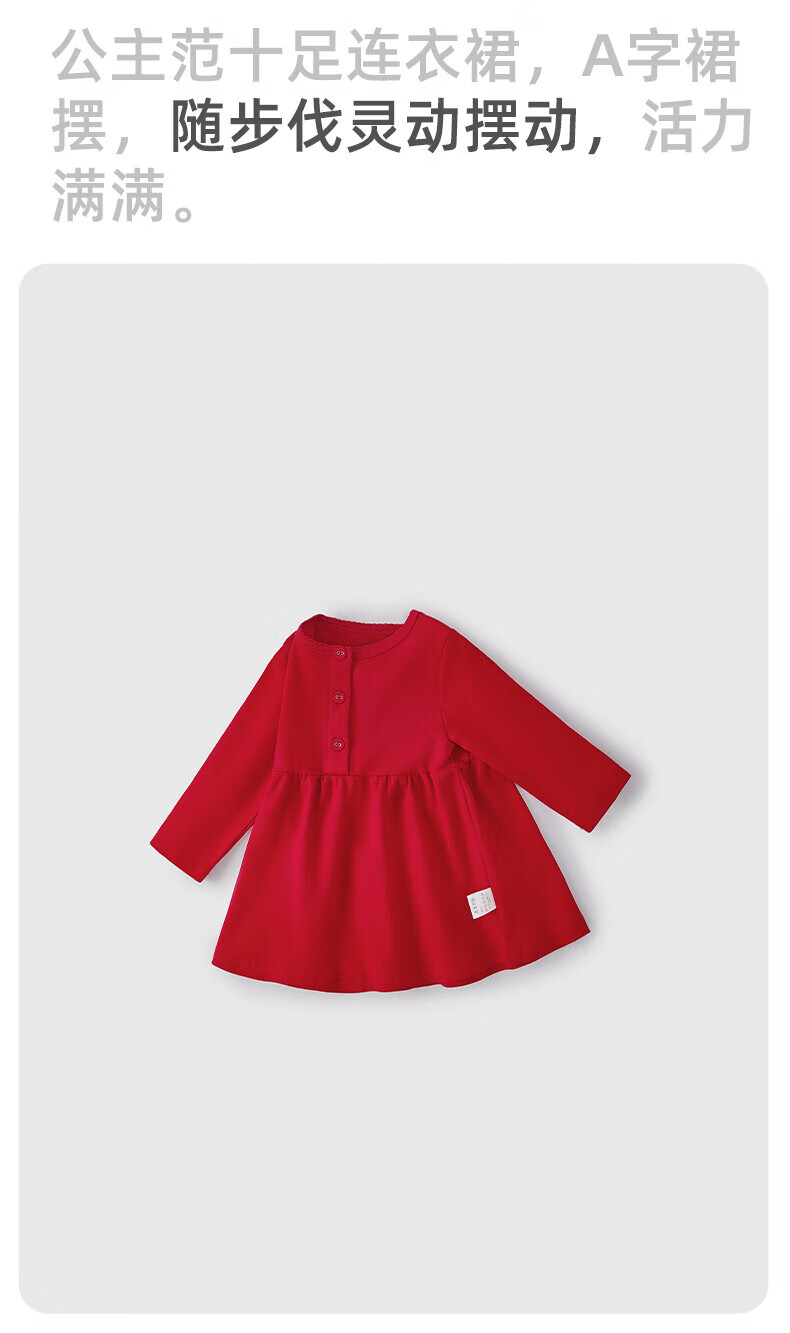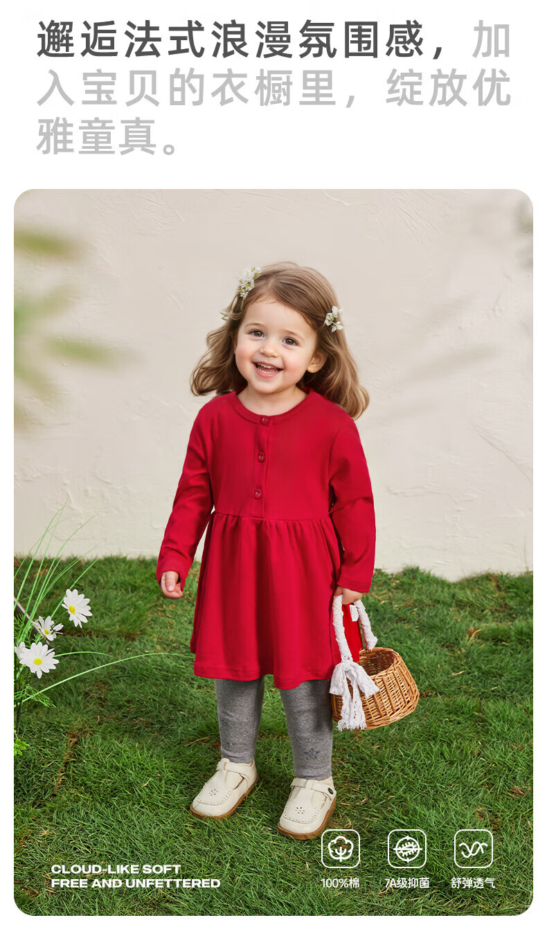 JELLYBABY 7A Antibacterial Baby Red Dress Spring and Autumn Girls Full Moon Dress Skirt One-Year-Old Baby Pure Cotton Autumn Fashion Style