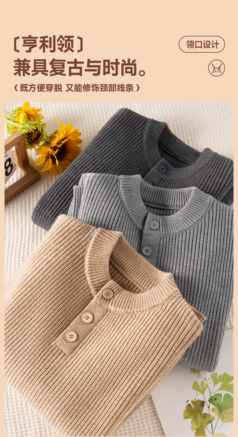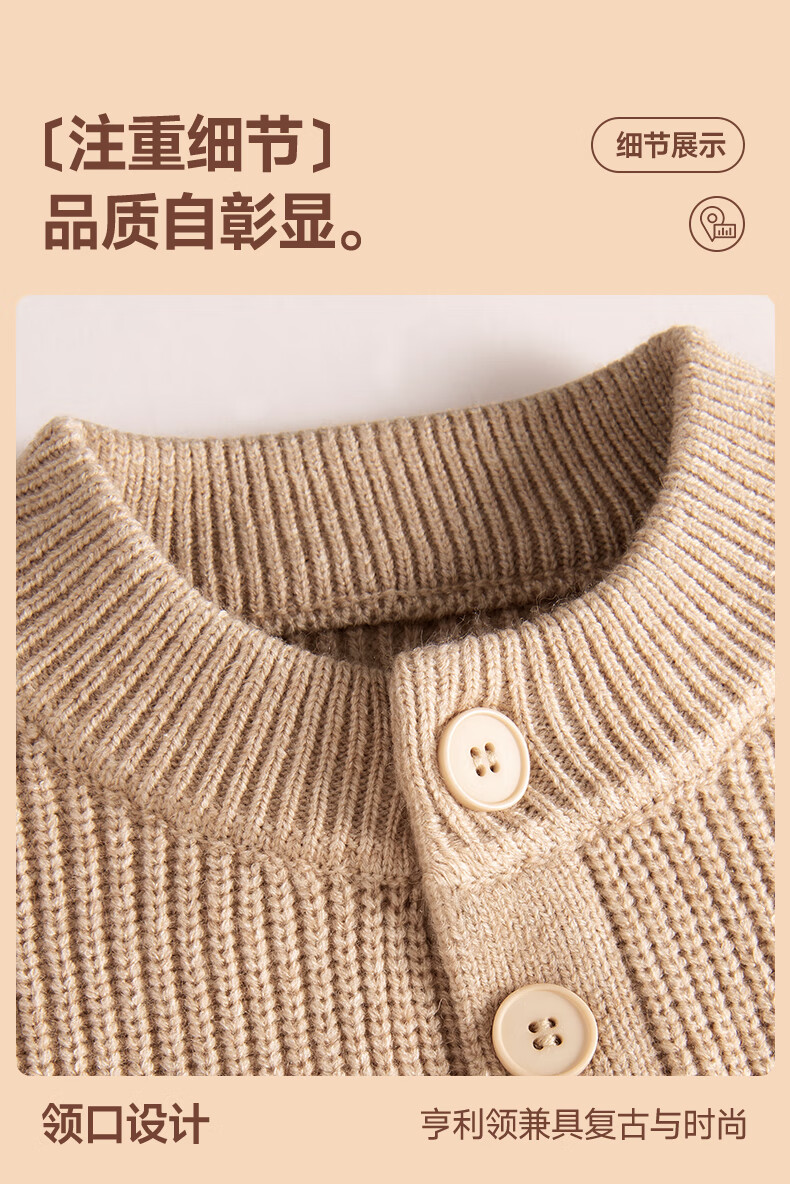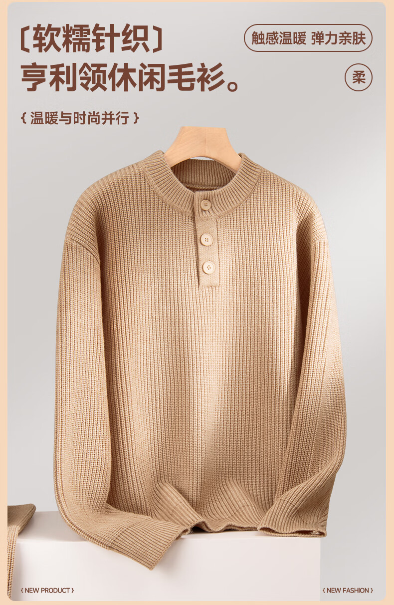 VANCL sweater men's winter retro Henry collar sweater men's large size versatile warm sweater apricot XL