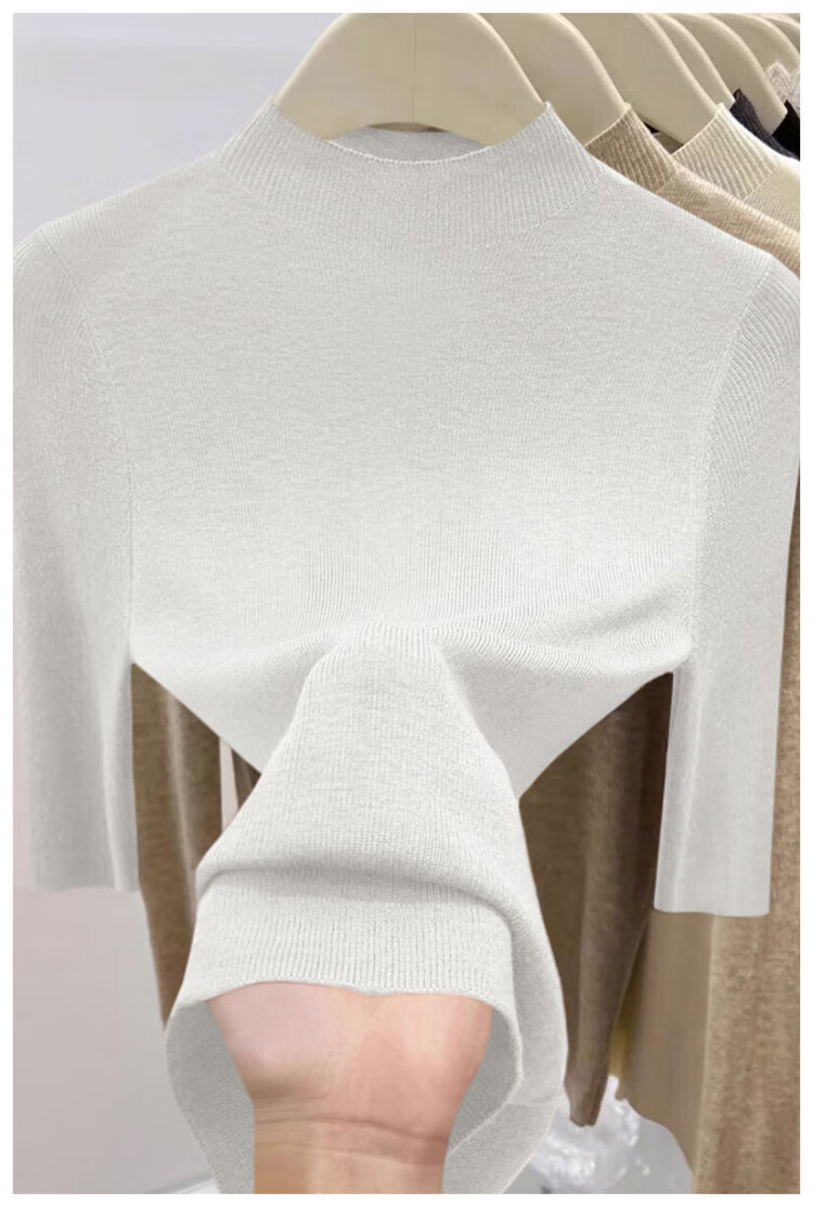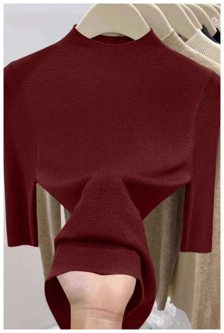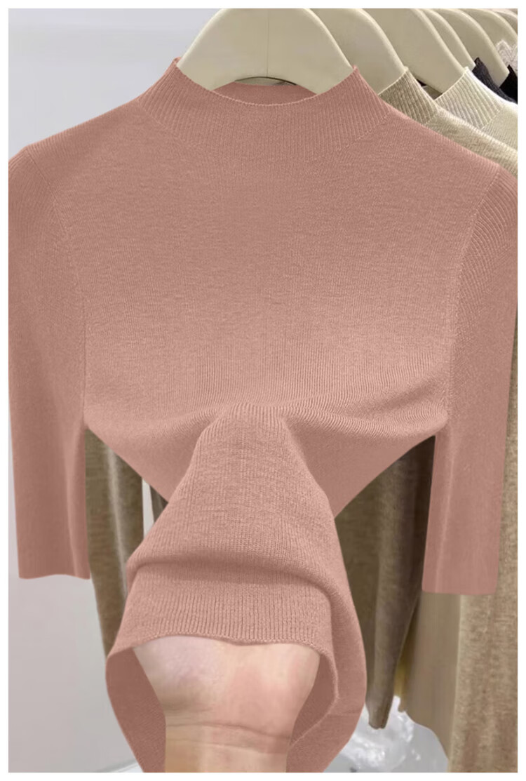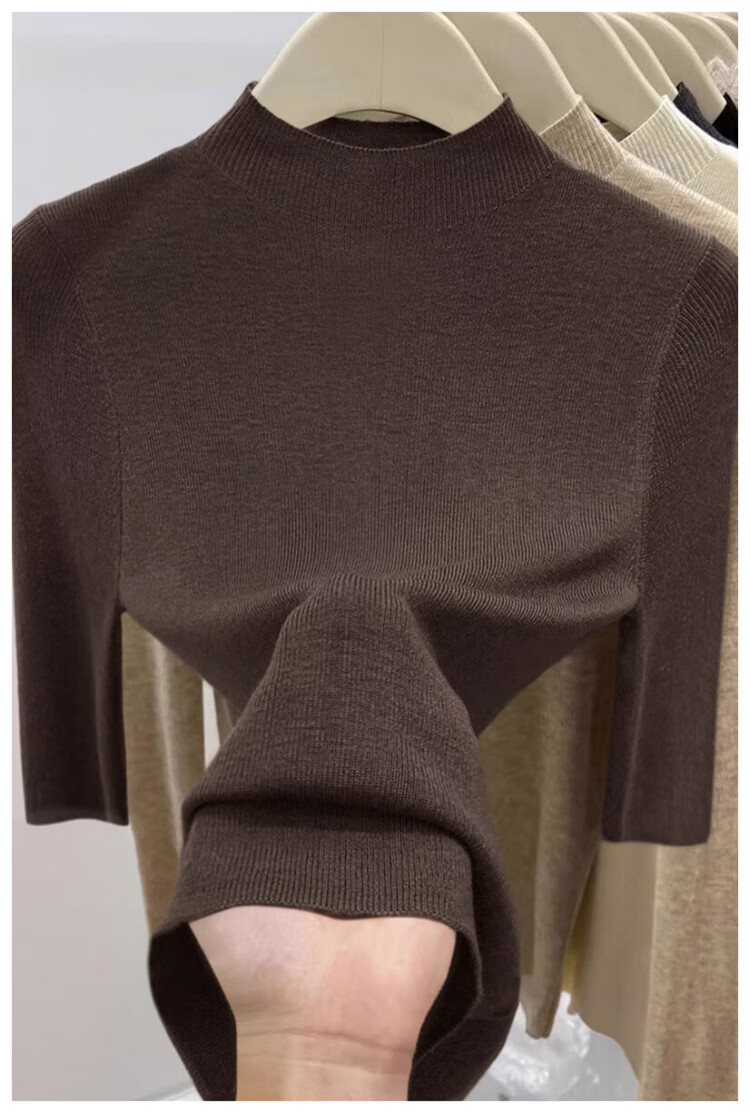 Yu Zhaolin (YUZHAOLIN) high-end half turtleneck knitted bottoming shirt for women half-sleeved and five-quarter-sleeved autumn and winter new temperament versatile top black