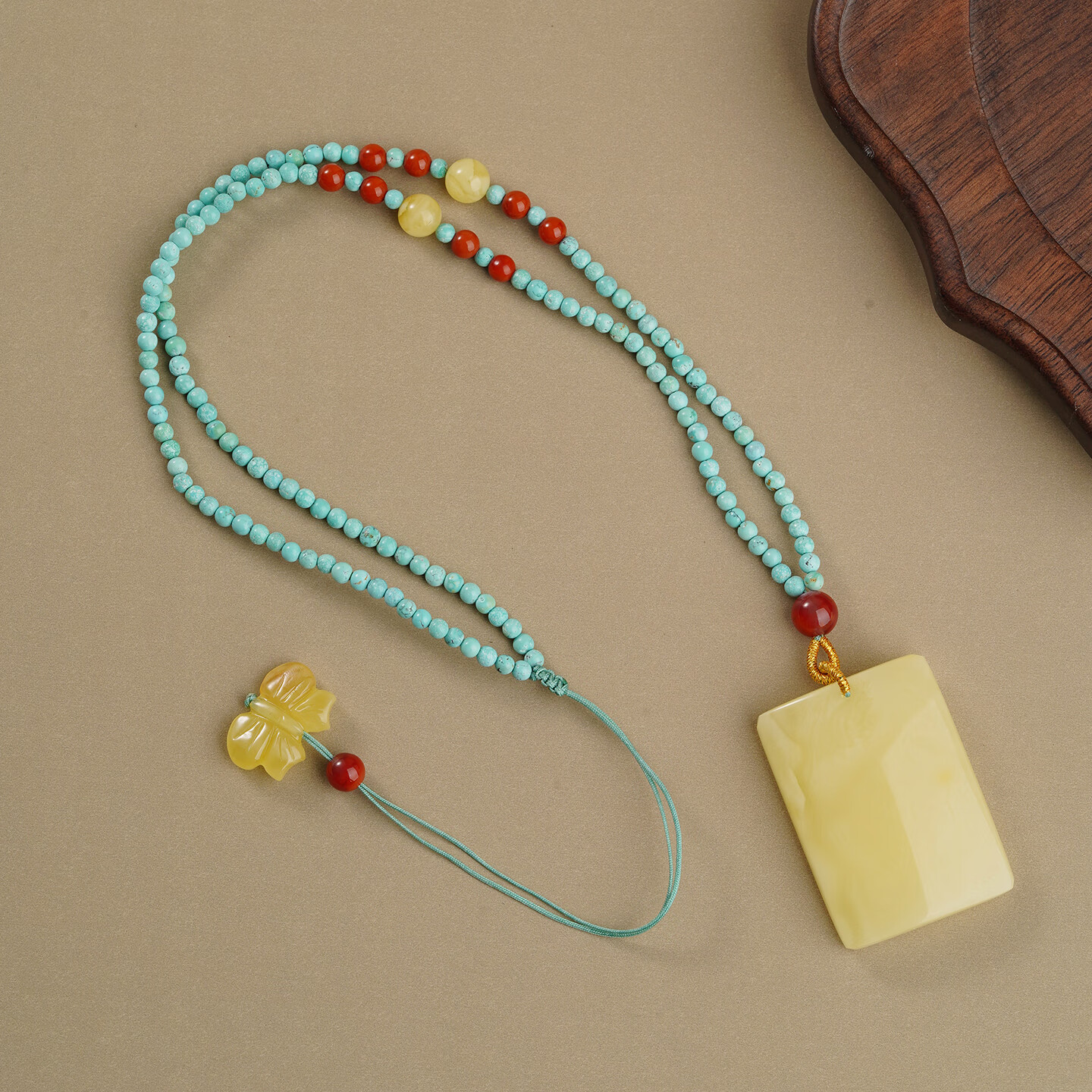 Potala Palace's Orphan Beeswax Green Pine Pendant Pendant Sichuan Material Nanhong Transfer Bead Necklace Men's and Women's Birthday Gift for Girlfriend
