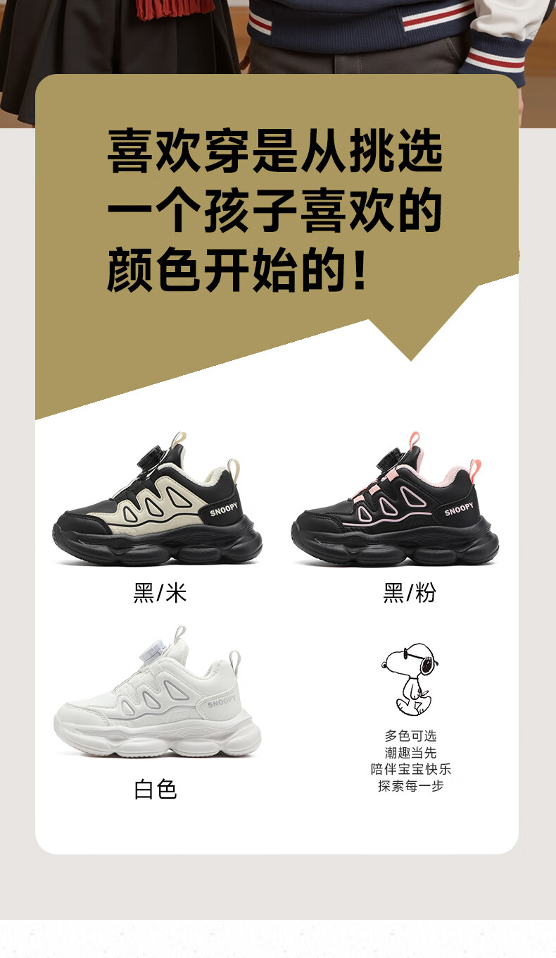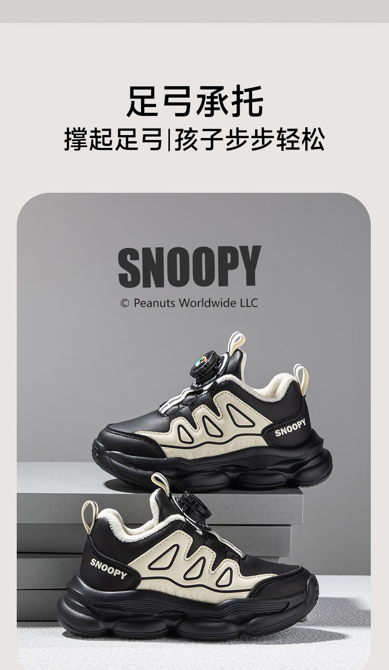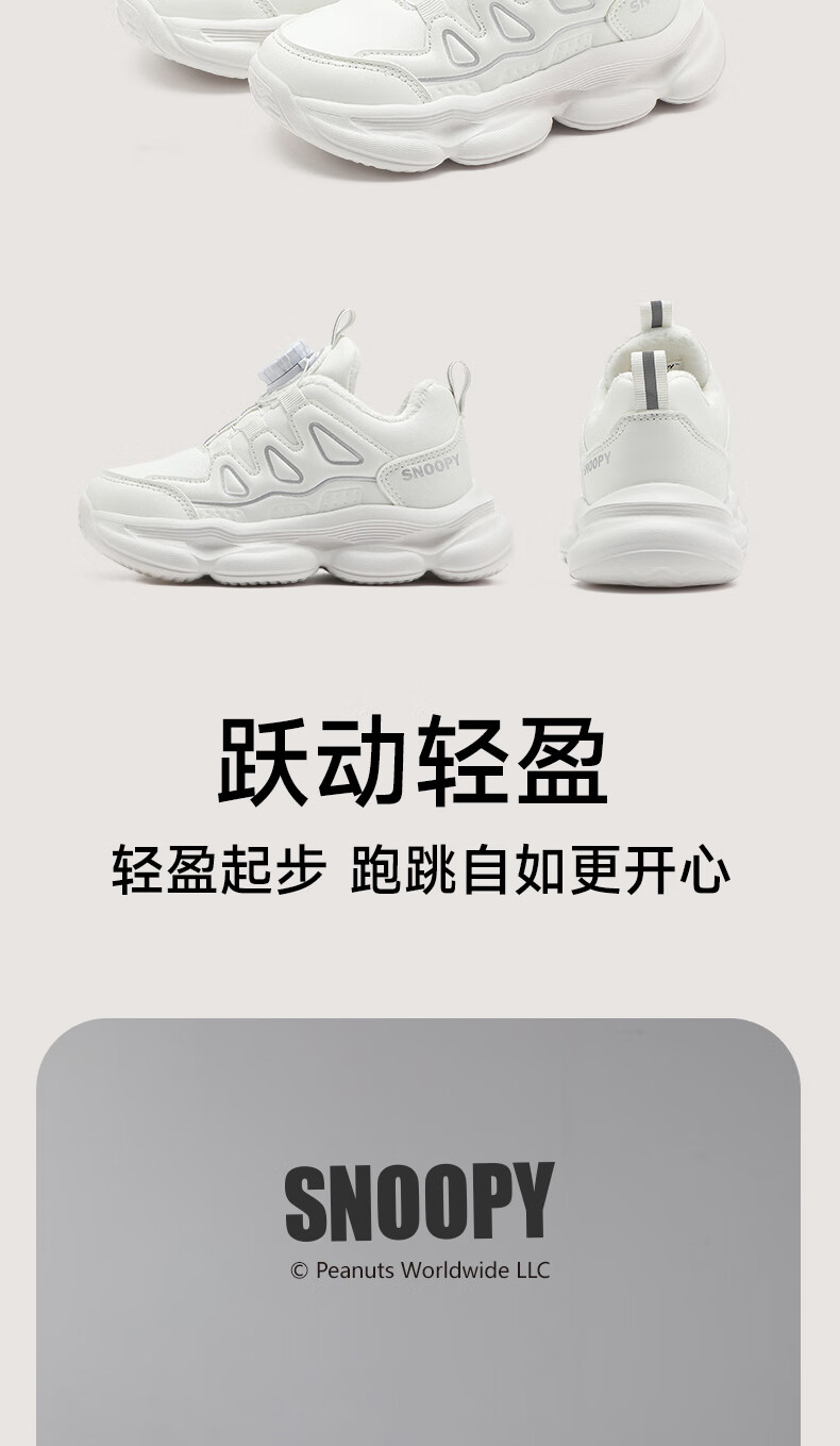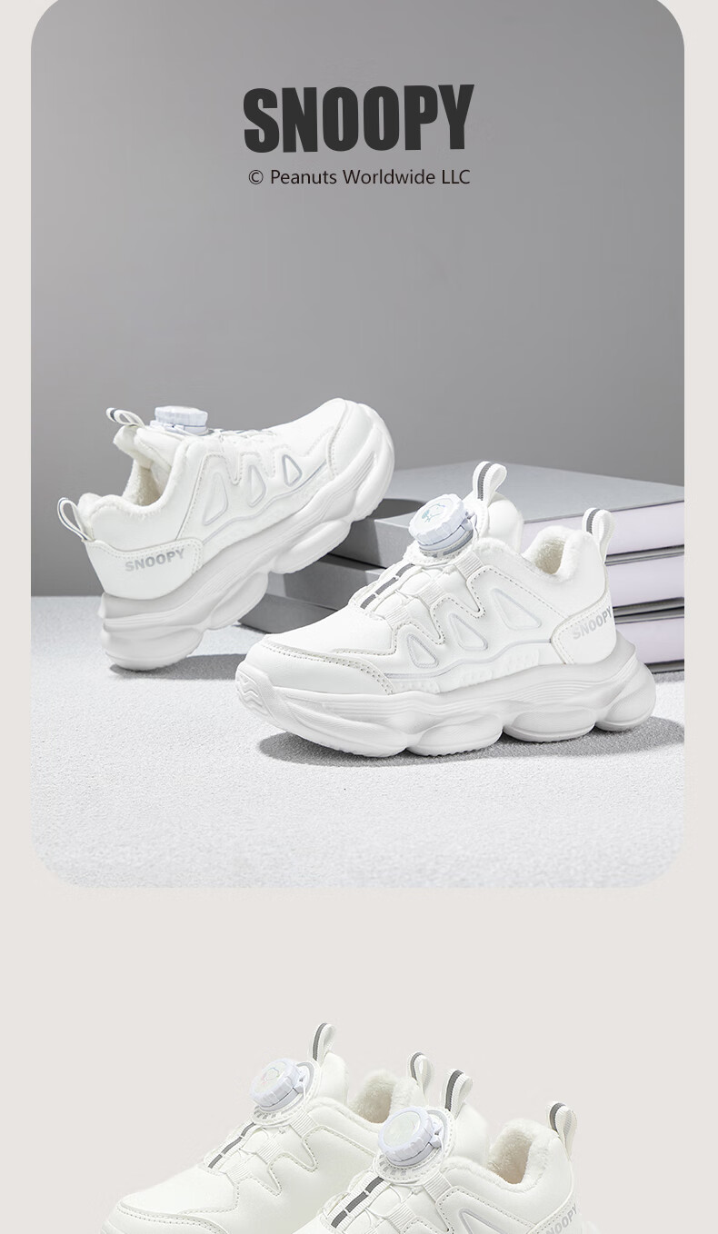 SNOOPY Snoopy children's shoes children's cotton shoes boys and girls winter short velvet warm sports white shoes 3899 white 30