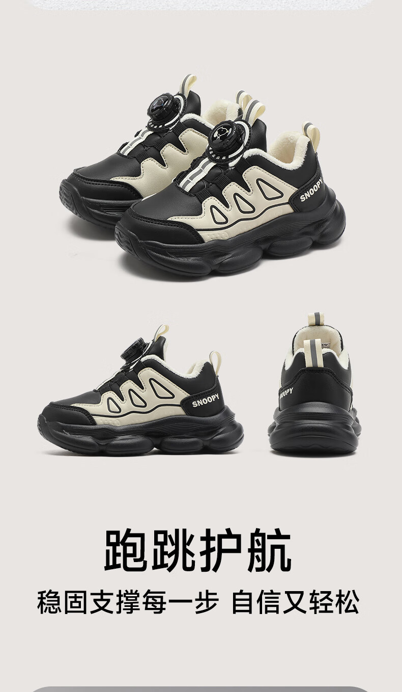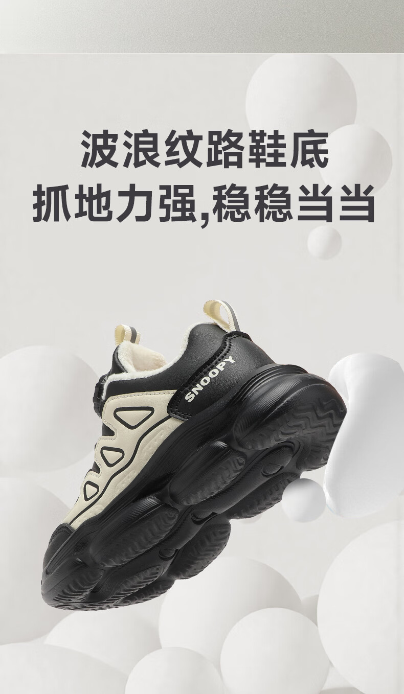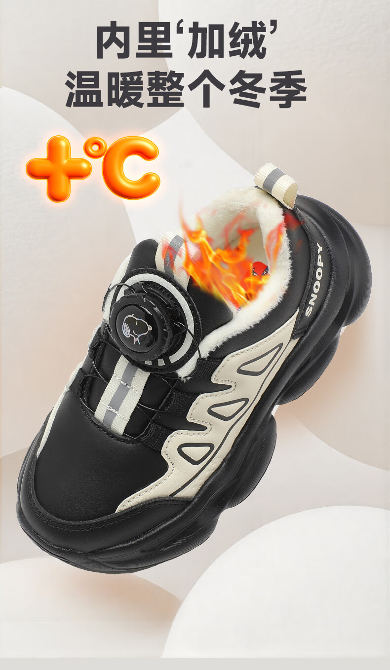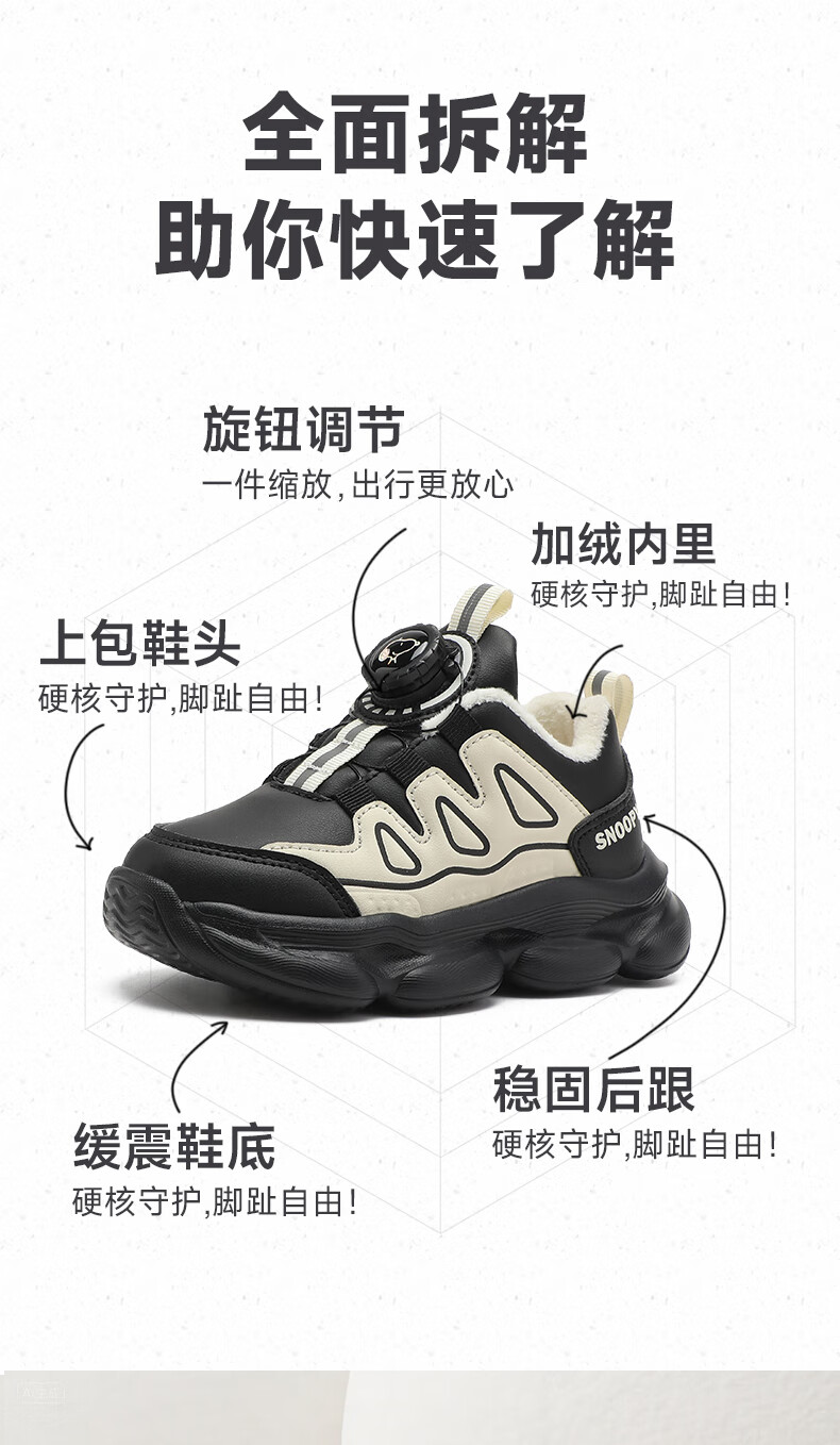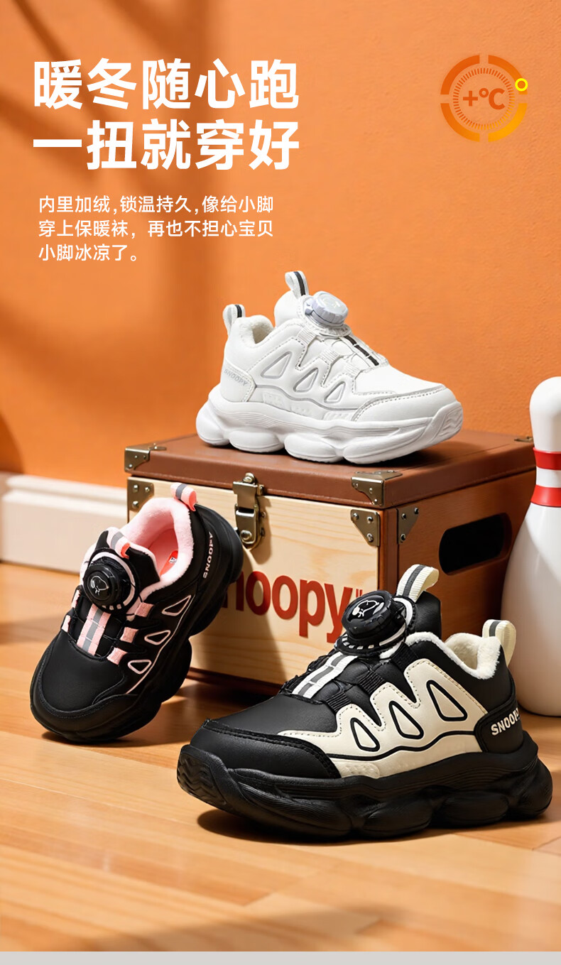 SNOOPY Snoopy children's shoes children's cotton shoes boys and girls winter short velvet warm sports white shoes 3899 white 30