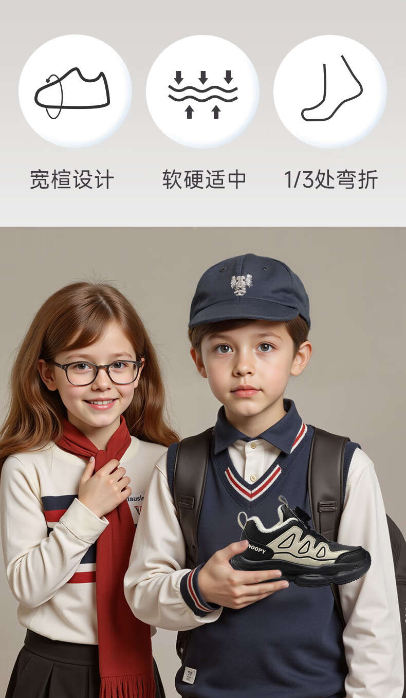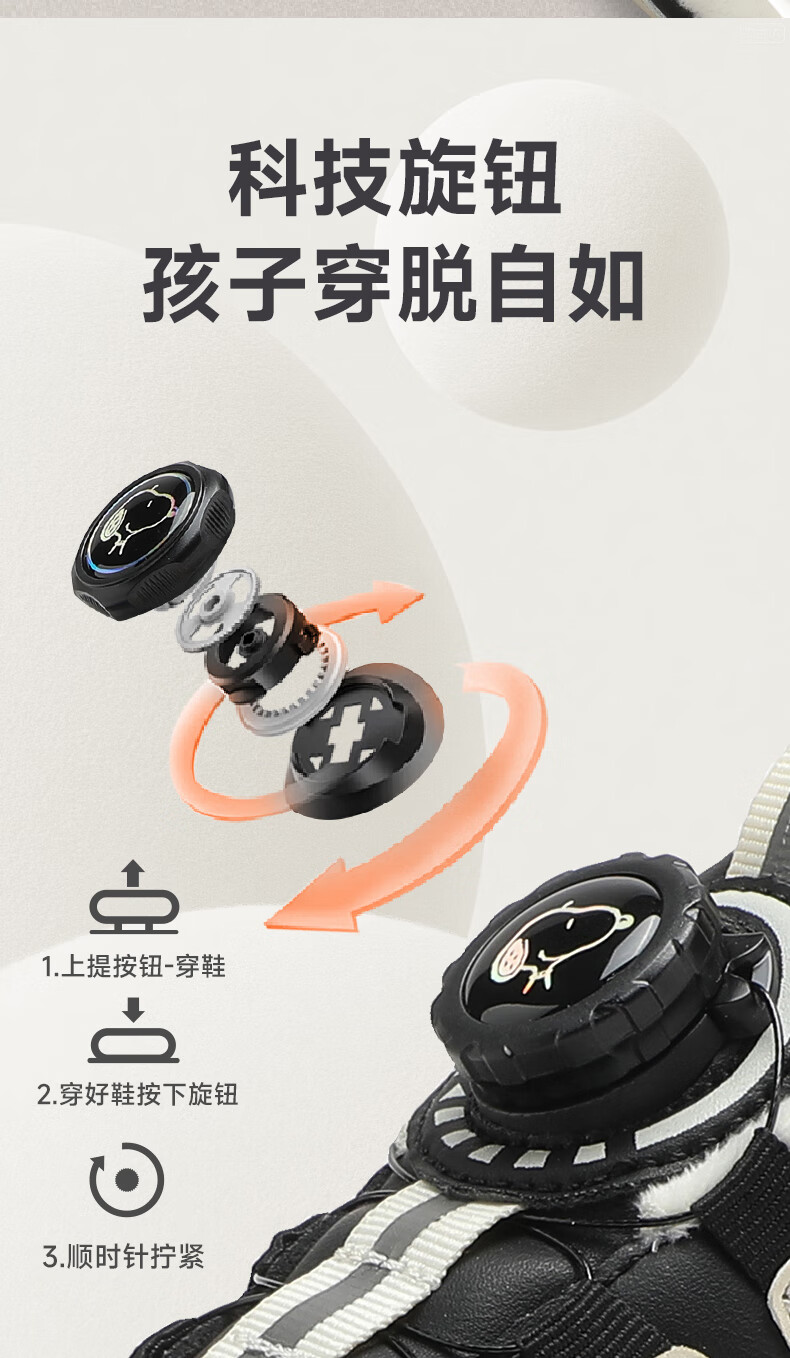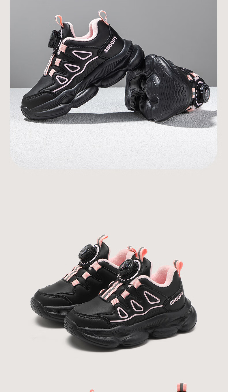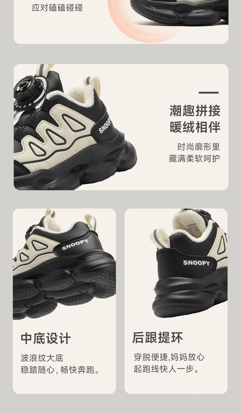 SNOOPY Snoopy children's shoes children's cotton shoes boys and girls winter short velvet warm sports white shoes 3899 white 30