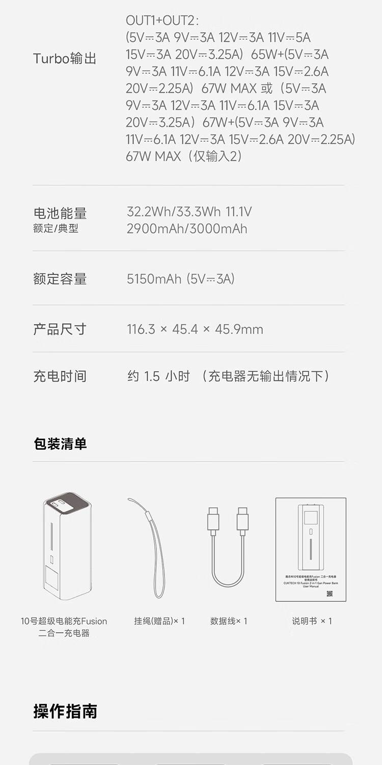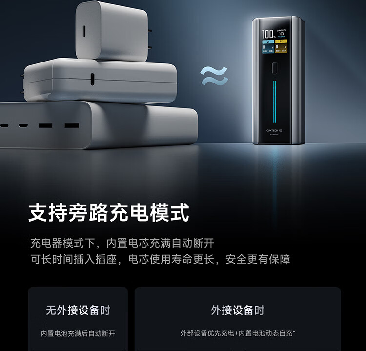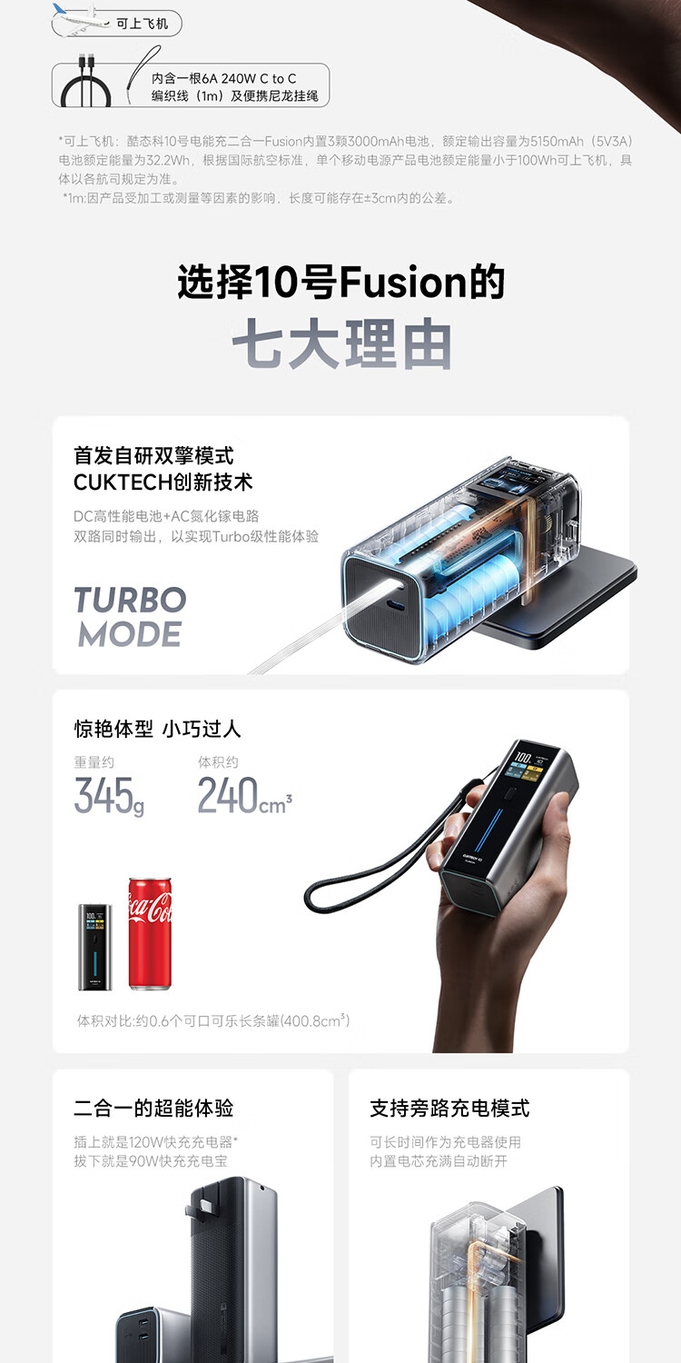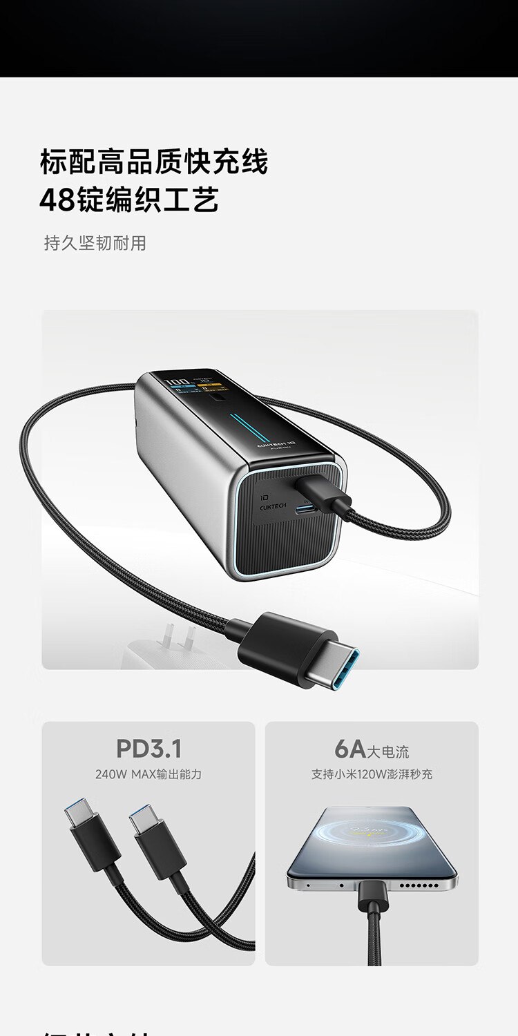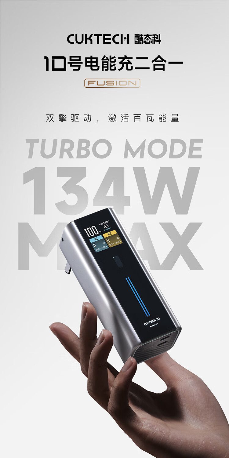 CUKTECH 3C certified for boarding aircraft No. 10 Power Charging 2-in-1 Fusion power bank multi-port 134W comes with plug, small, large capacity, fast charging mobile power supply