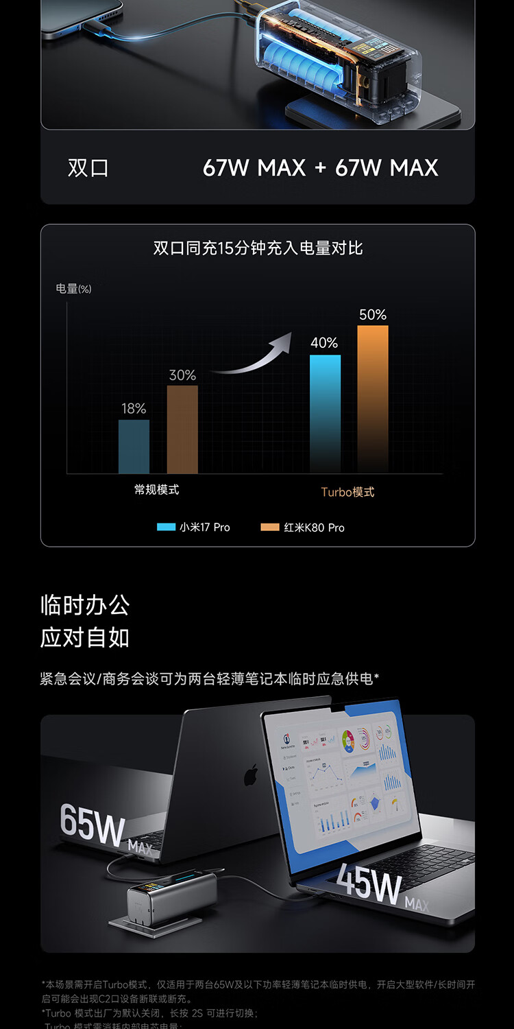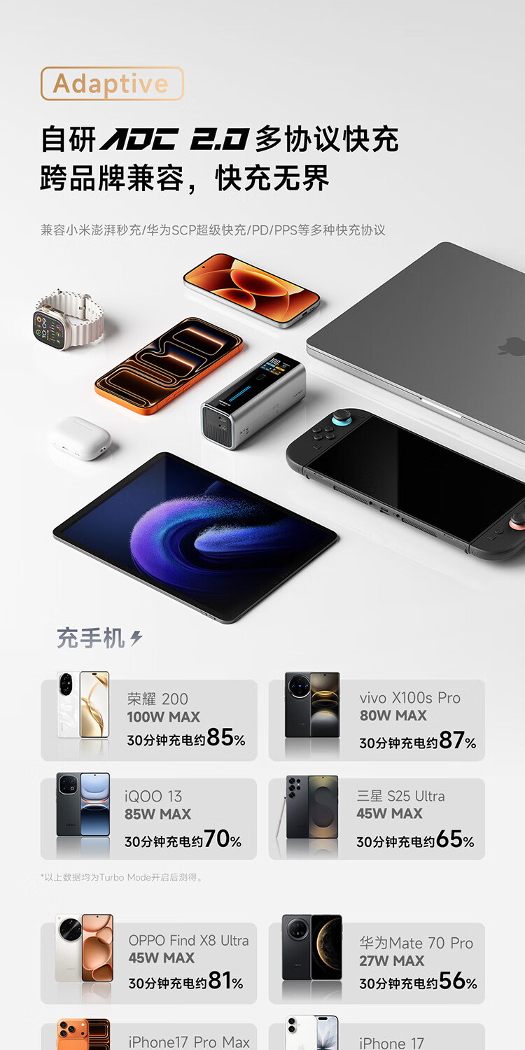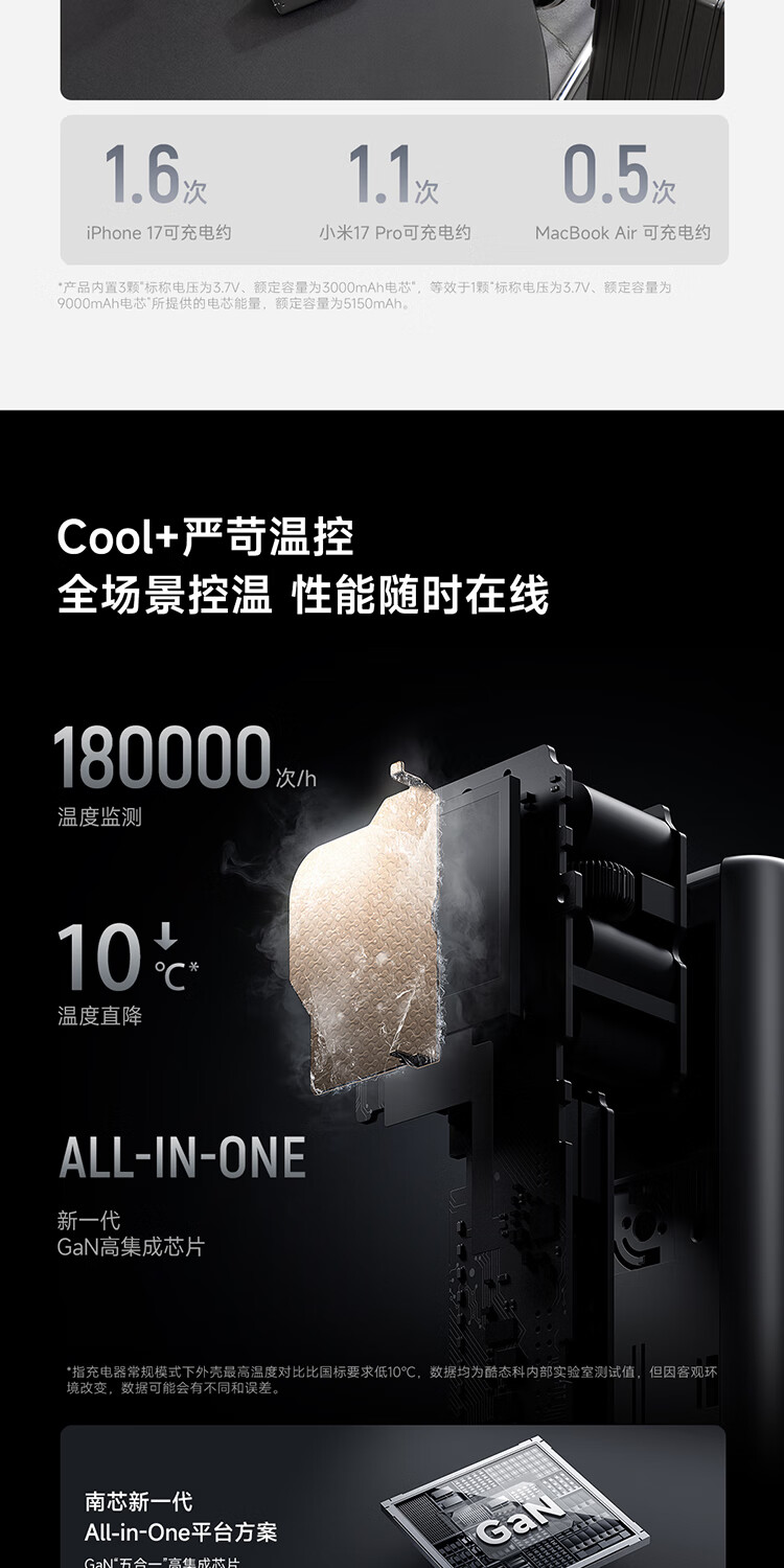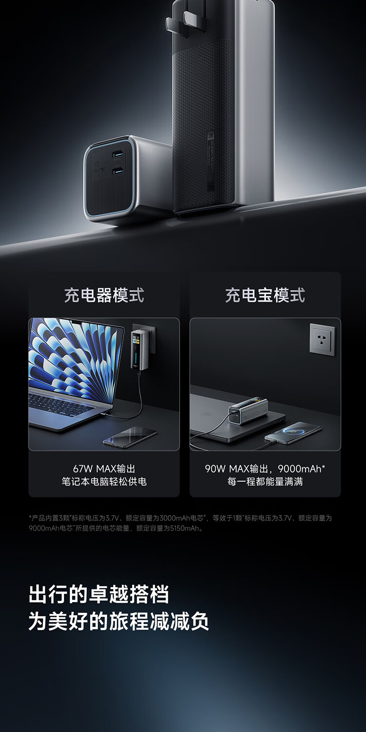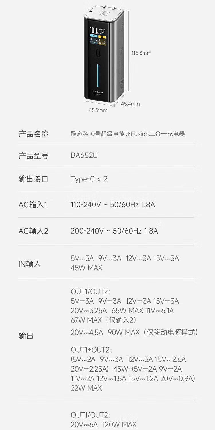 CUKTECH 3C certified for boarding aircraft No. 10 Power Charging 2-in-1 Fusion power bank multi-port 134W comes with plug, small, large capacity, fast charging mobile power supply