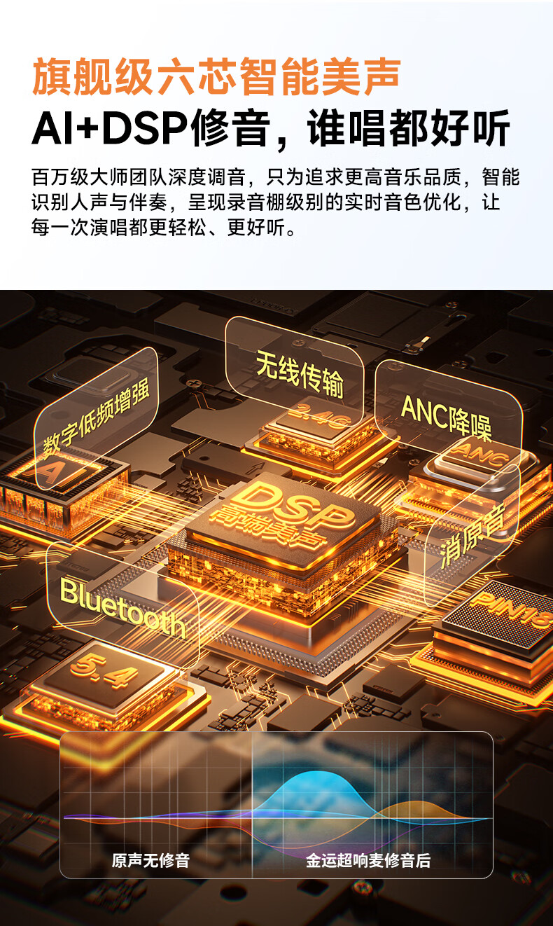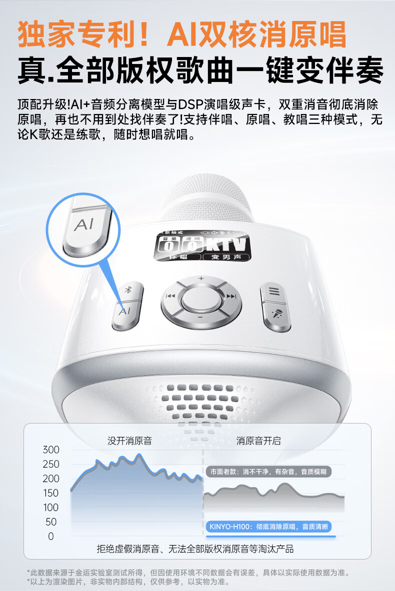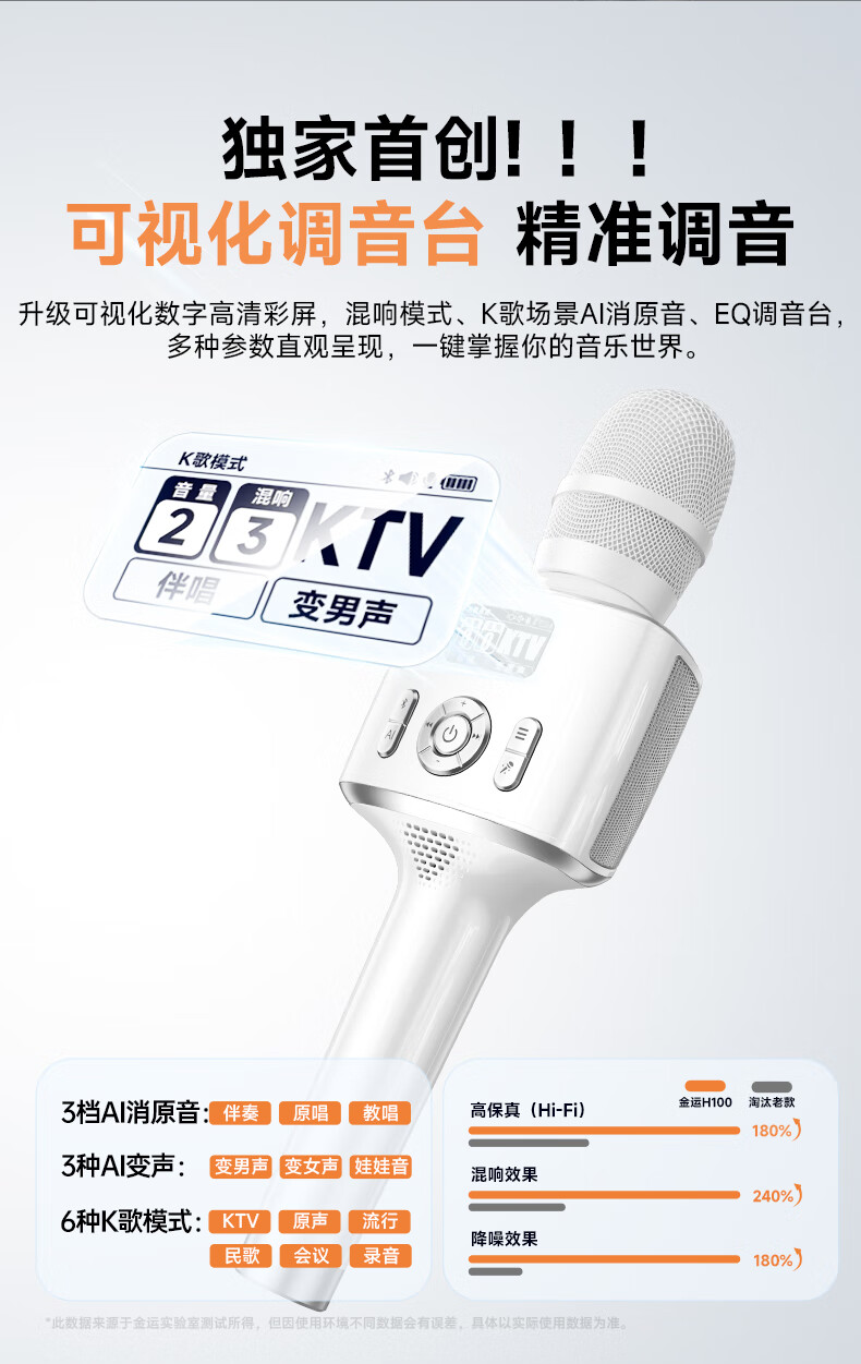 Jinyun AI dual-core original singing microphone and audio all-in-one mobile phone sound card live broadcast equipment karaoke microphone speaker integrated singing artifact karaoke special gift H100