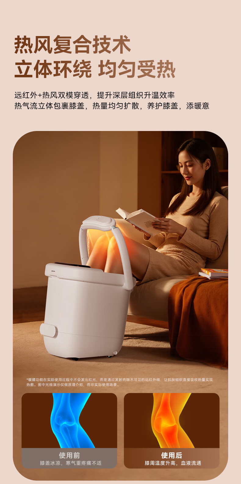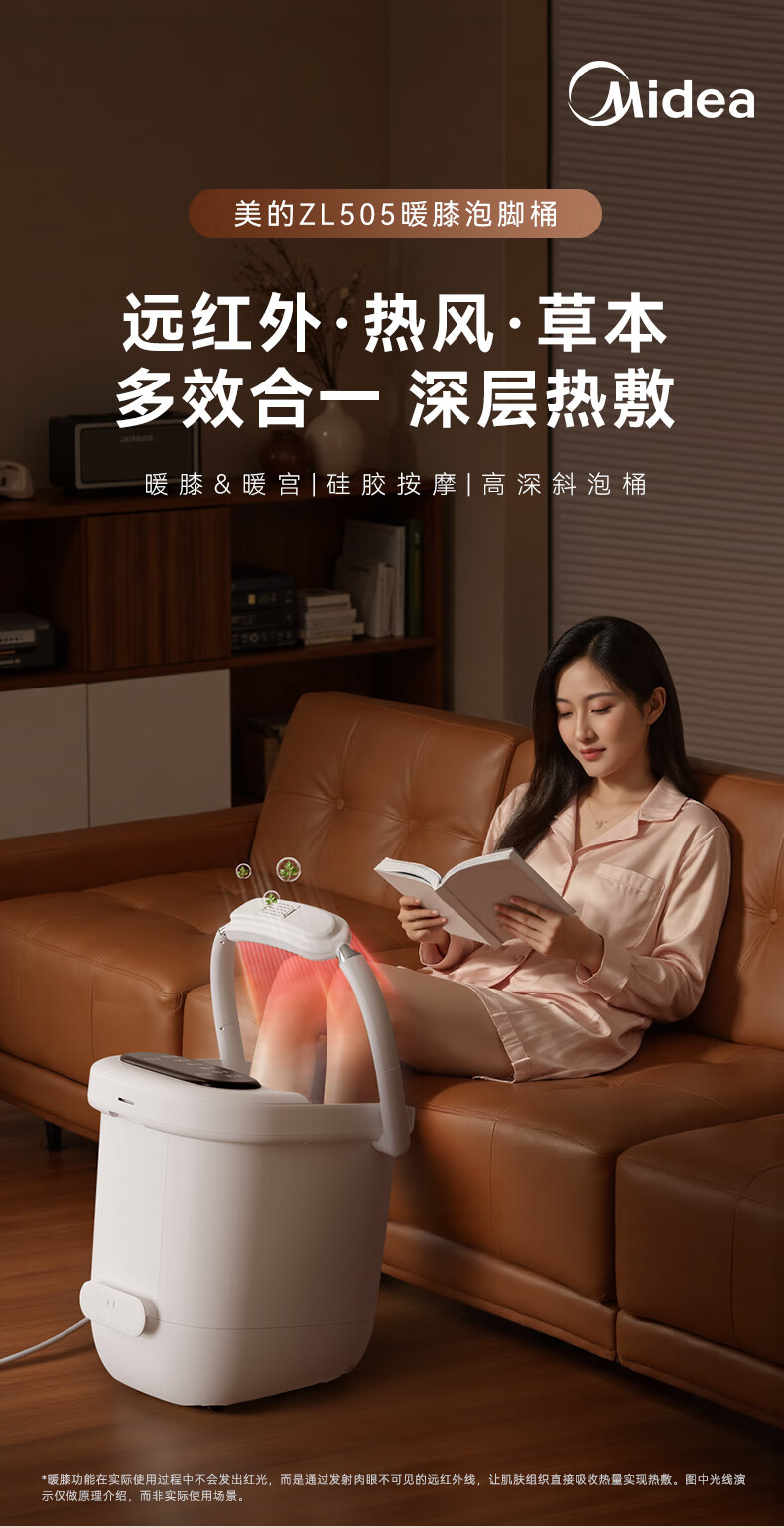 Midea foot bath sterilization foot bath heated far infrared knee warmer automatic massage warm footbath spray birthday gift for boyfriend, girlfriend and elders ZL505