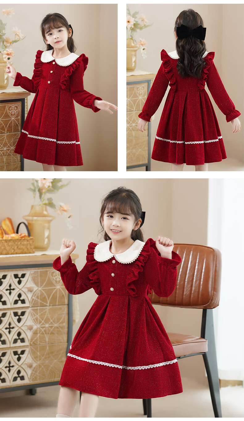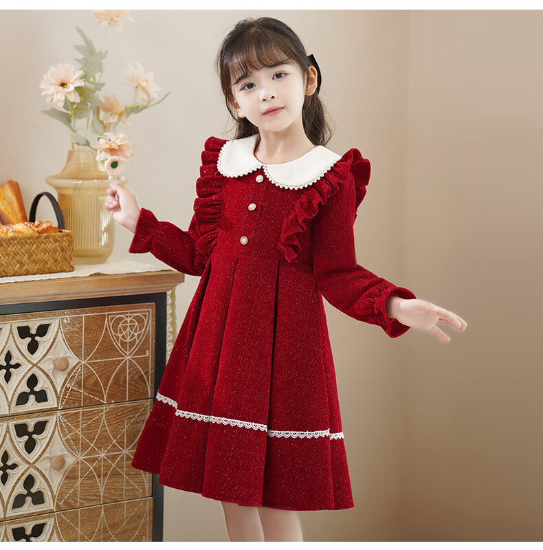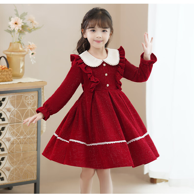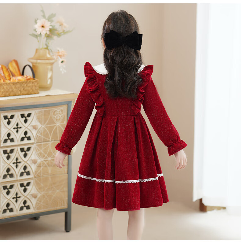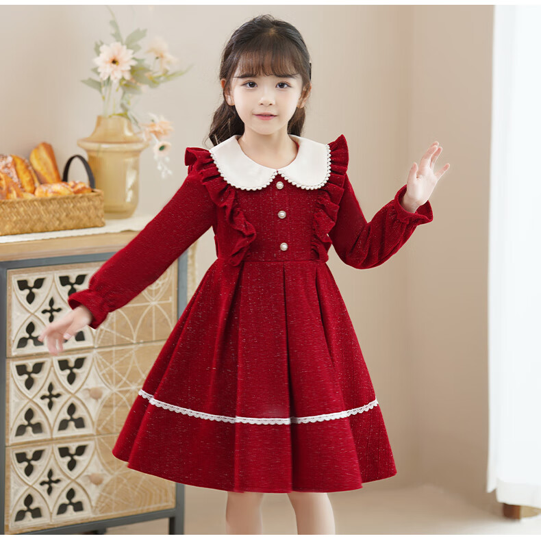 Piggy Banner (PEPCO) girls winter red dress stylish plus velvet children's clothing winter skirt little girl princess dress red 150