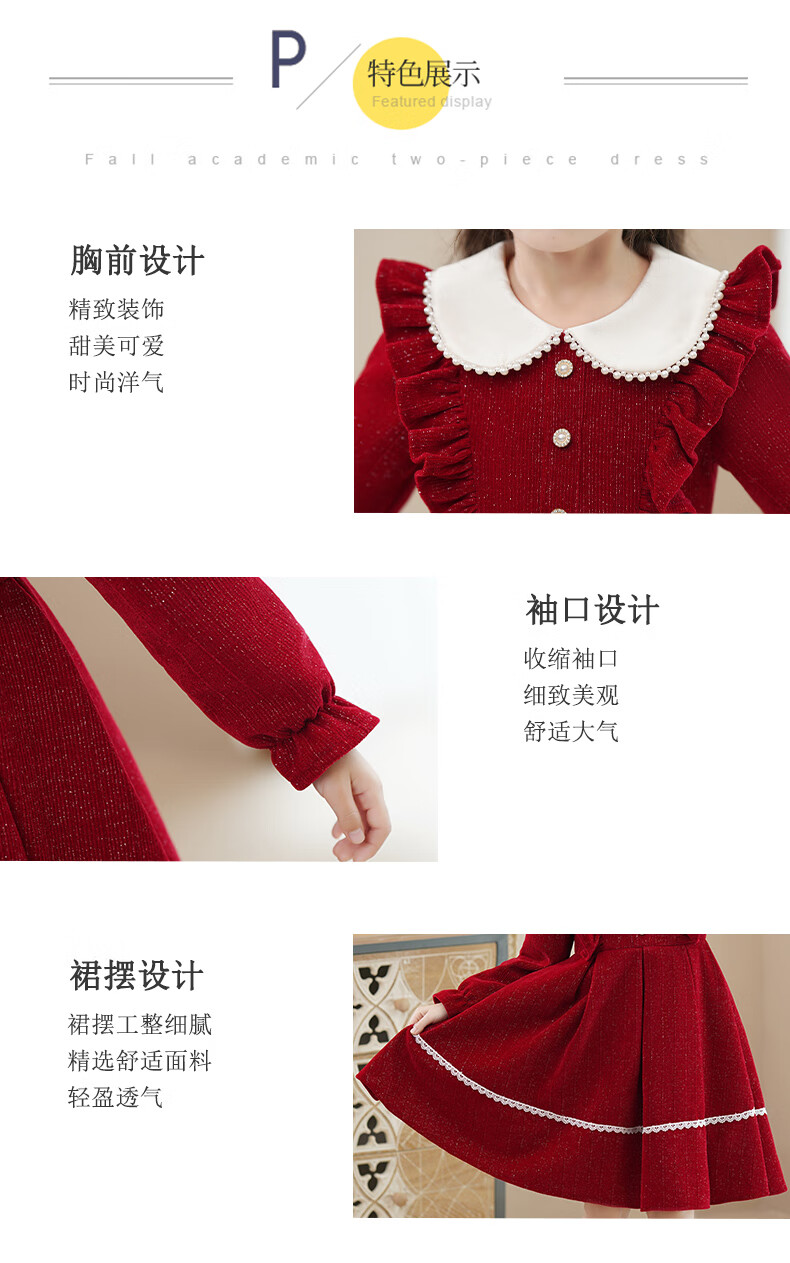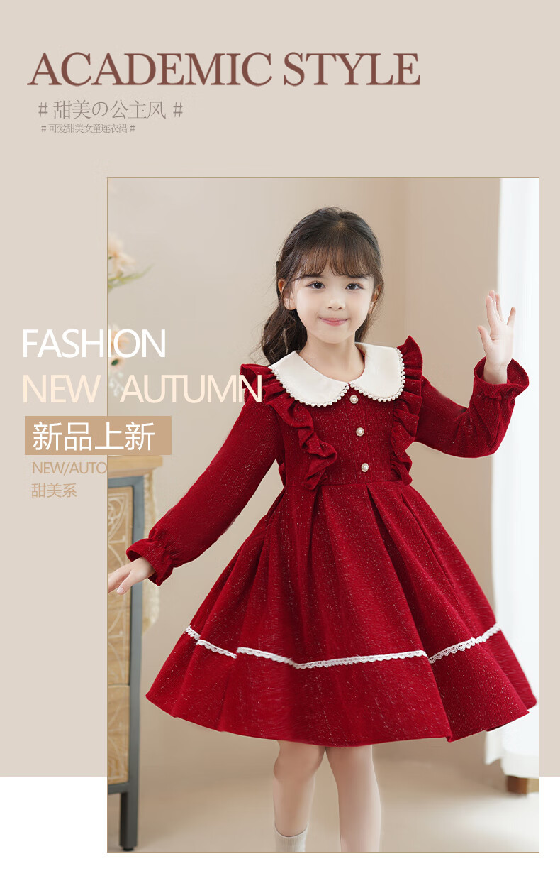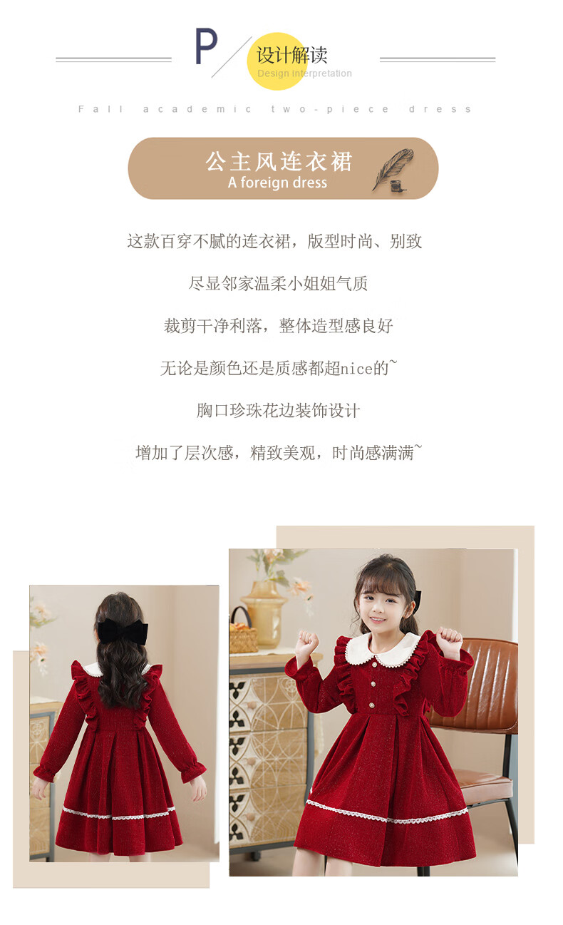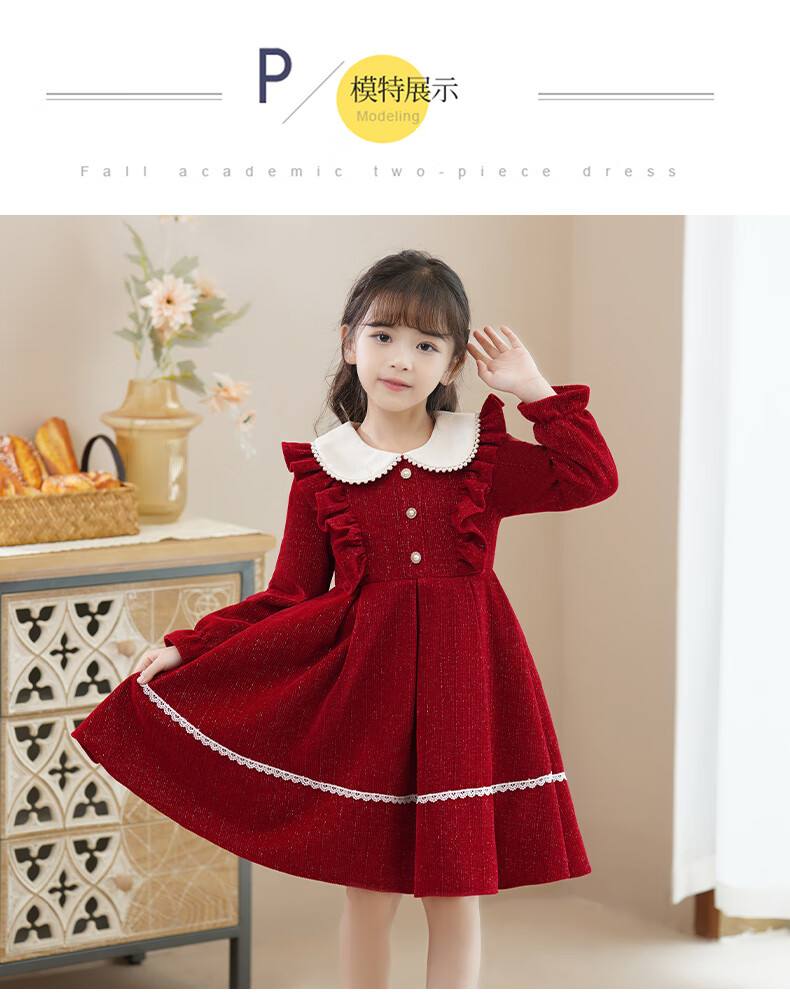Piggy Banner (PEPCO) girls winter red dress stylish plus velvet children's clothing winter skirt little girl princess dress red 150