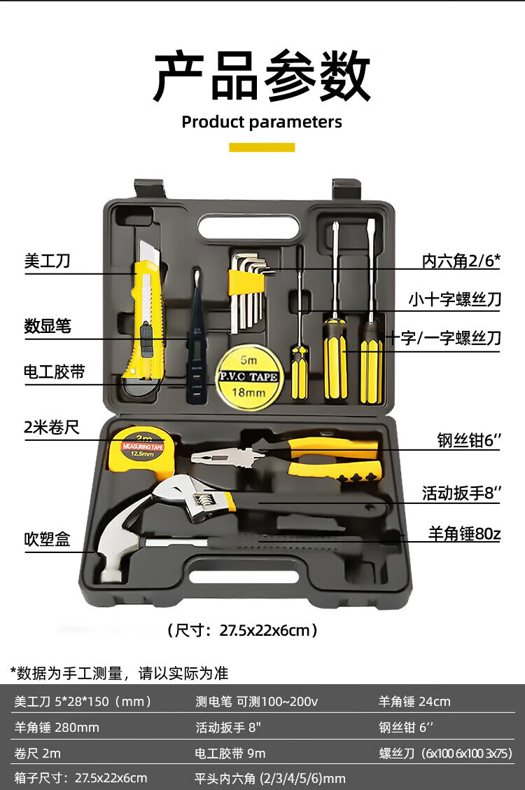 Padilin Toolbox Set Household Wrench Screwdriver Hammer Hardware Tool Repair Multifunctional Woodworking Electrician Set