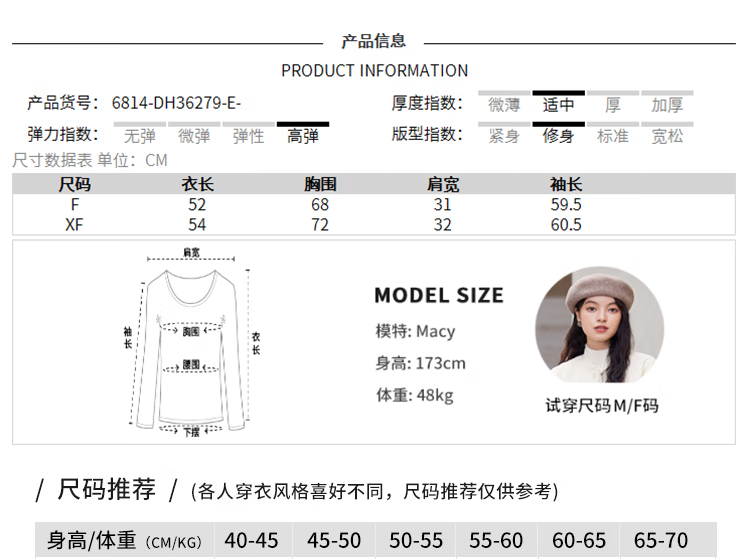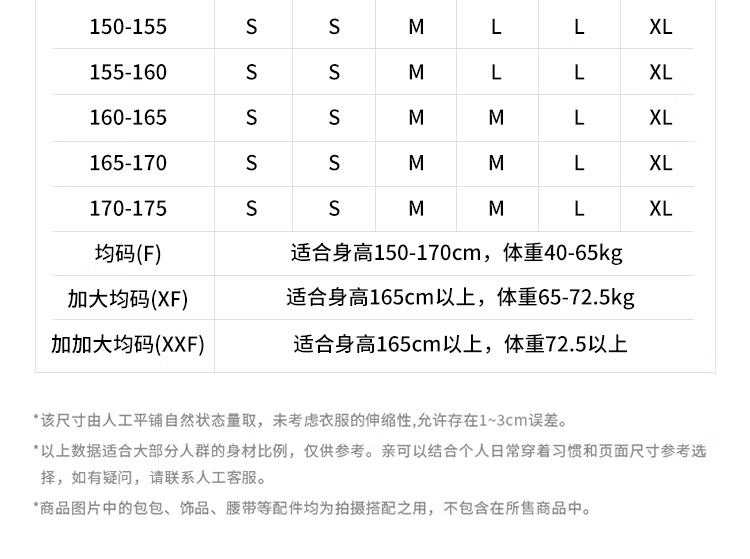 China (cm) 160-165/84-86 165-170 / 88-90 167-172 / 92-96 168-173 / 98-102 170-176 / 106-110