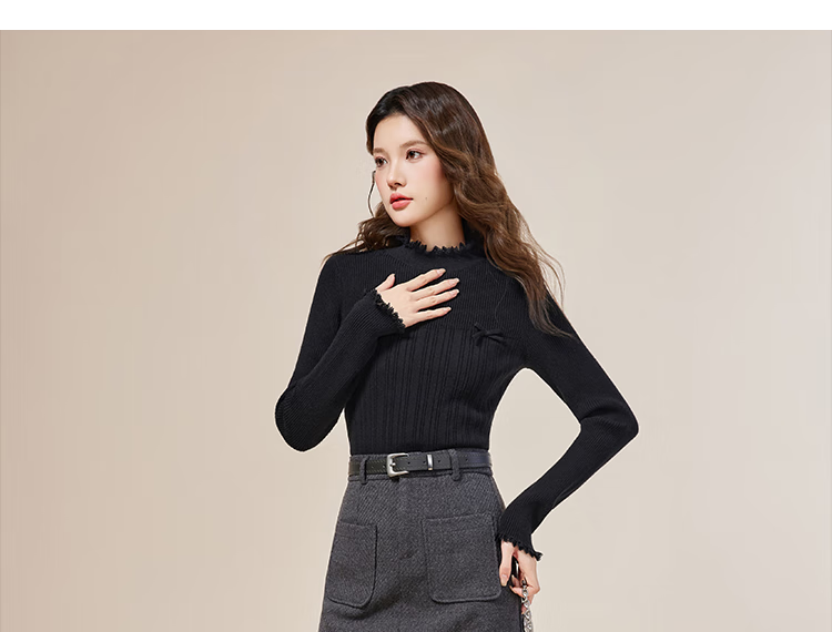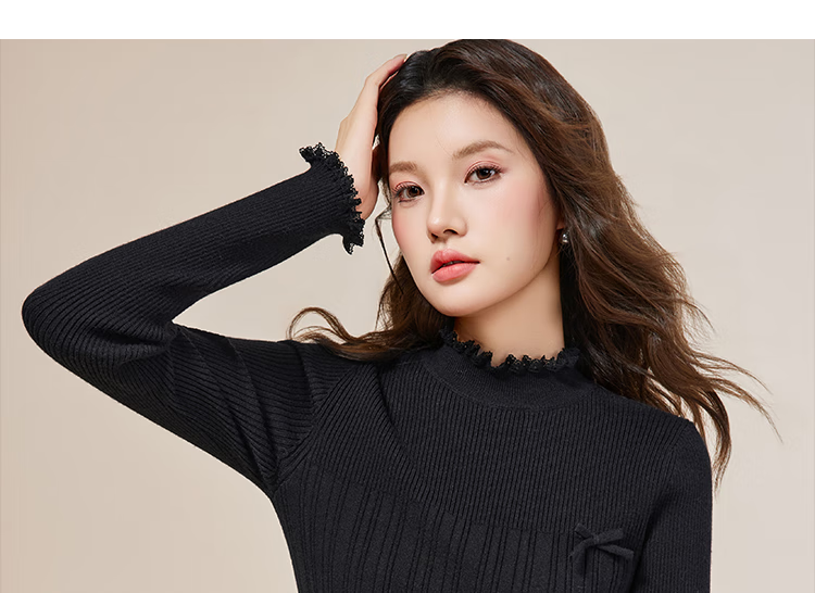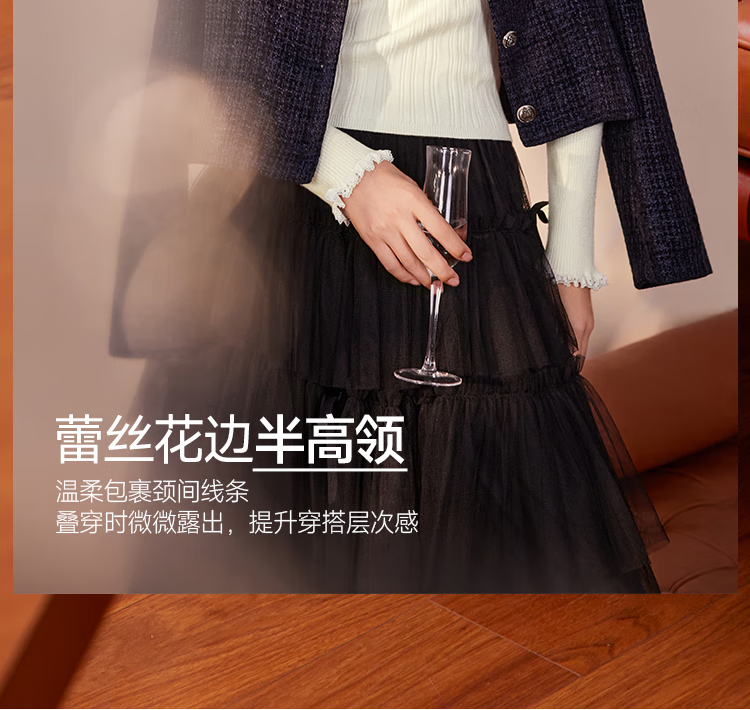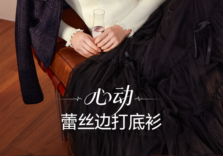 IEF/Aiyifu 2025 winter new French romantic and gentle style lace versatile woolen base layer