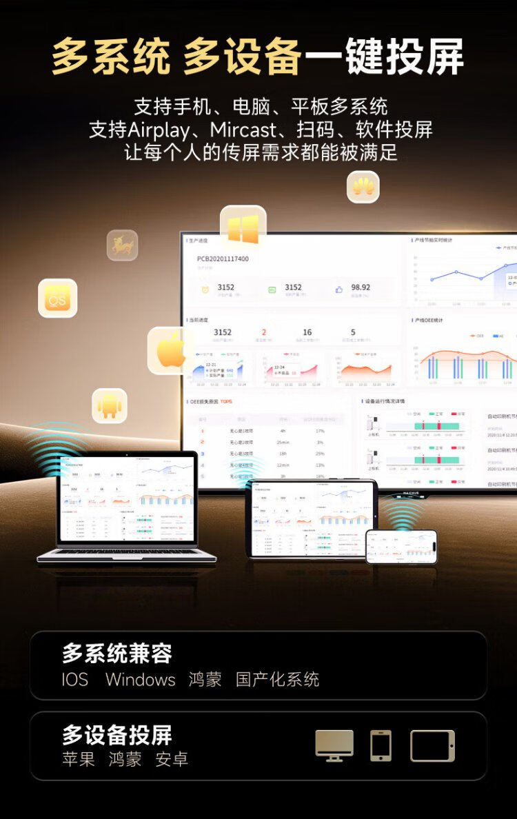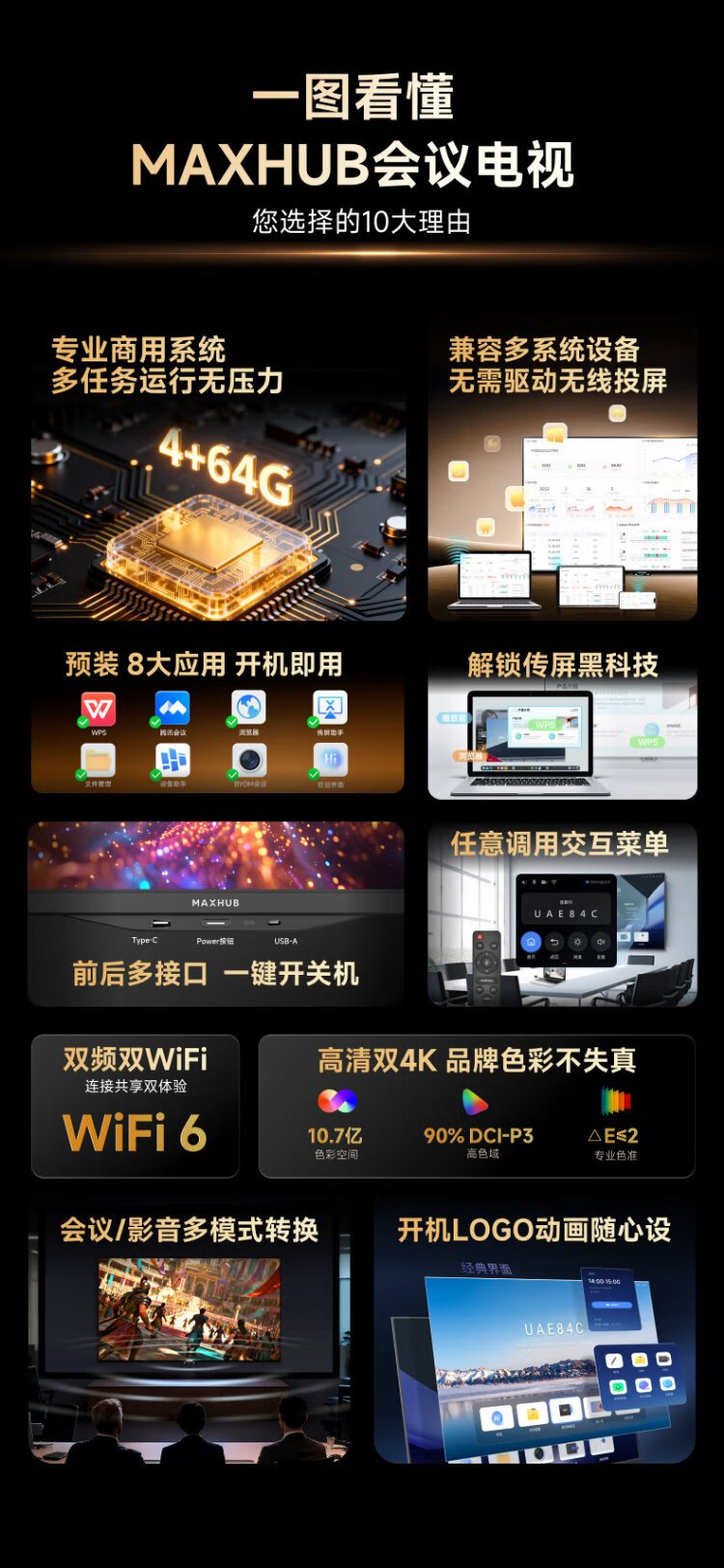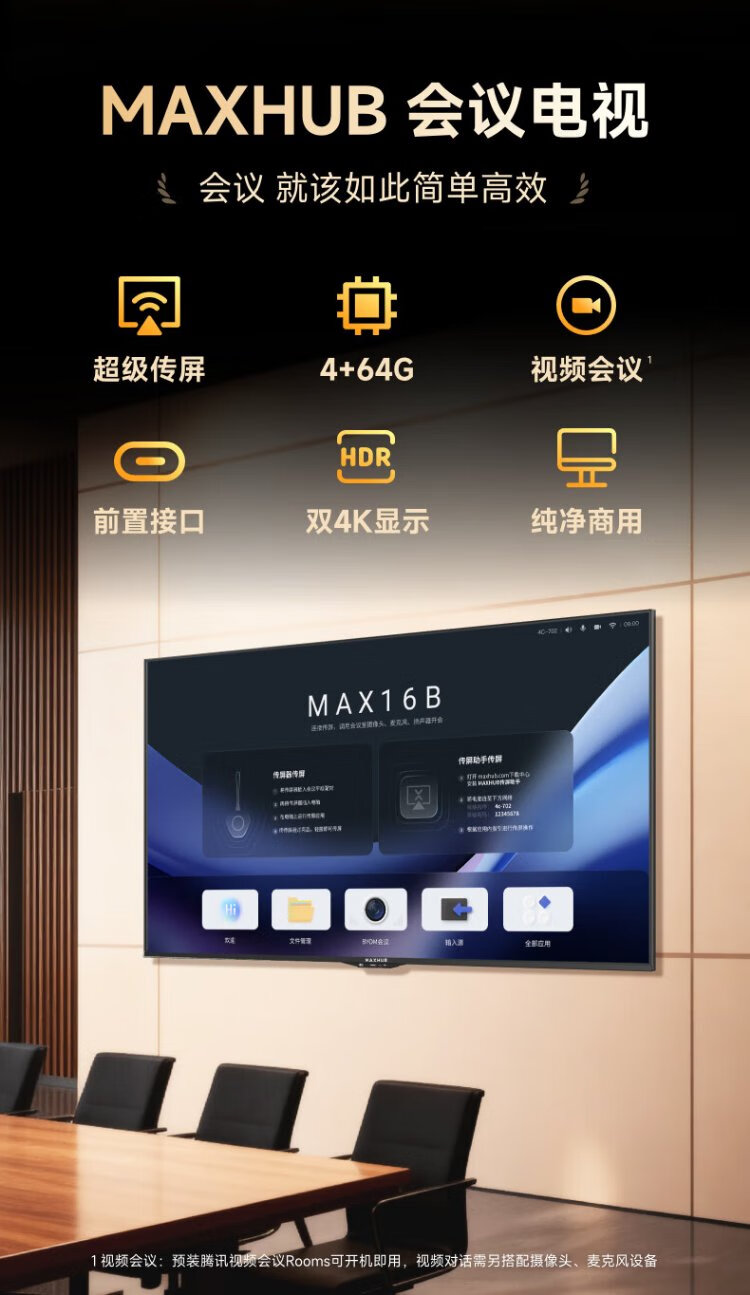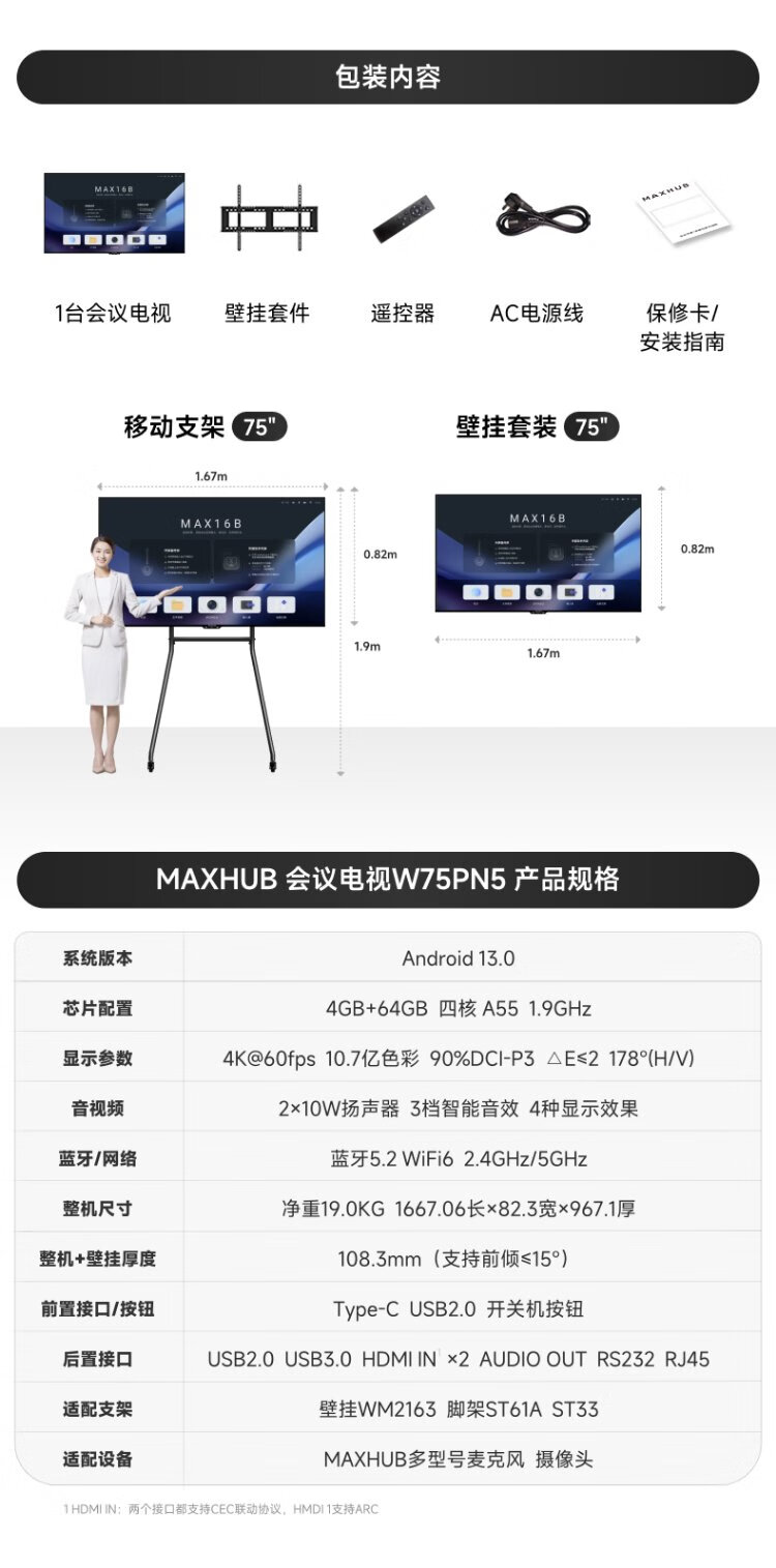 MaxhubTableta de TV para conferencias de 75 pulgadas máquina todo en uno Proyección inalámbrica ultra clara 4K Pantalla ultradelgada 4 + 64G Capacitación en oficina Enseñanza comercial Videoconferencia en pantalla grande W75PN5
