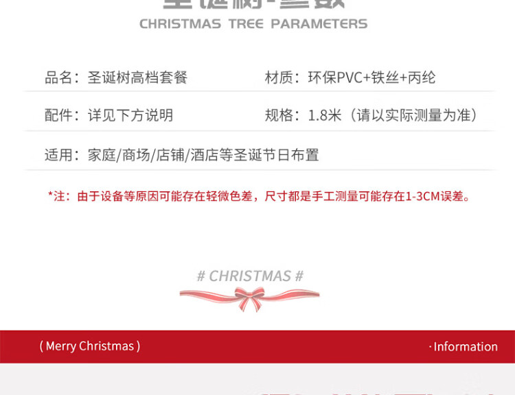 Extreme space Christmas tree luxury encrypted package Christmas decorations home shopping mall atmosphere layout 1.8 meters including colored lights